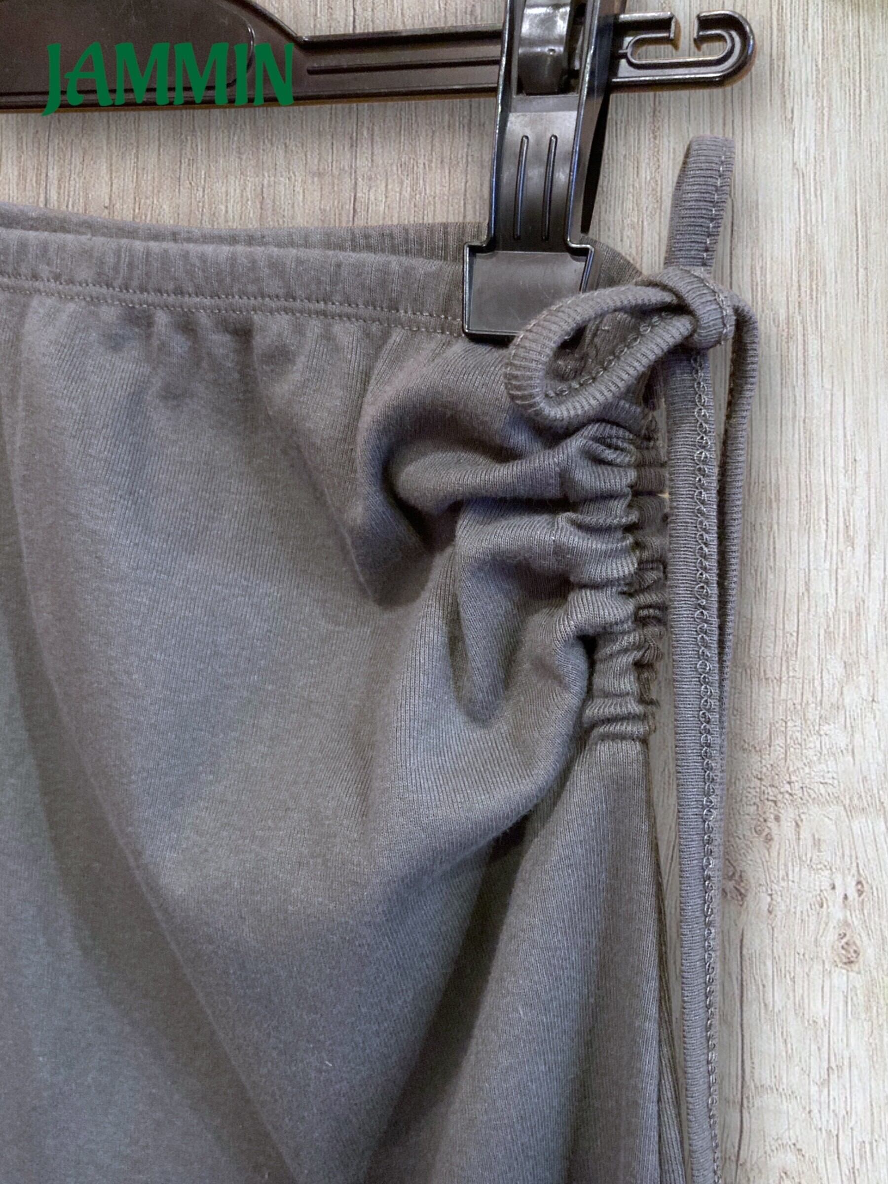 ウエストの両脇部に紐が入っていて引っ張って結ぶとシルエット変化を出せます。