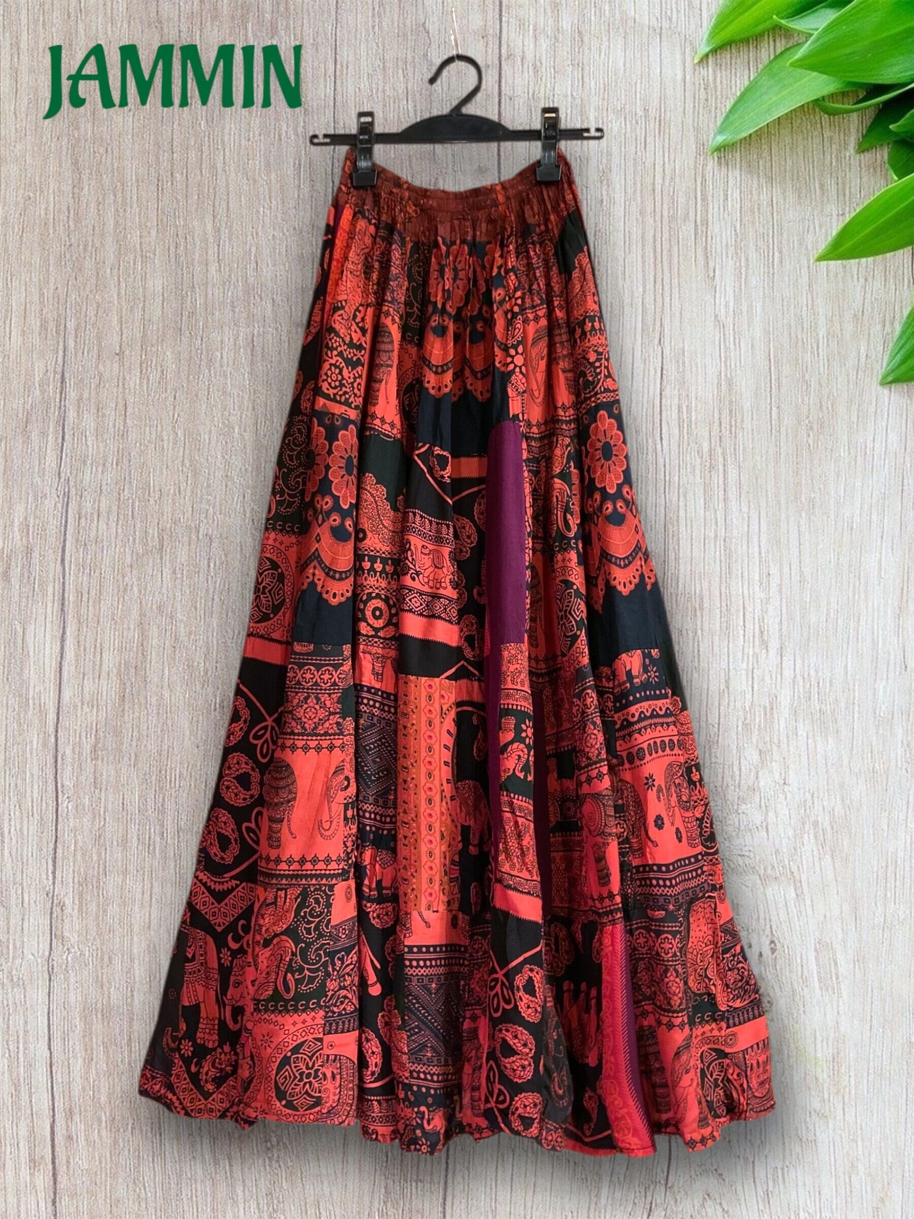 ロングスカート/フレアスカート/アジアンスカート/スカート/マキシ丈スカート/アジアン/エスニック/ヒッピー/サイケ/衣装/ゆったり/柄スカート/リゾート/フリーサイズ/大きいサイズ/パッチワークスカート