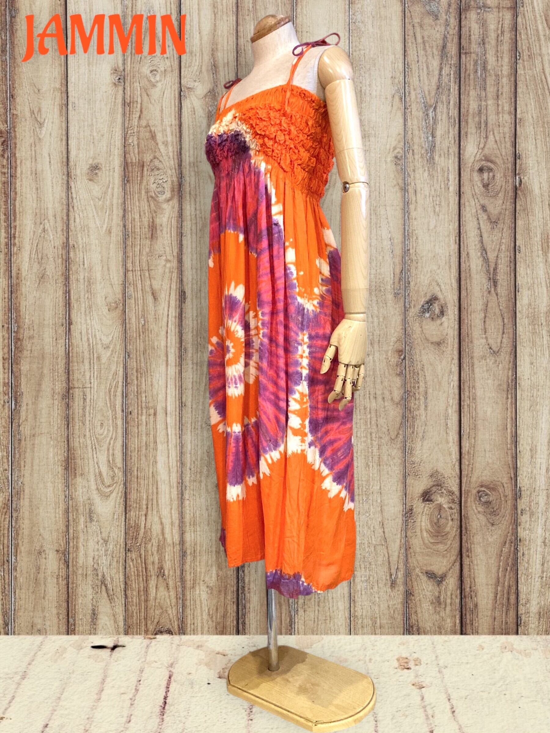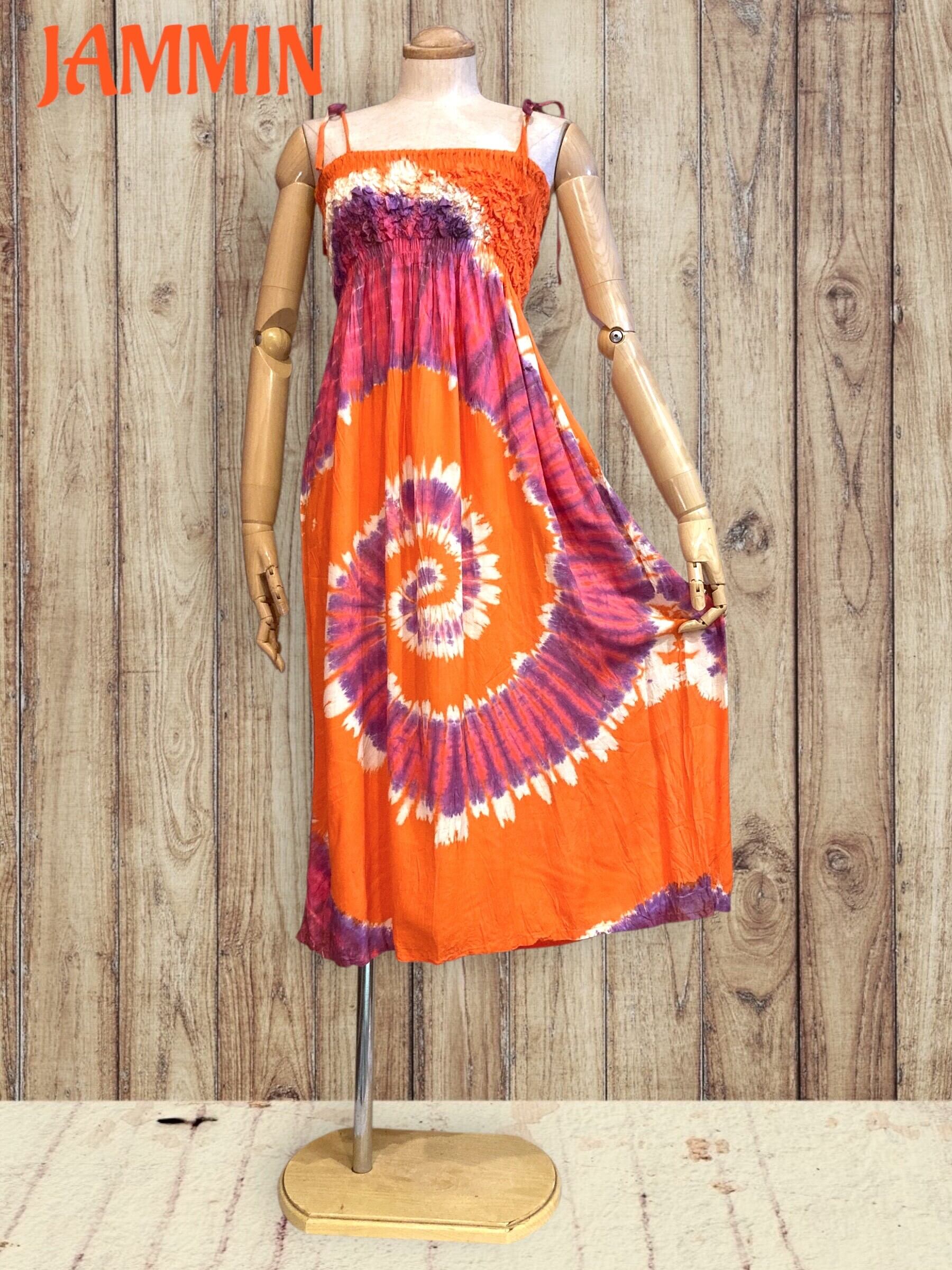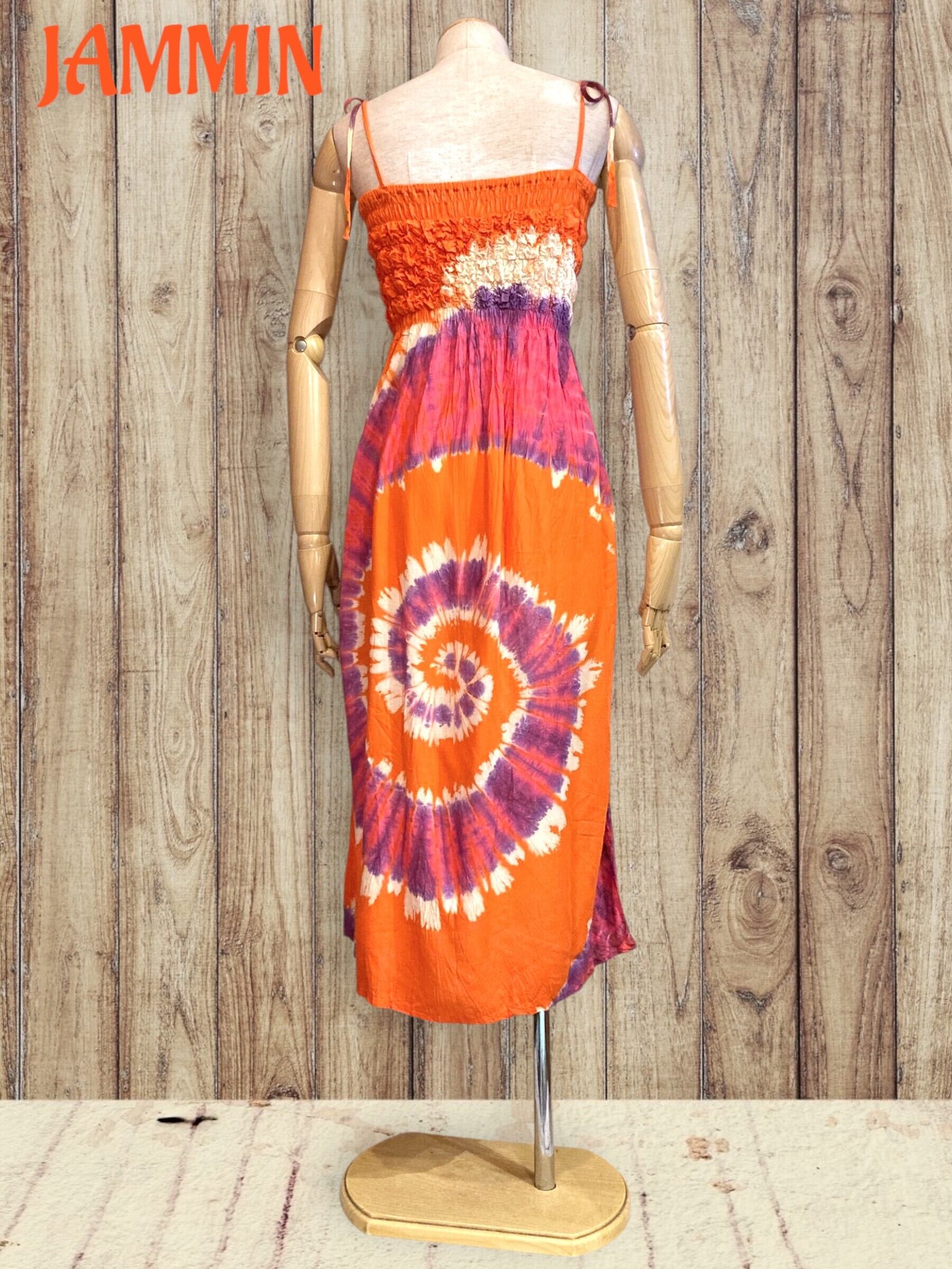 オレンジ色ベースのぐるぐるタイダイワンピースです。