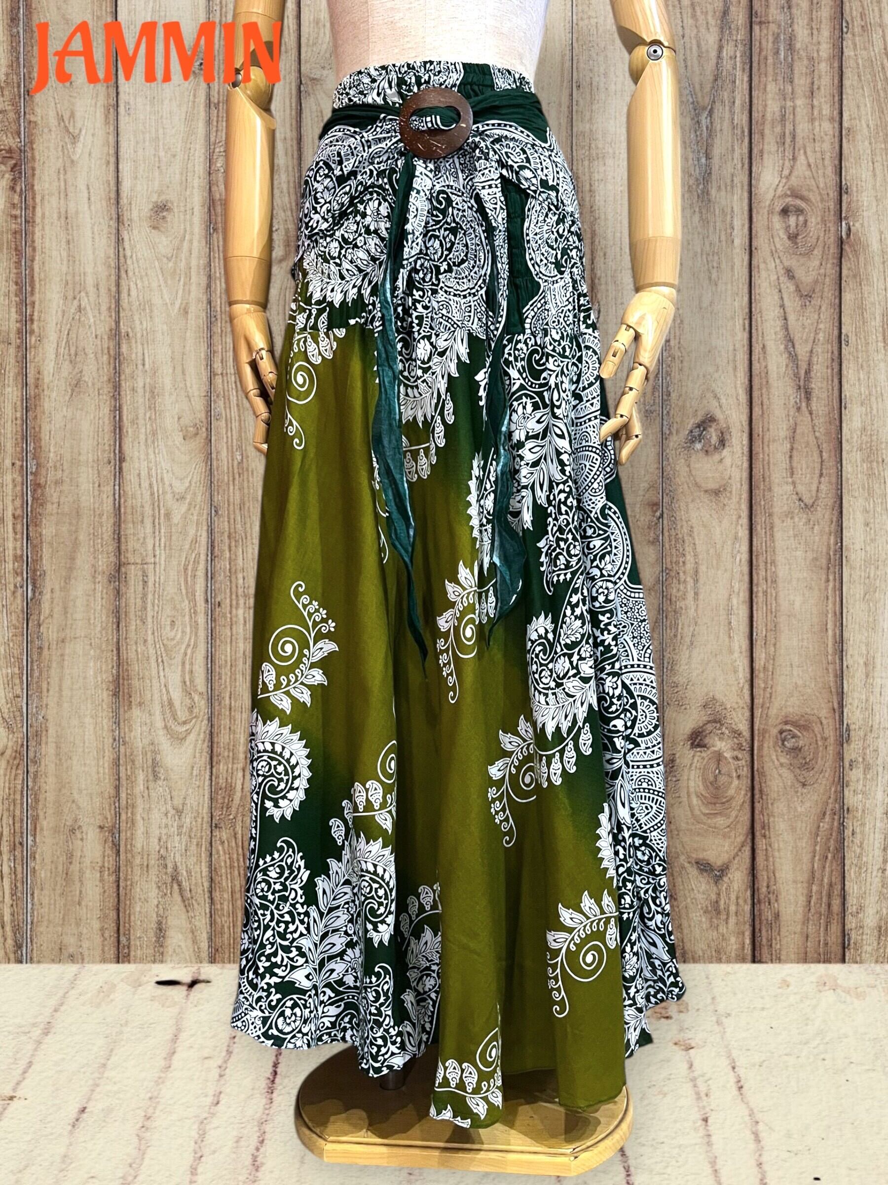 アジアンな植物ペーズリー柄の2wayフレアスカートです。