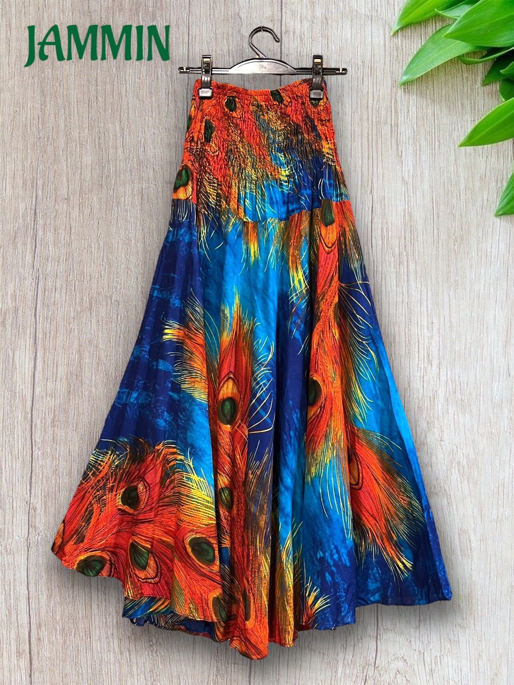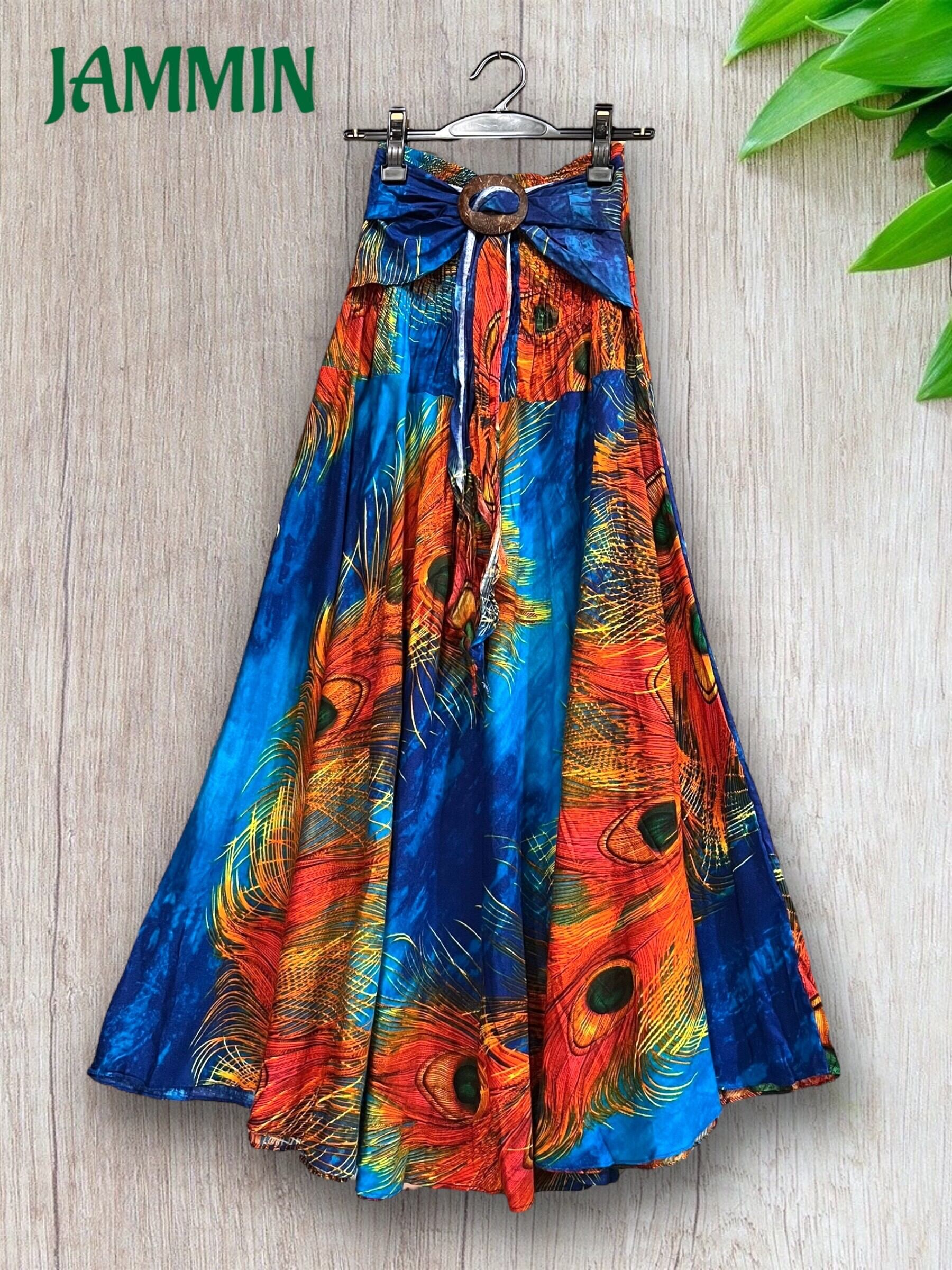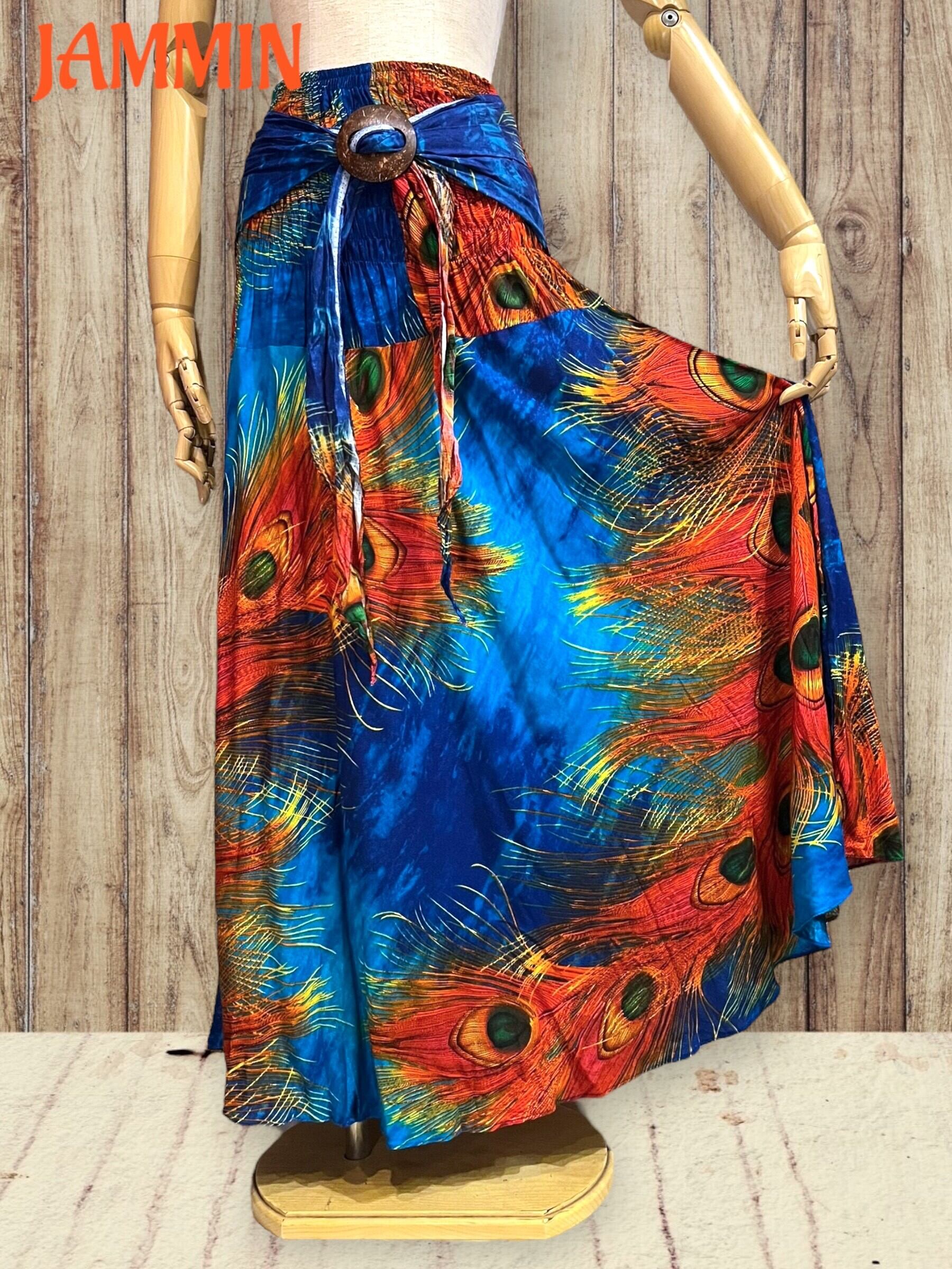 綺麗な孔雀羽根柄の2wayフレアスカートです。