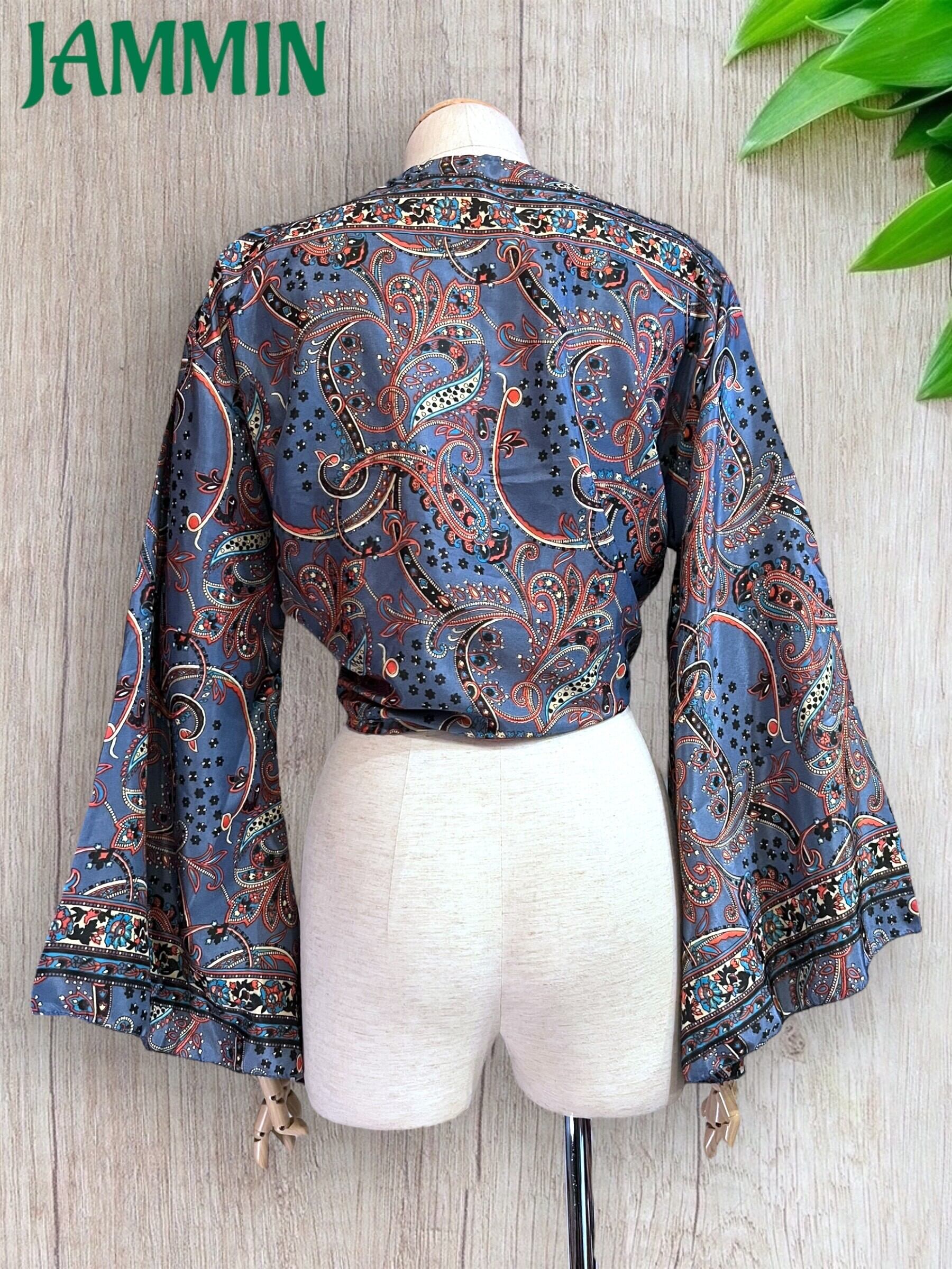 広めのフレア袖で、シルエットの可愛いペーズリー柄ボレロです。