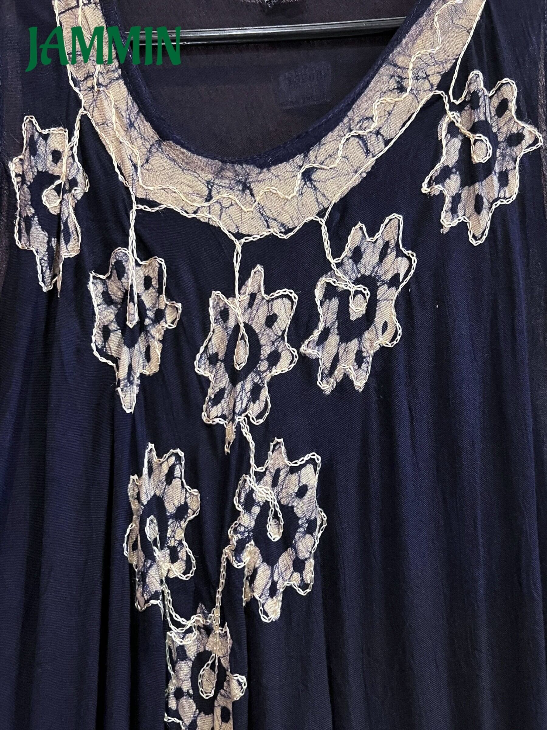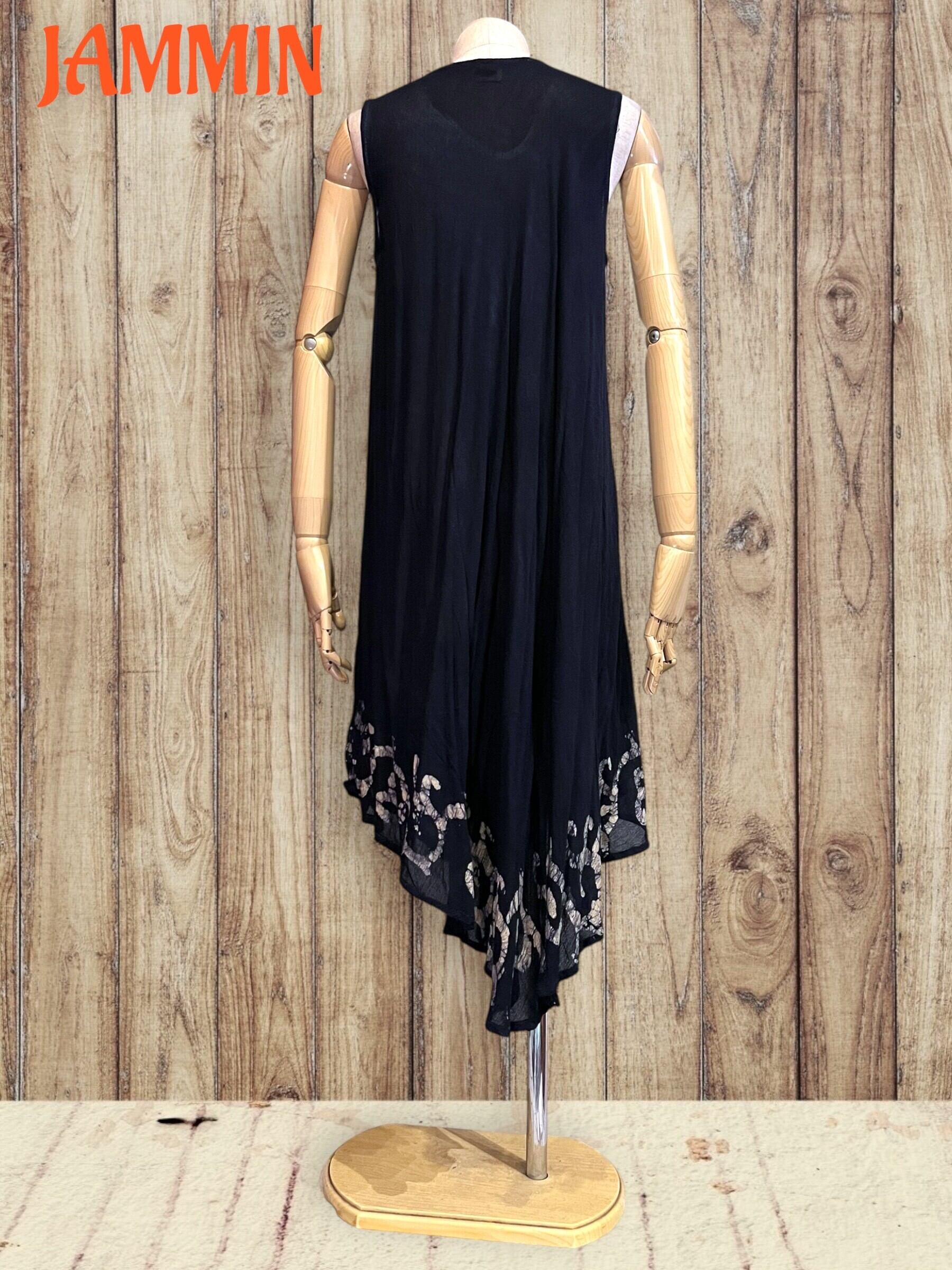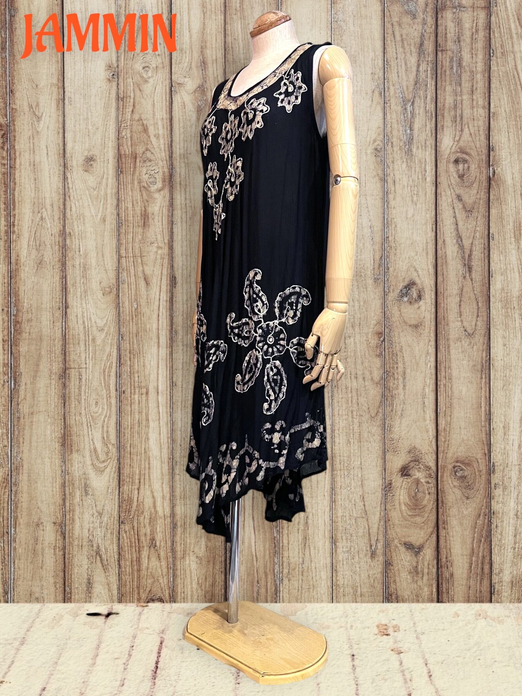 抜染の花柄部分に刺繍入りのフレアワンピです。