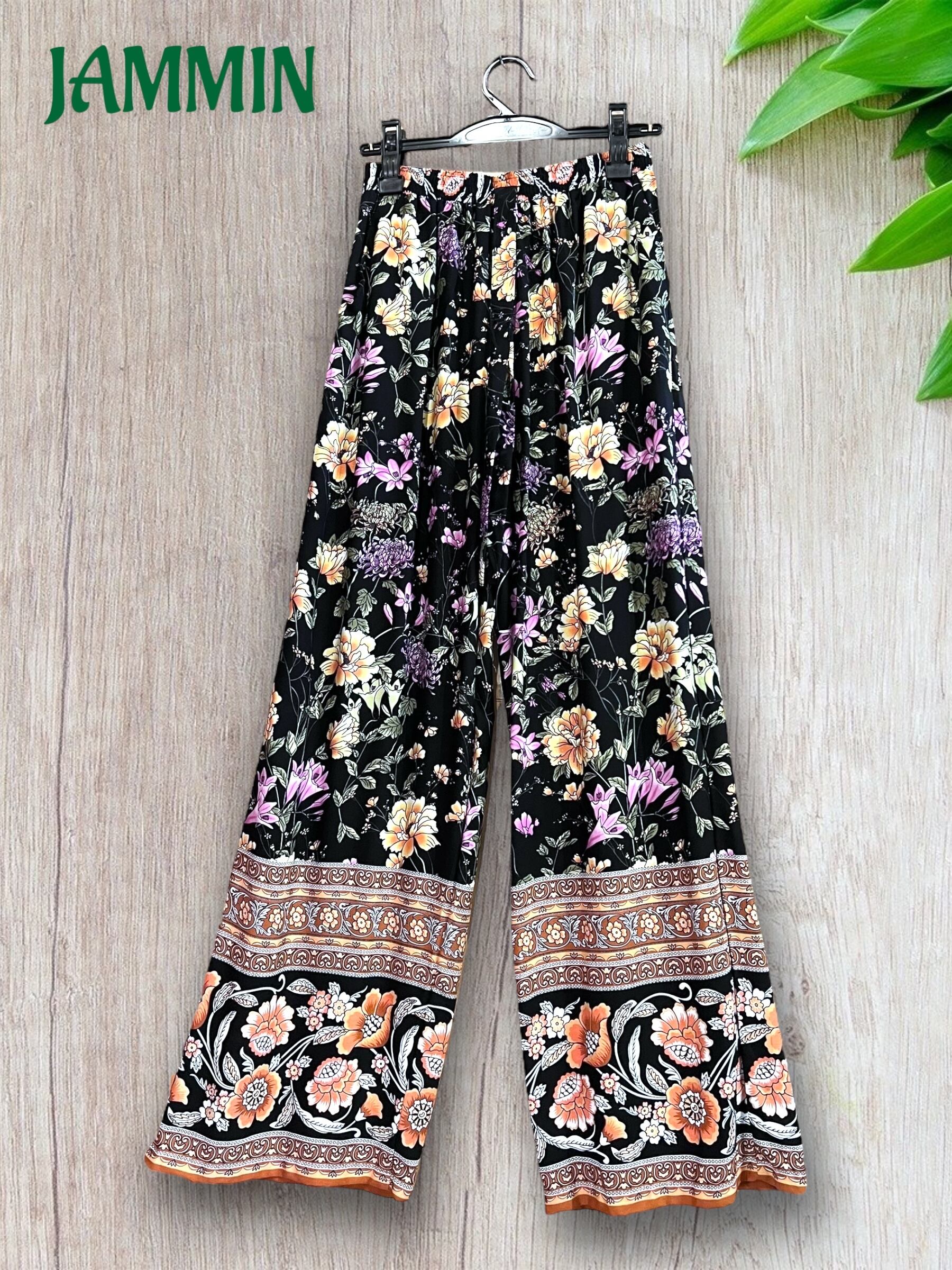 アジアンな植物花柄のパンツです。