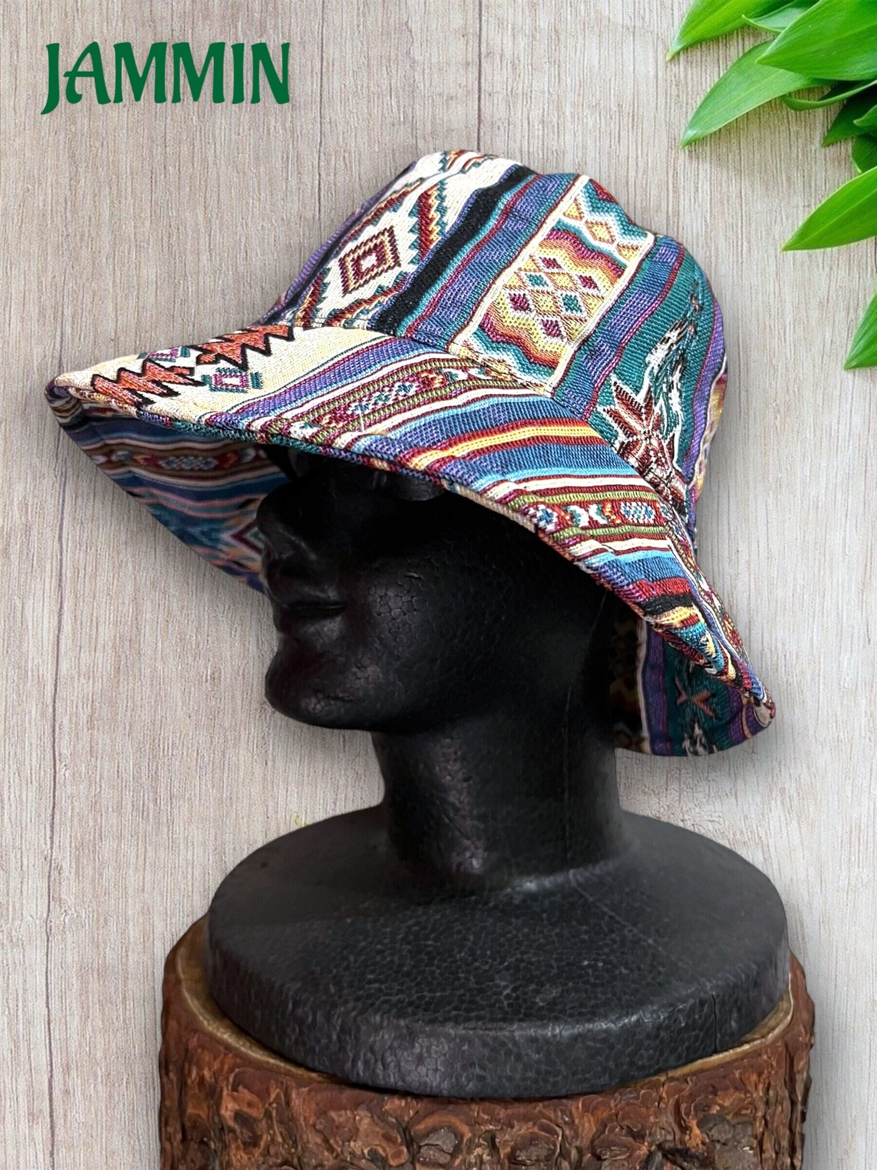 アジアン/エスニック/ヒッピー/サイケ/帽子/ハット/男女兼用/織り柄/ユニセックス/民族/ジャガード/ジャガードハット/ジャガード帽子/バケットハット/バケハ
