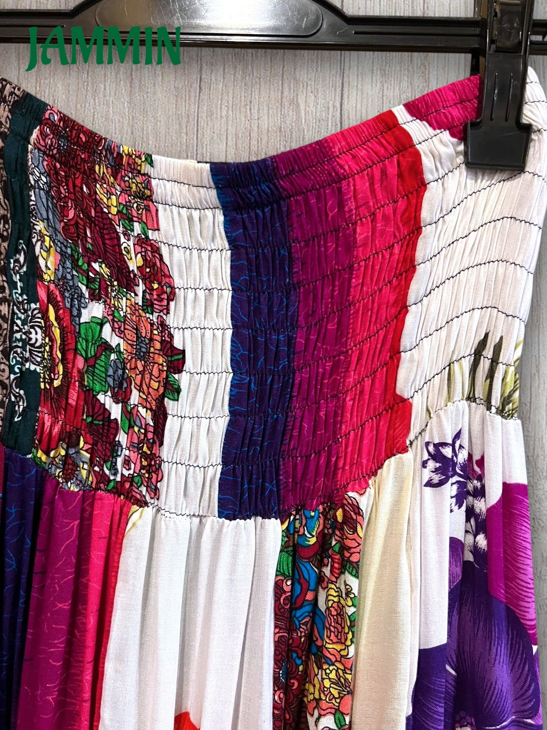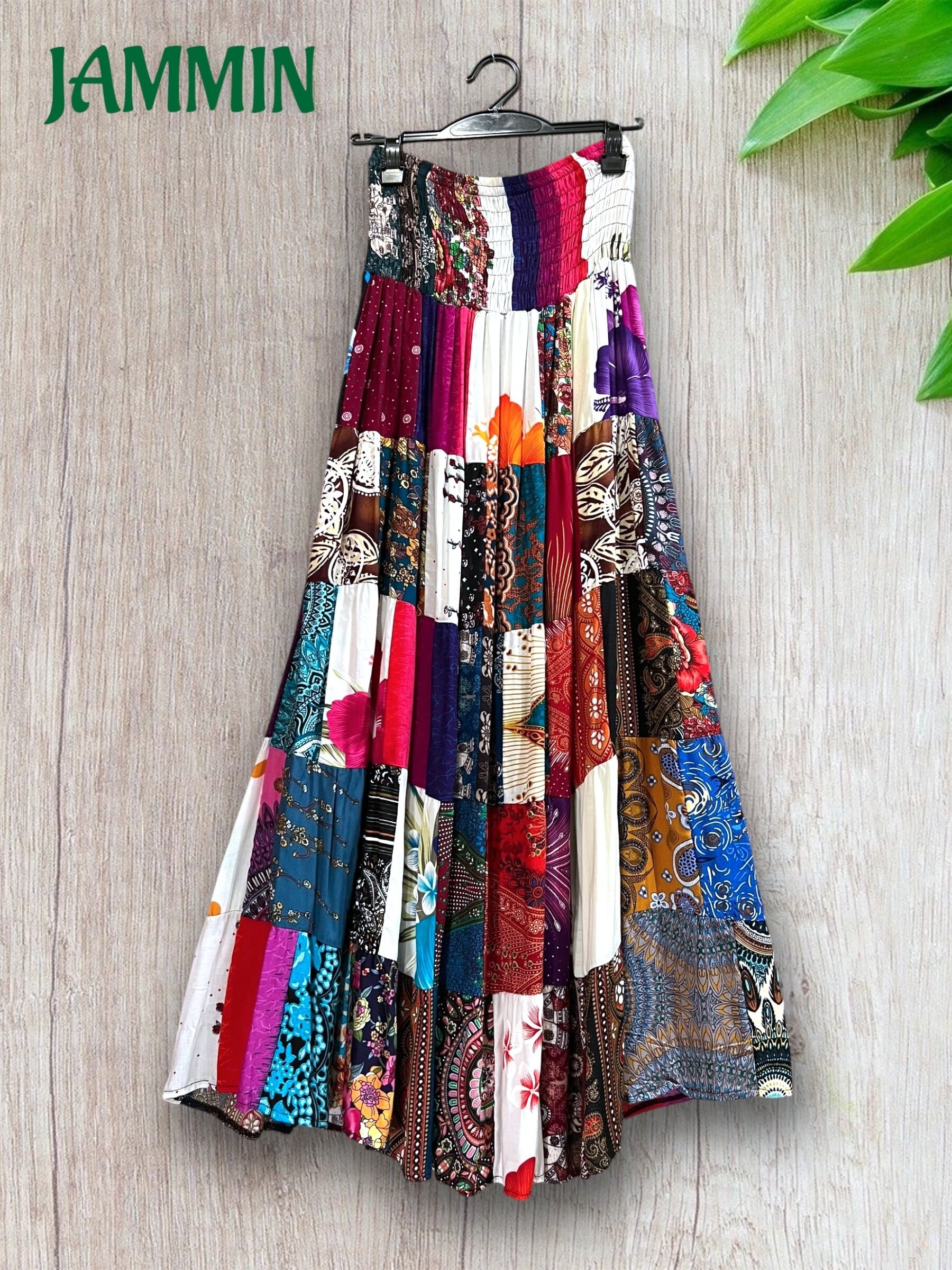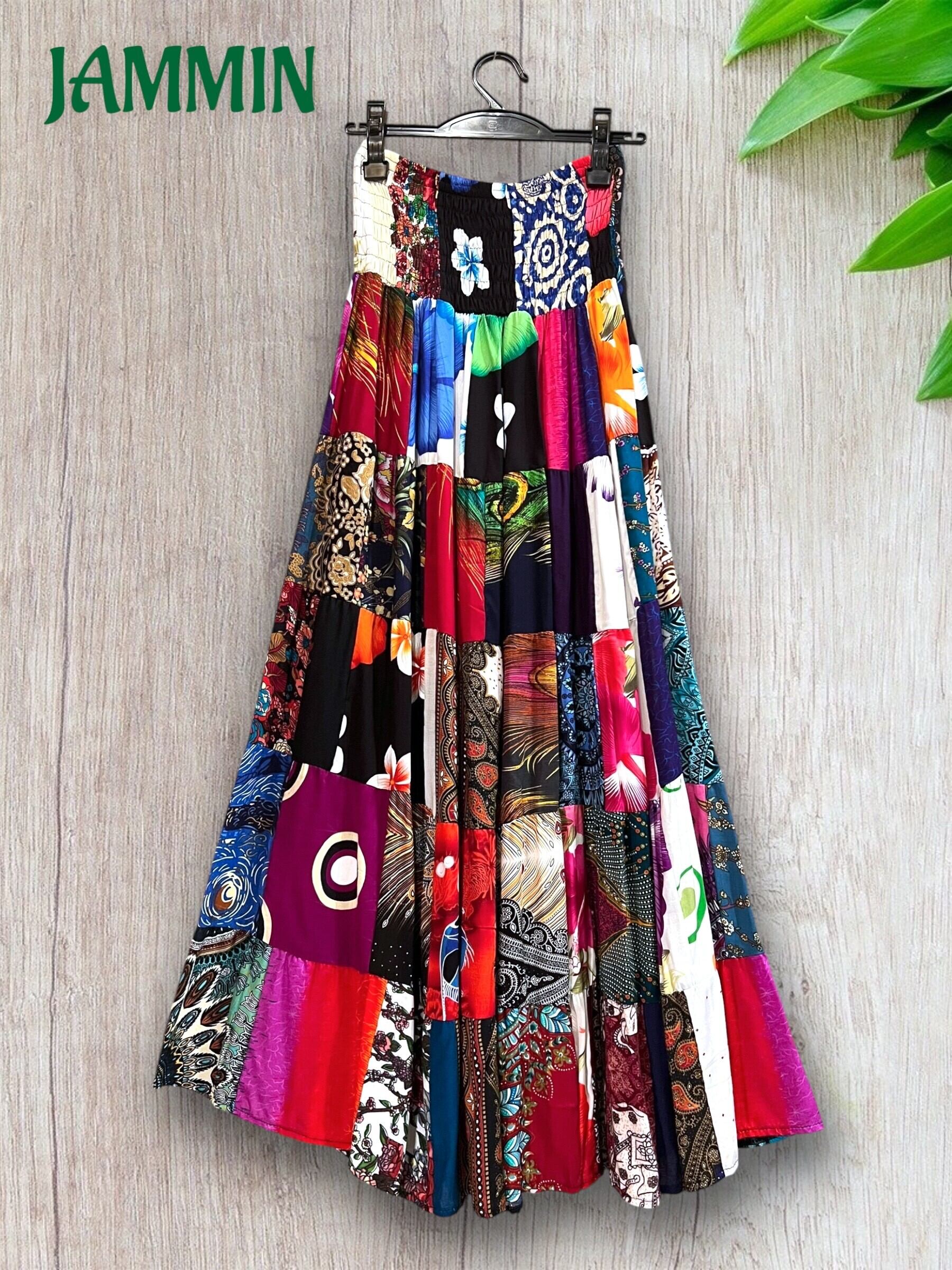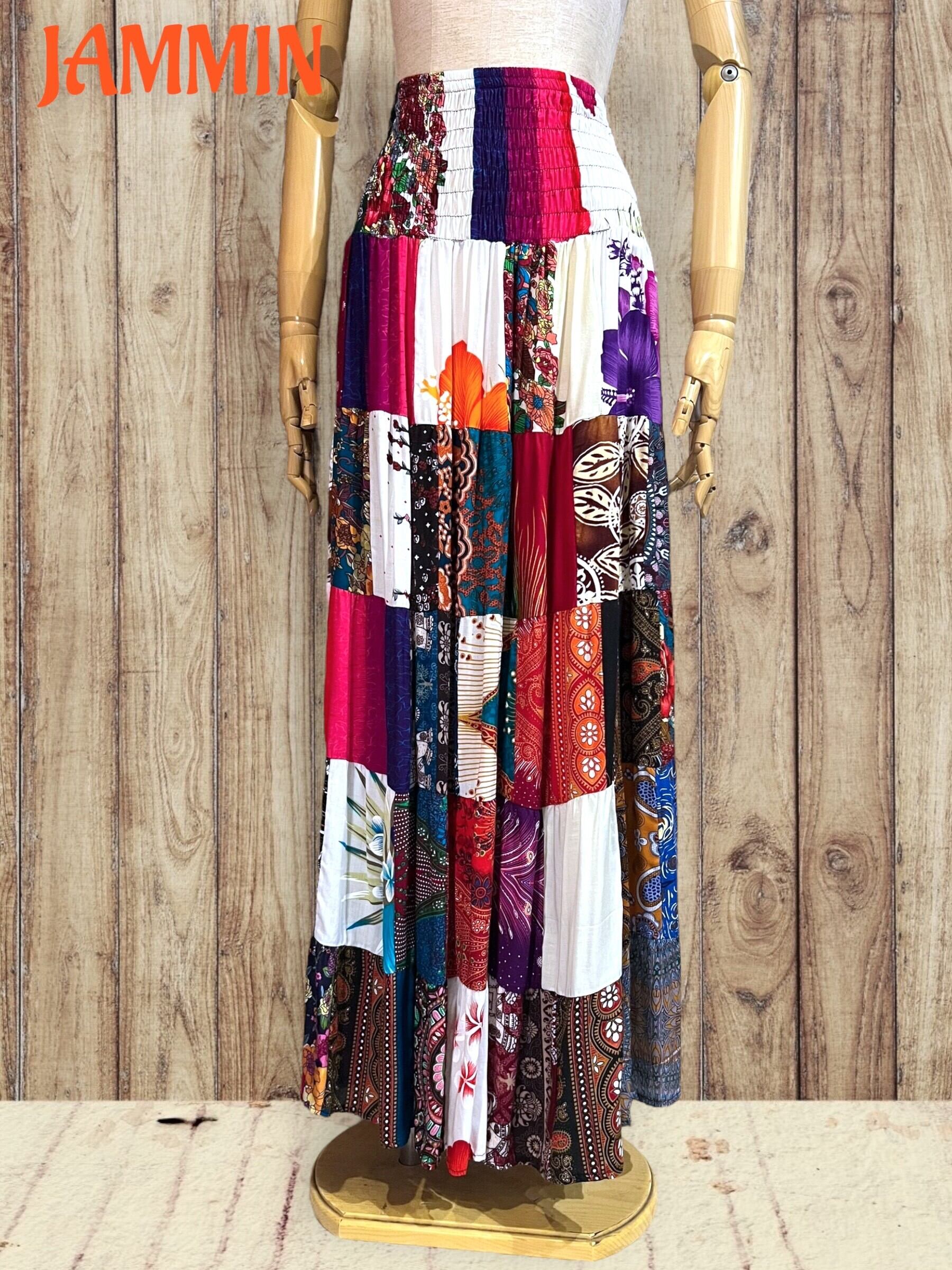 ロングスカート/フレアスカート/アジアンスカート/スカート/マキシ丈スカート/アジアン/エスニック/ヒッピー/サイケ/衣装/ゆったり/柄スカート/リゾート/フリーサイズ/大きいサイズ/パッチワークスカート
