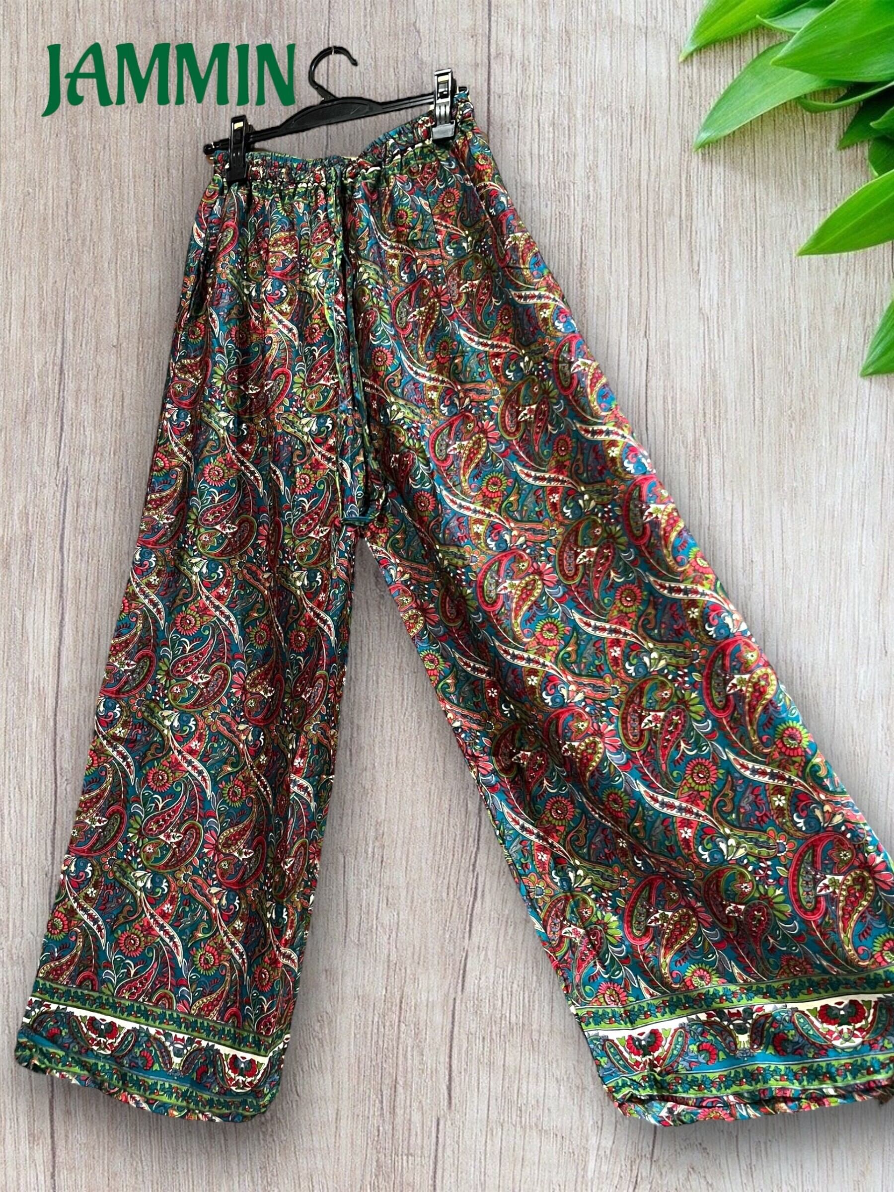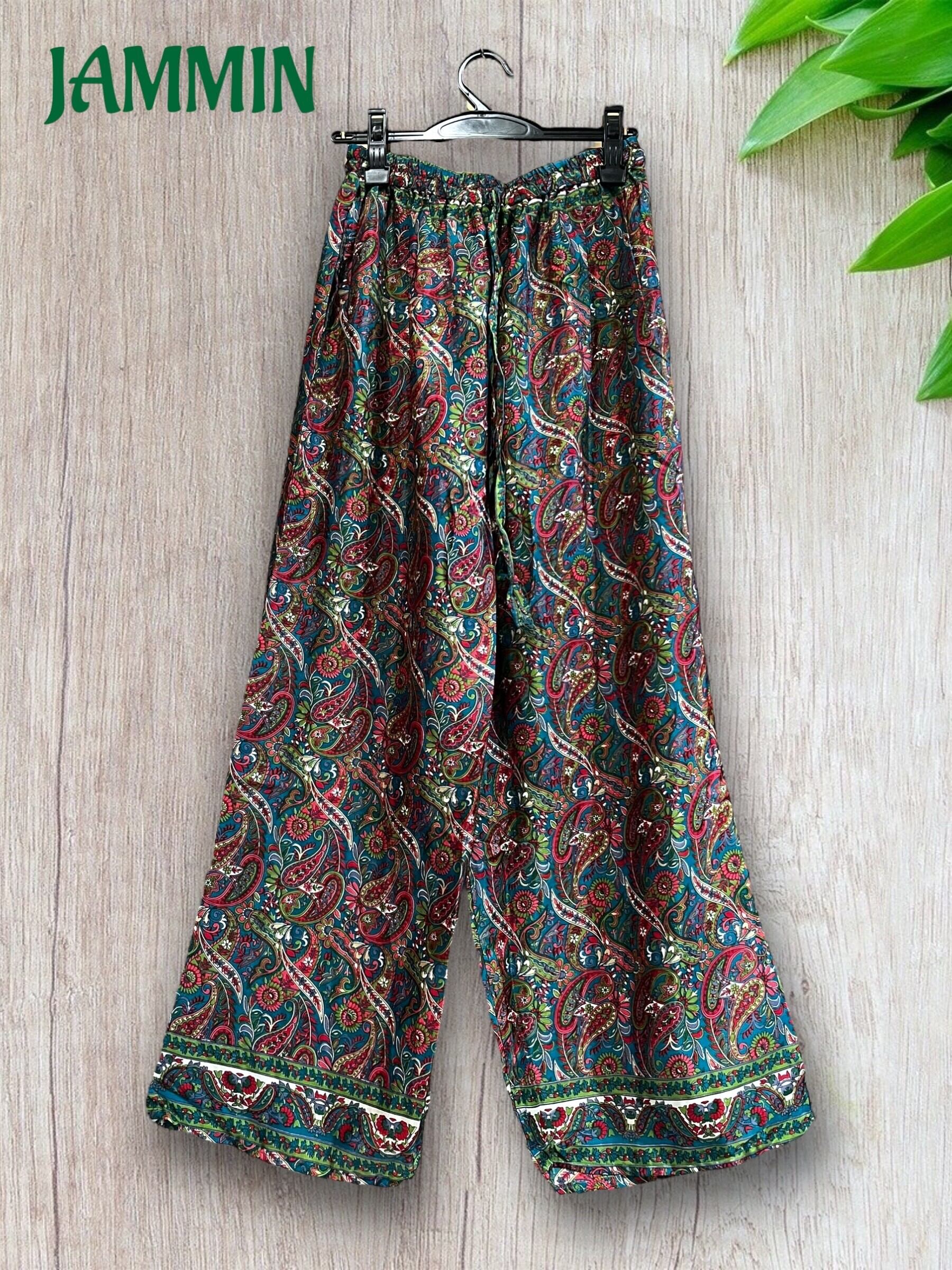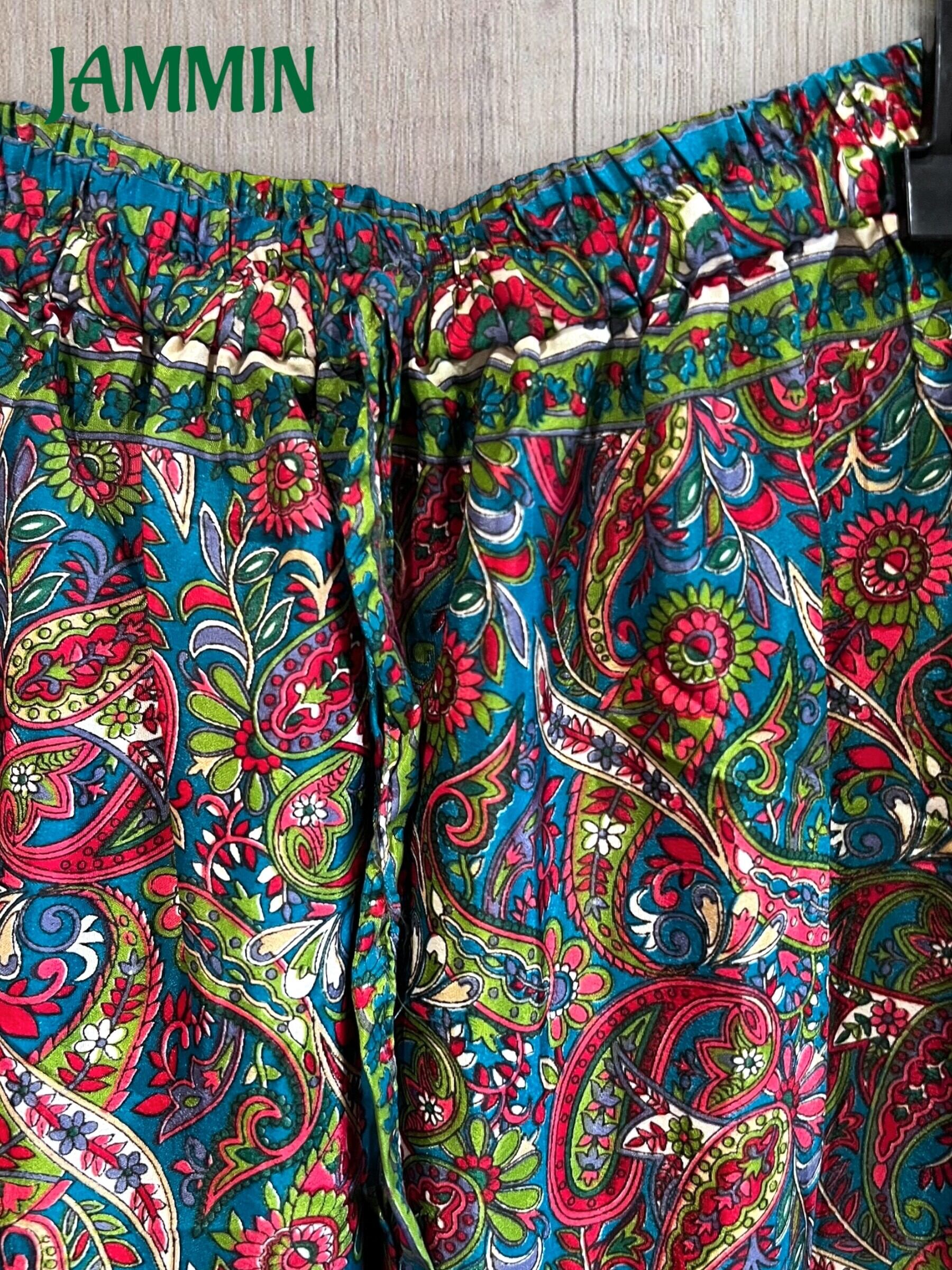 アジアンなペーズリー植物柄のゆるめパンツです。