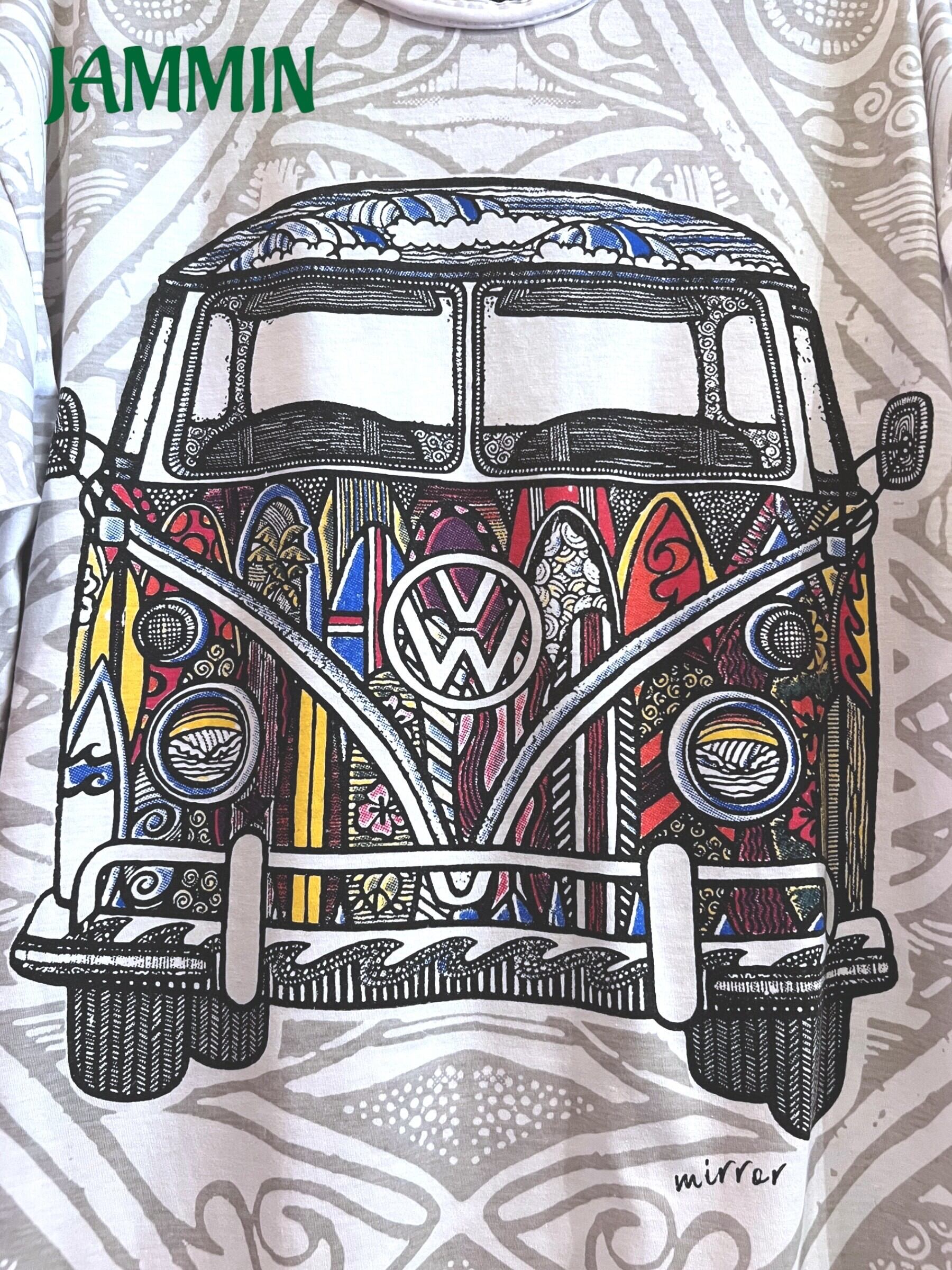 前後にヒッピーバスプリント入りTシャツです。