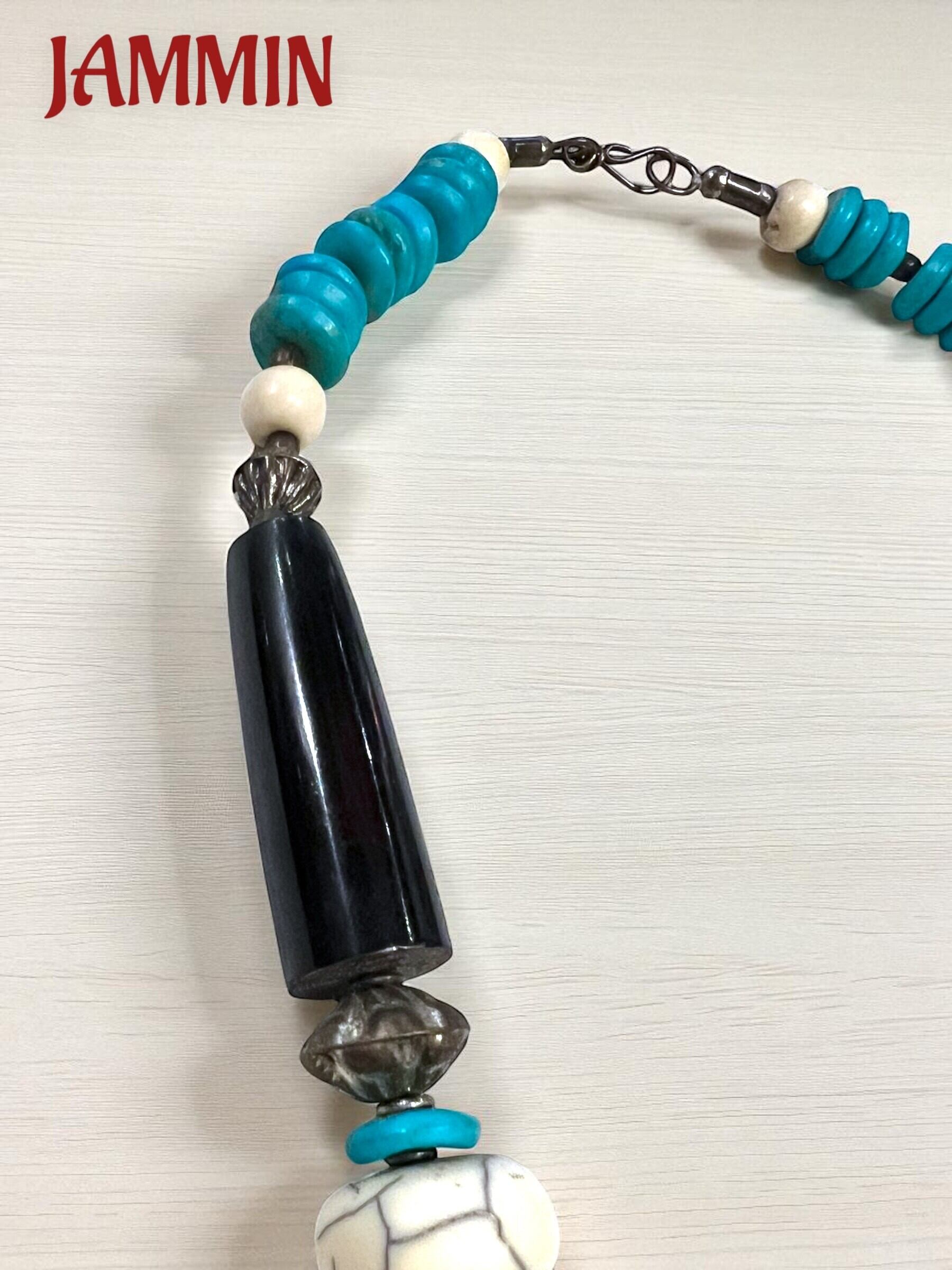 大きなボーンビーズや樹脂ビーズ使った個性的なネックレスです。