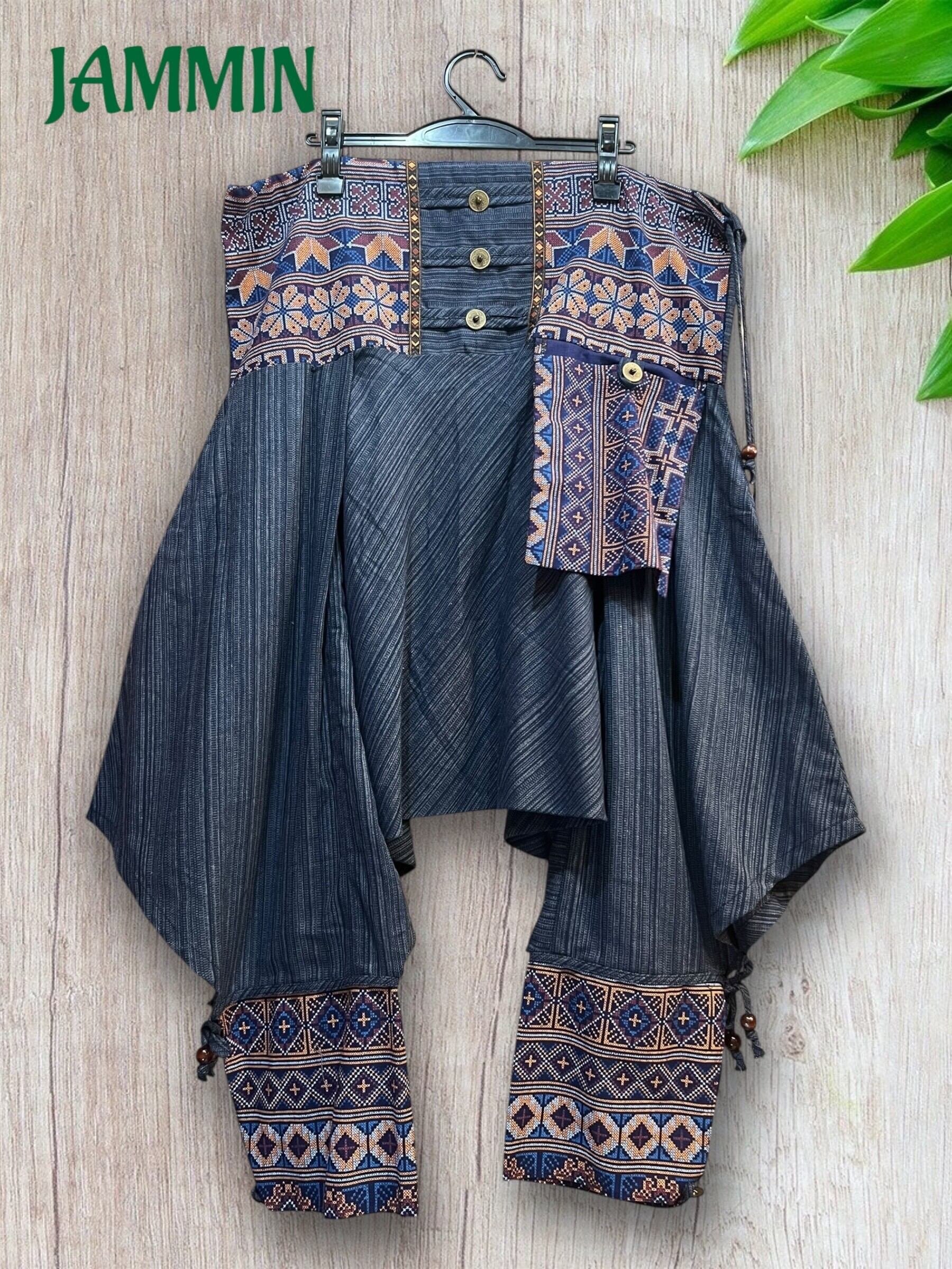 モン族刺繍柄生地付きサルエル忍者パンツ