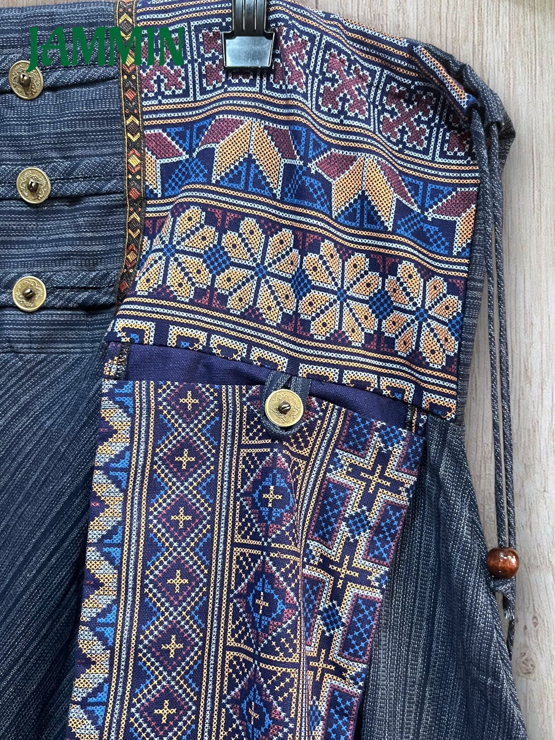 前ウエスト、ポケット部分、裾にモン族の刺繍柄生地が使われています。