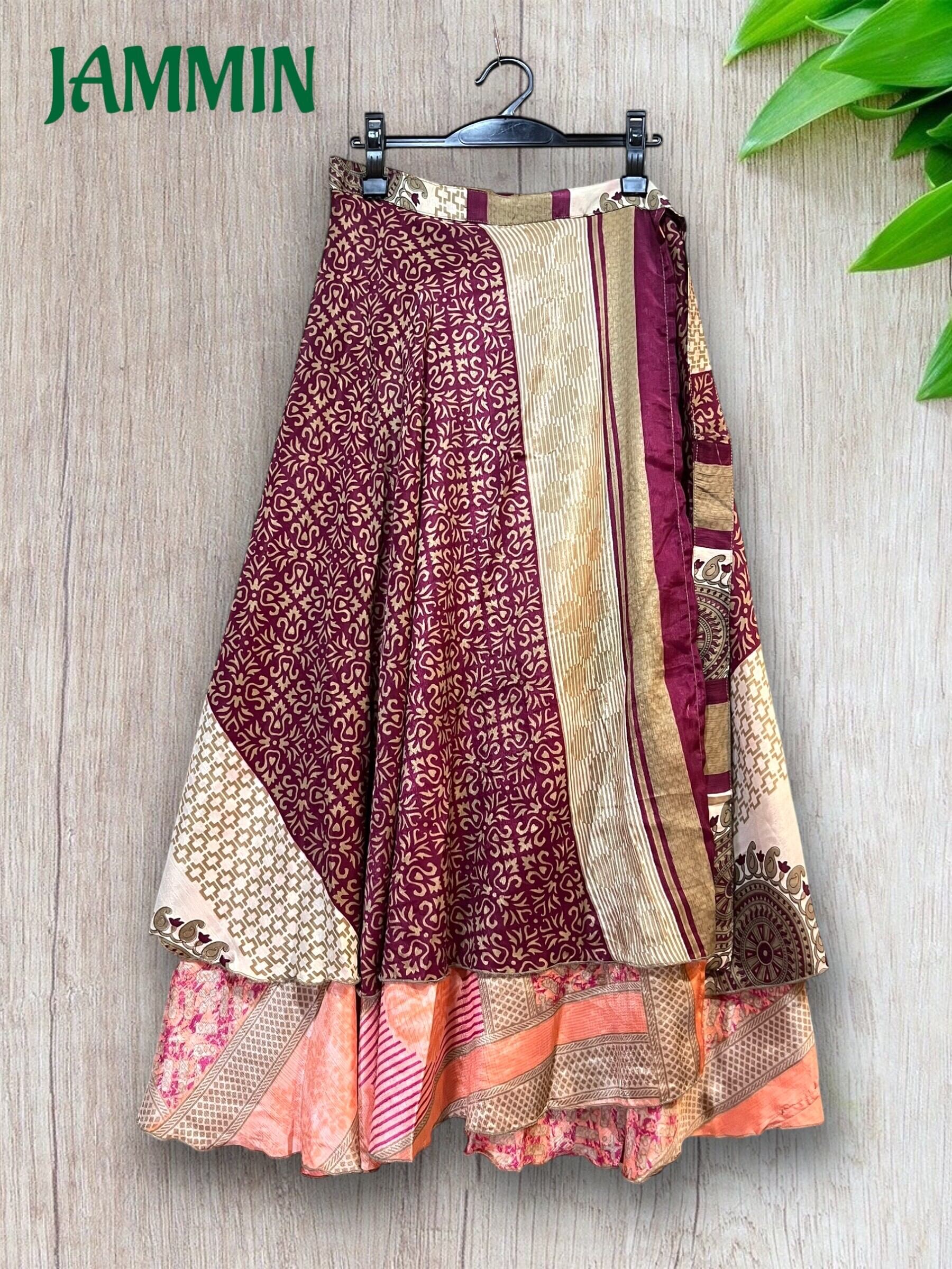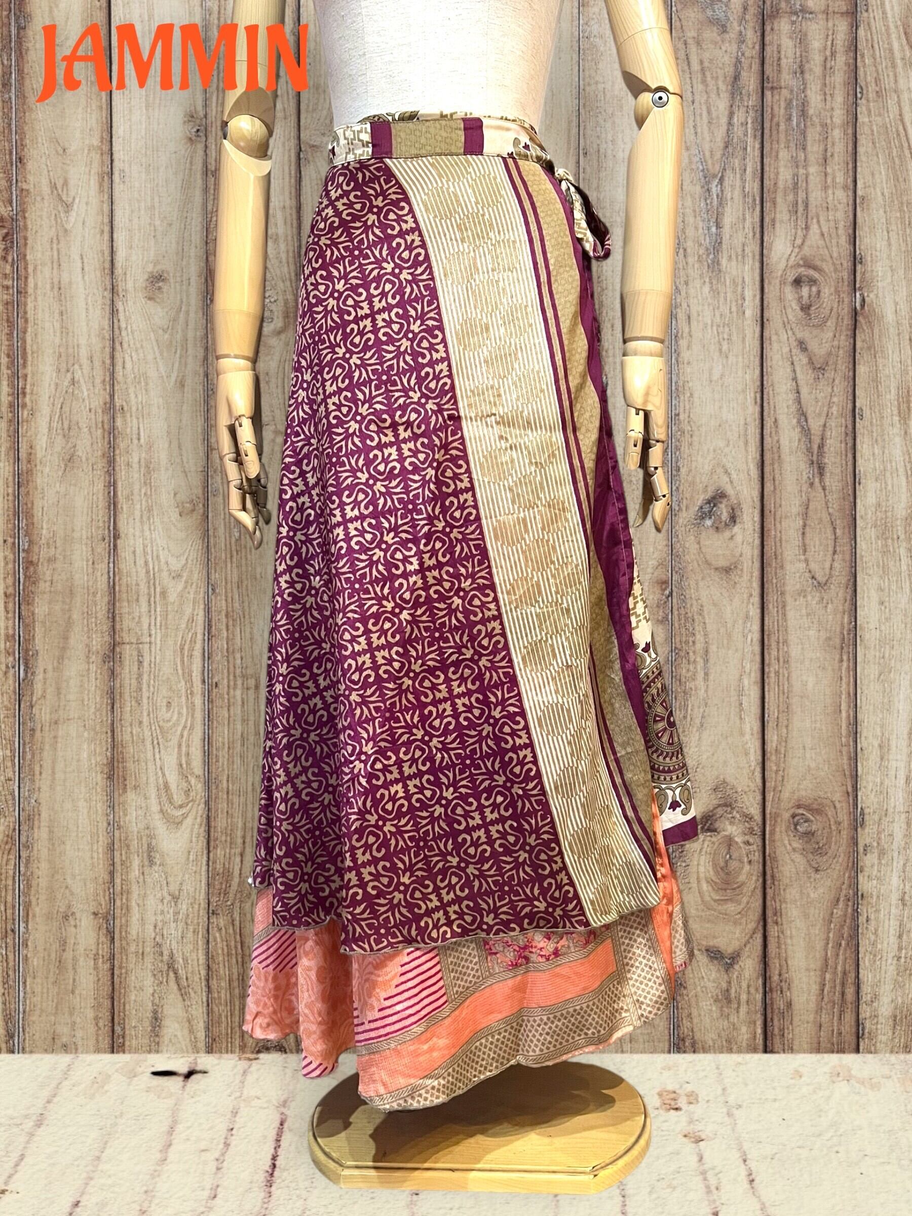 アジアンな柄(ペーズリー、植物柄など)の巻きスカートです。