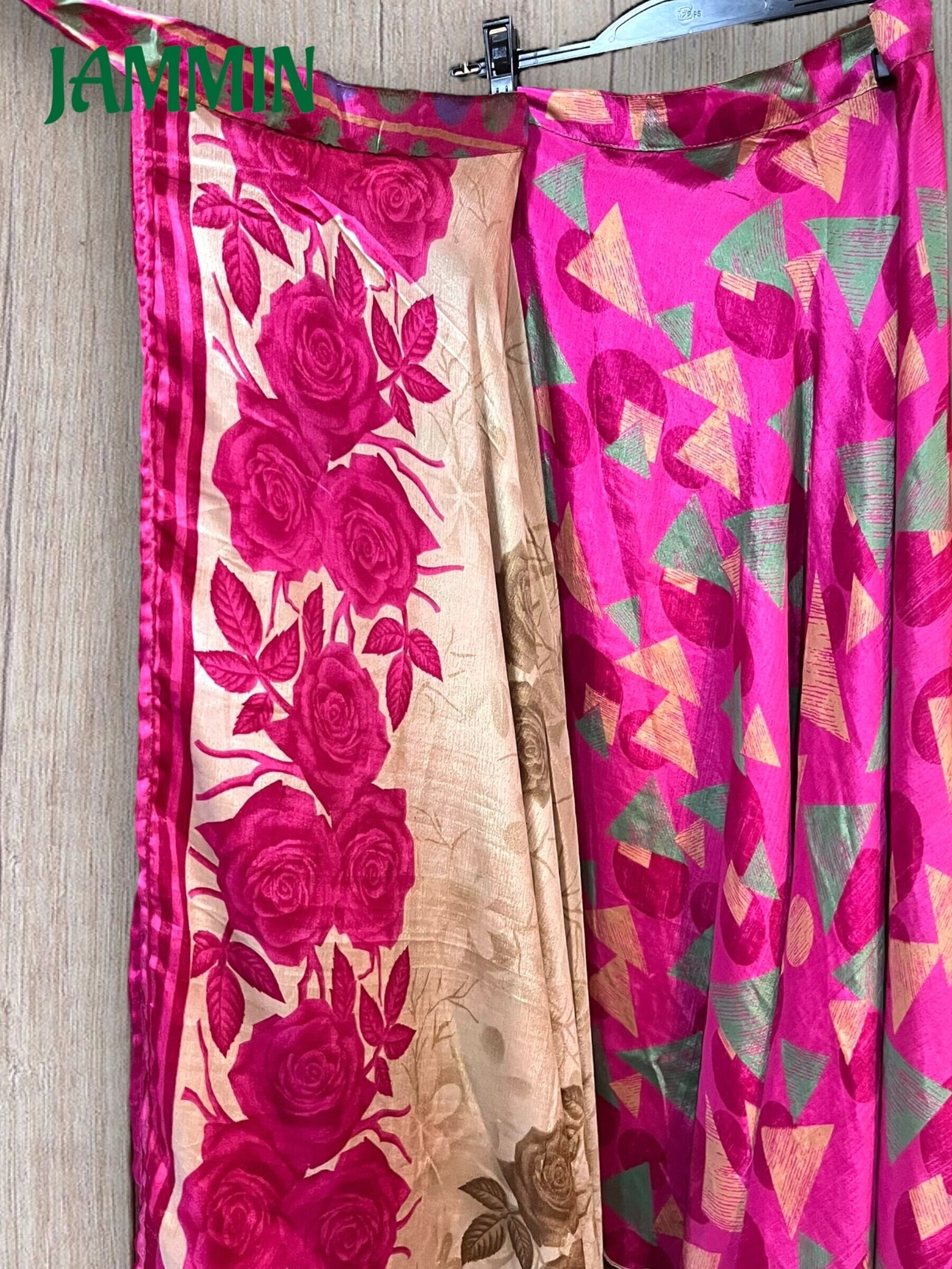 アジアンな柄(図形柄、花柄など)の巻きスカートです。