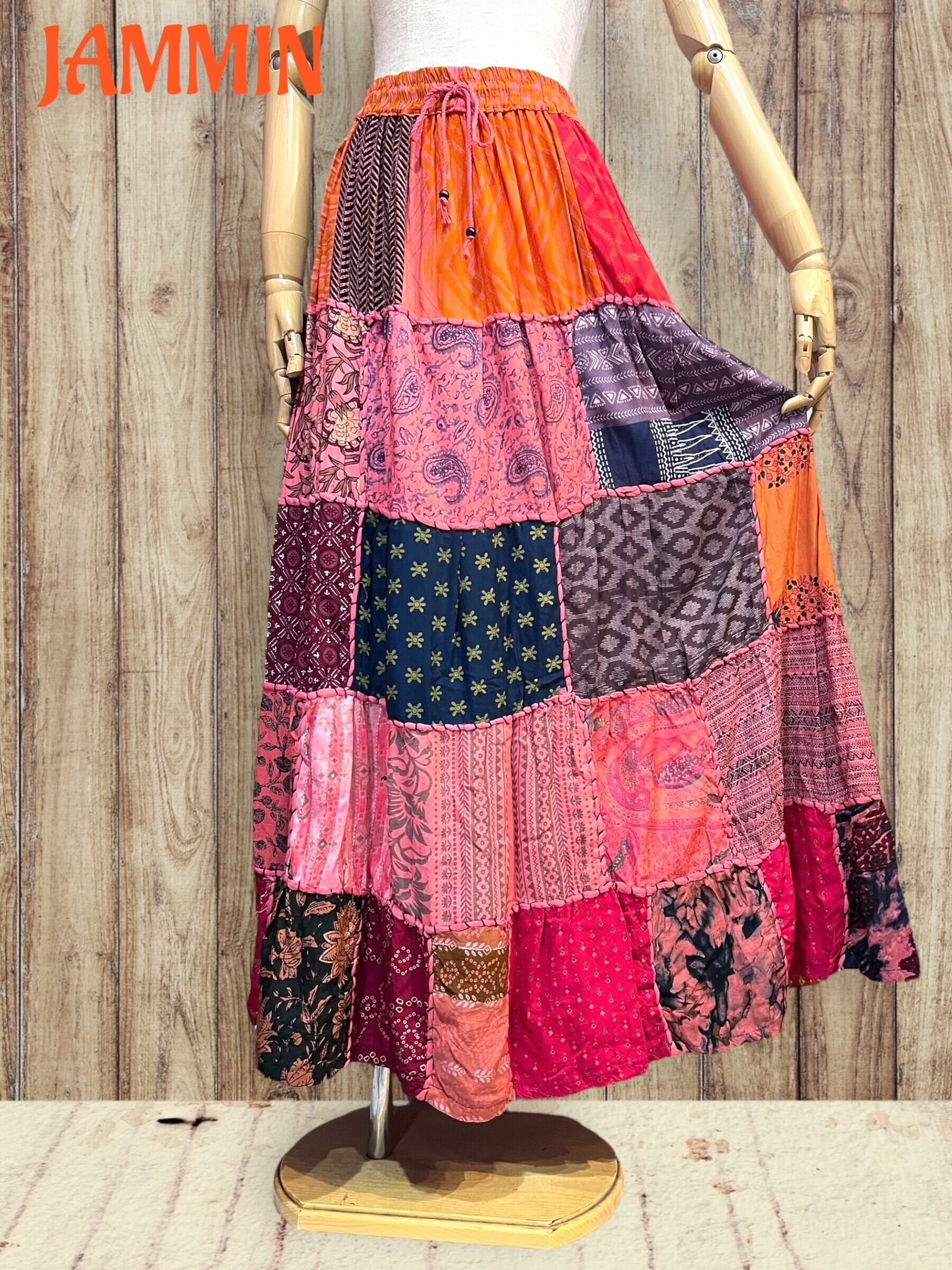 ロングスカート/フレアスカート/アジアンスカート/スカート/マキシ丈スカート/アジアン/エスニック/ヒッピー/サイケ/衣装/ゆったり/柄スカート/リゾート/フリーサイズ/大きいサイズ/パッチワークスカート