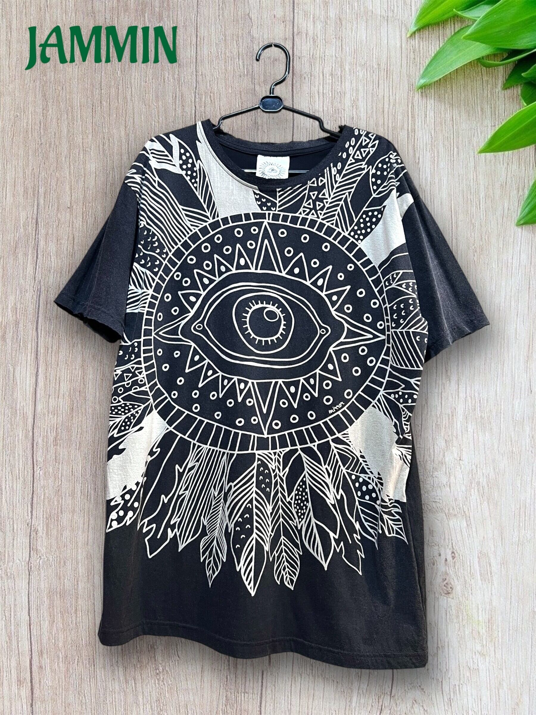 Tシャツ/アジアン/エスニック/サイケ/ヒッピー/サイケデリック/個性派Tシャツ/Lサイズ/目/眼