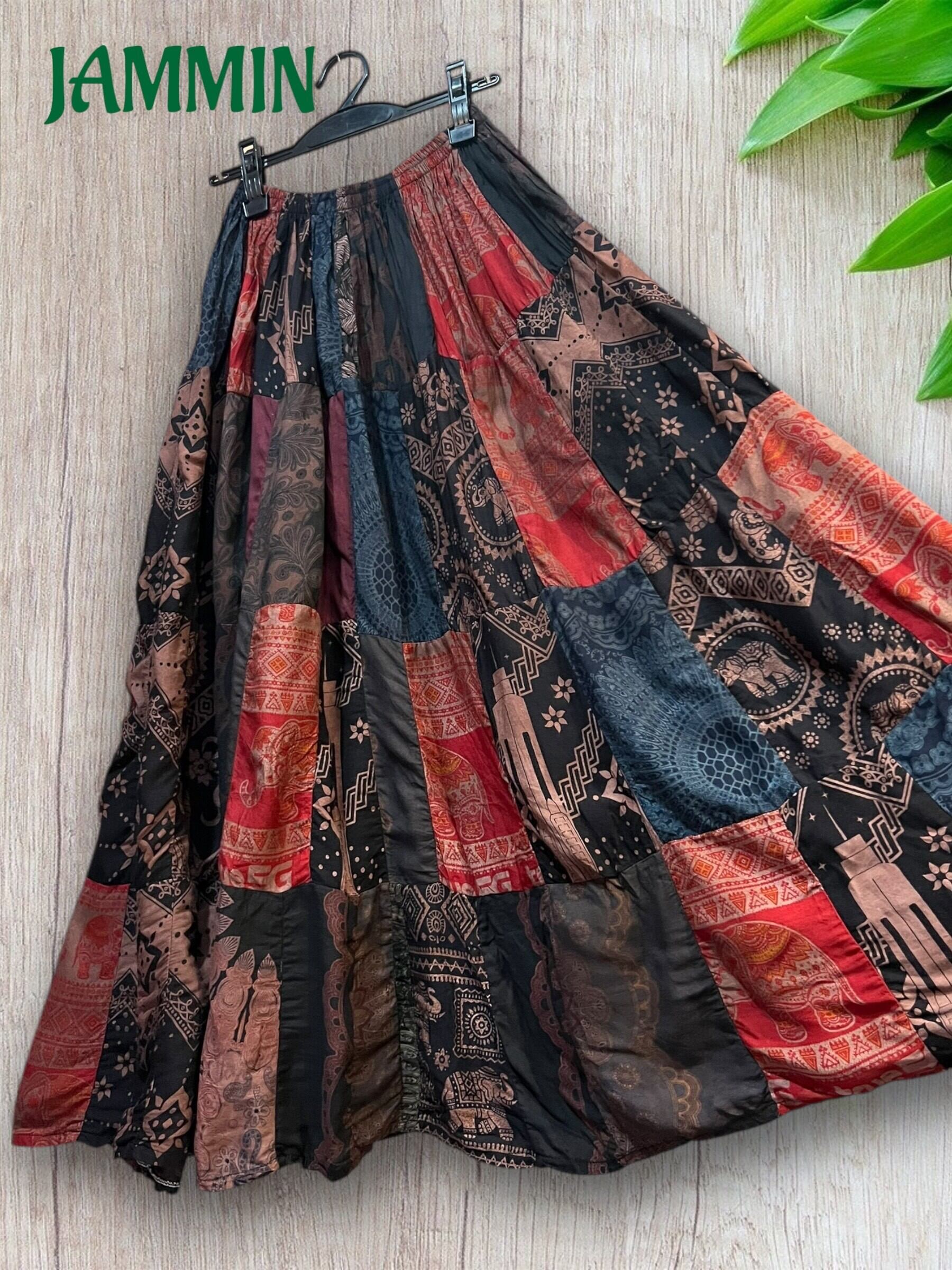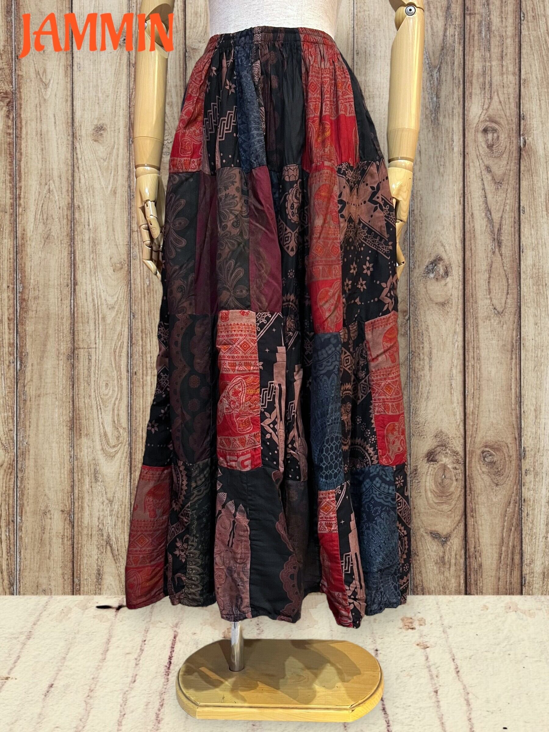 ロングスカート/フレアスカート/アジアンスカート/スカート/マキシ丈スカート/アジアン/エスニック/ヒッピー/サイケ/衣装/ゆったり/柄スカート/リゾート/フリーサイズ/大きいサイズ/パッチワークスカート