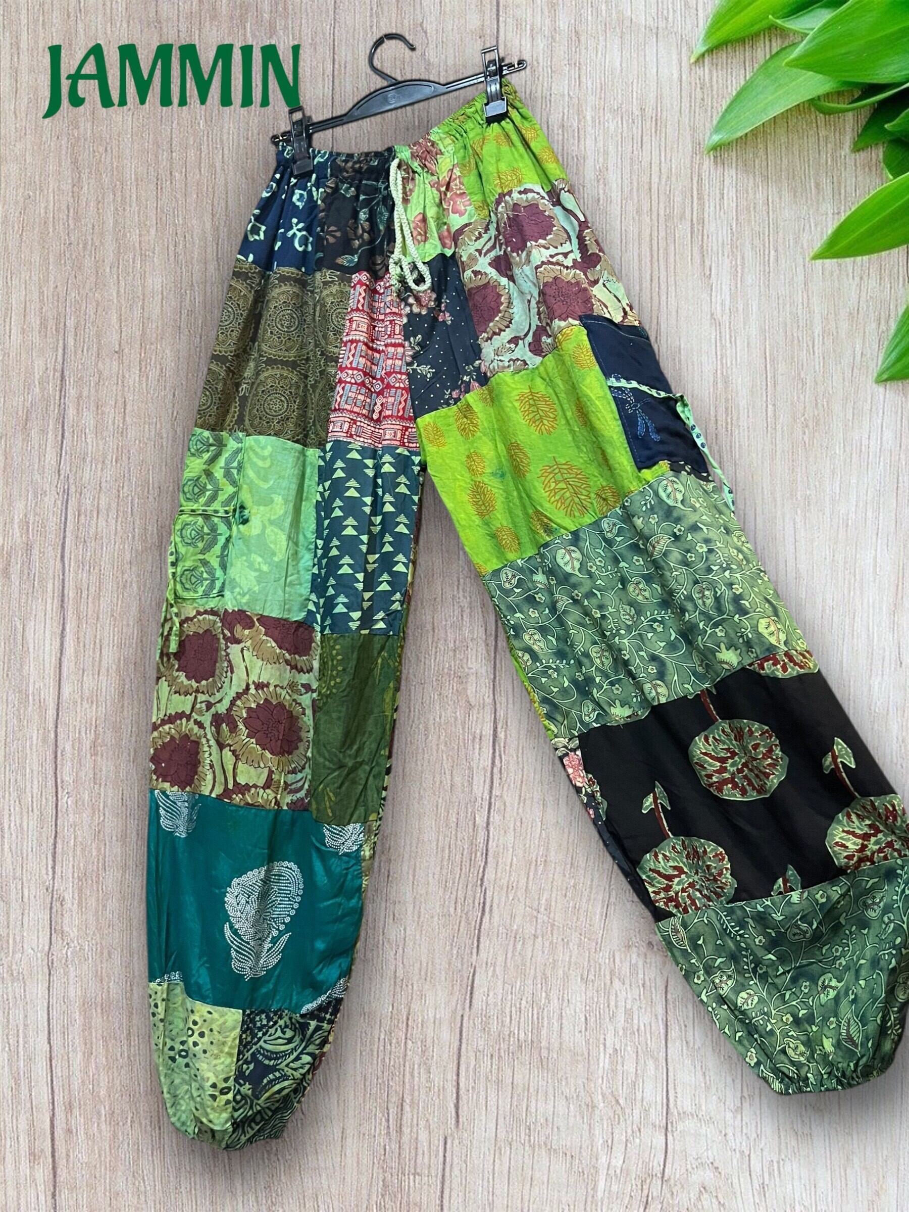 色々なアジアン柄生地を使ったパッチワークパンツです。