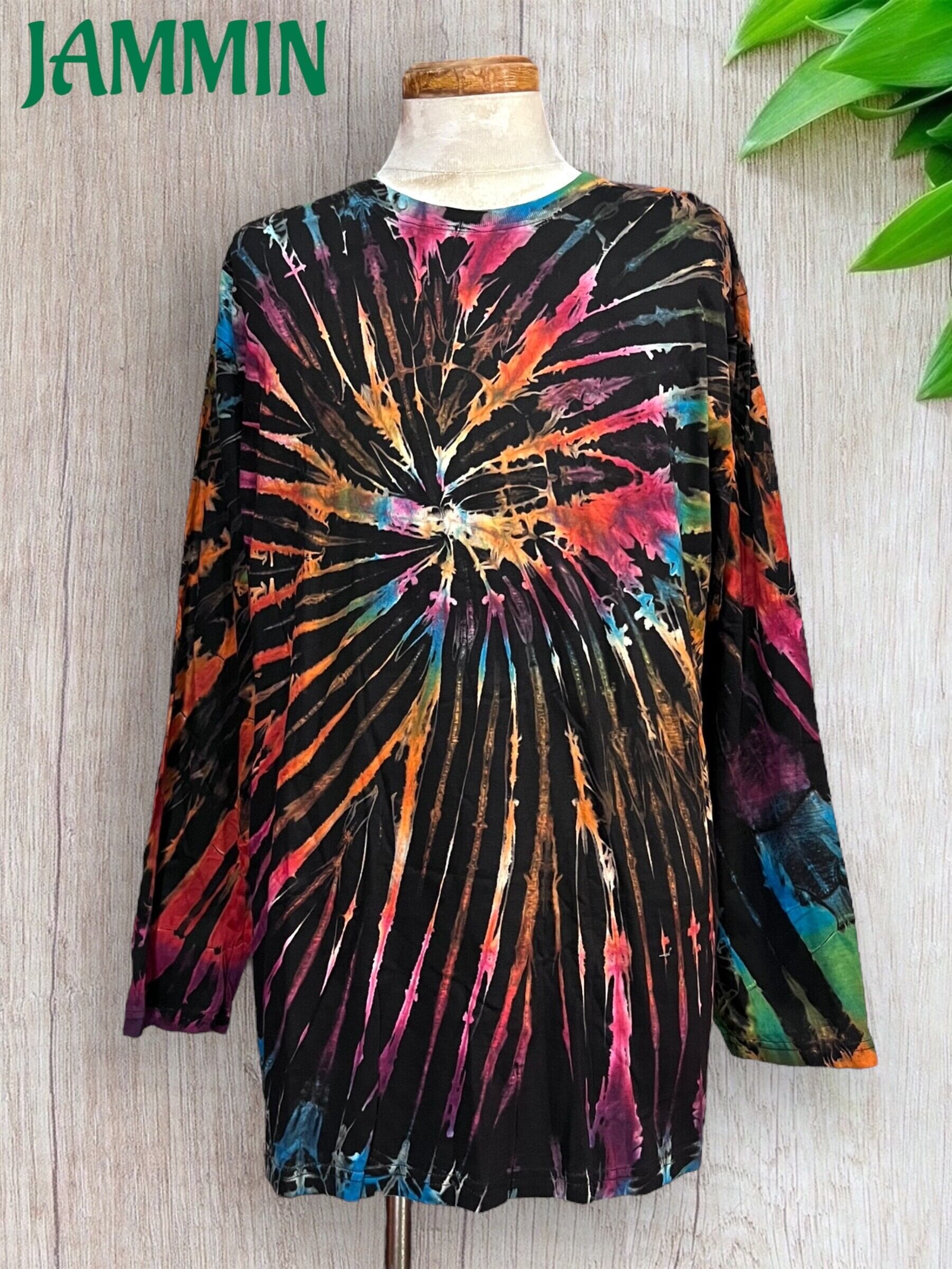 アジアン/エスニック/ヒッピー/サイケ/レゲエ /ロンT/ロングスリーブ/長袖/タイダイ/タイダイロンT/ヒッピーファッション/アジアンファッション/エスニックファッション/大きいサイズ