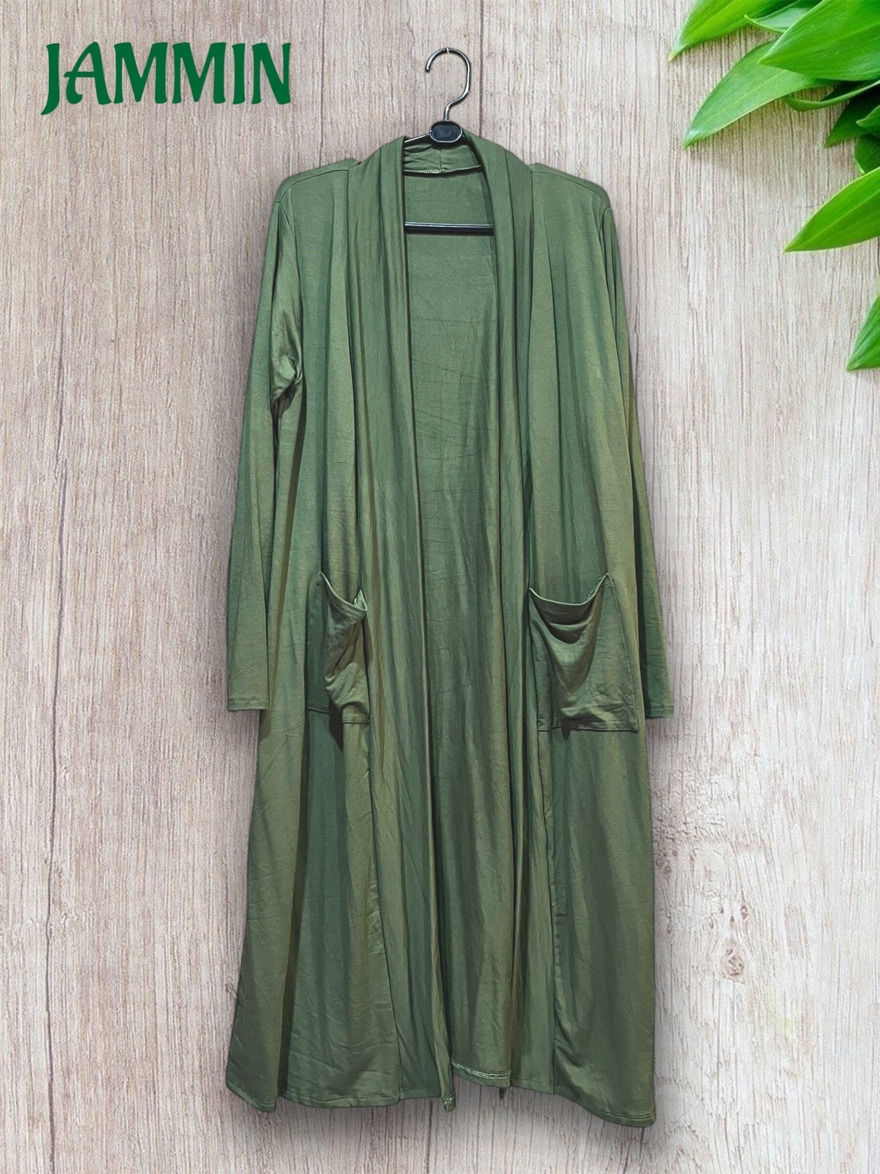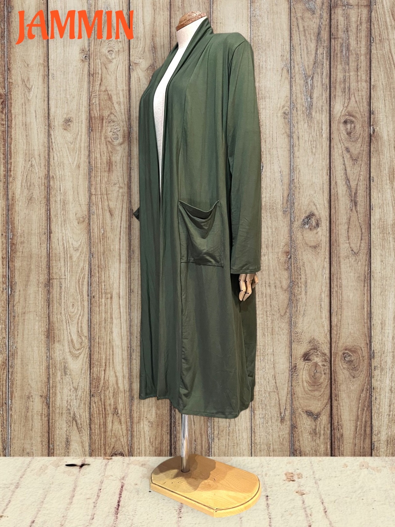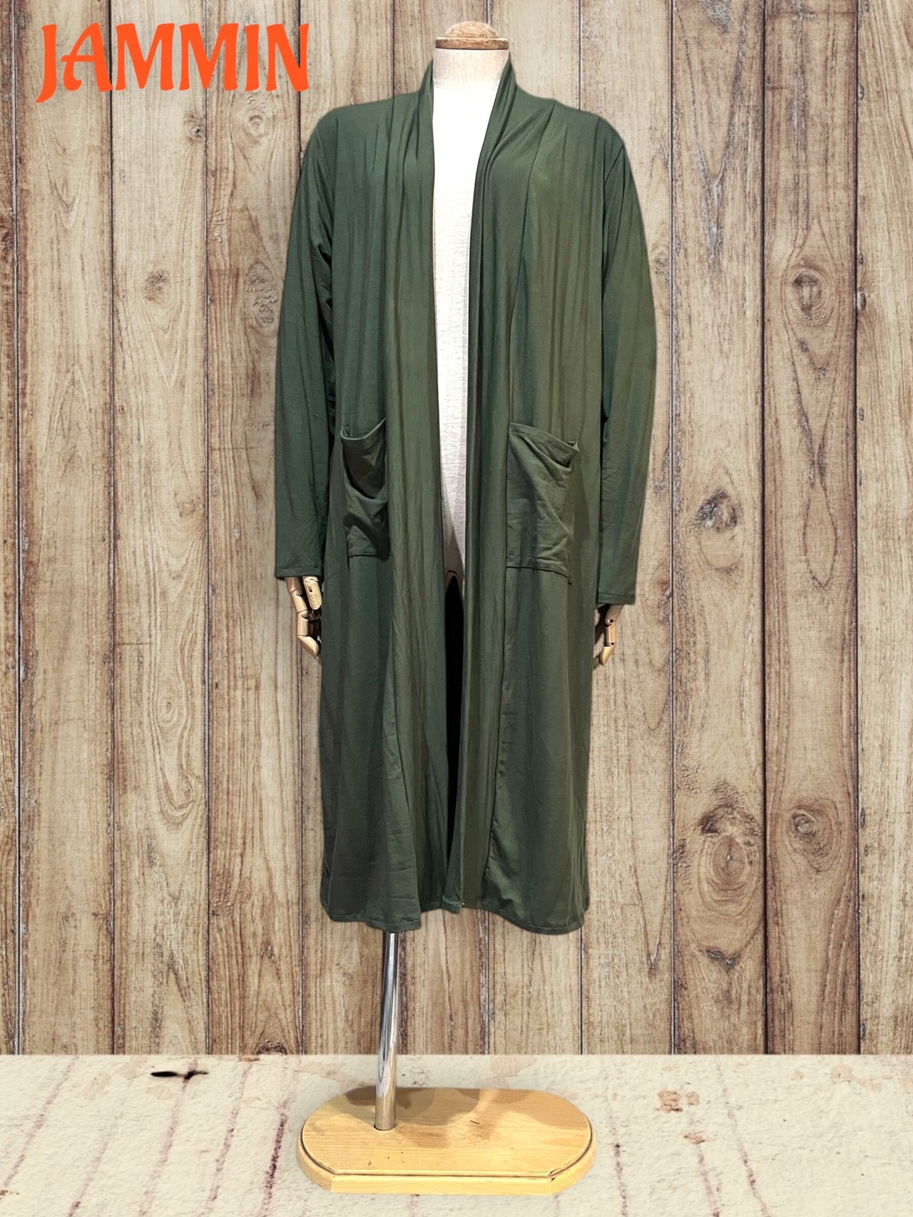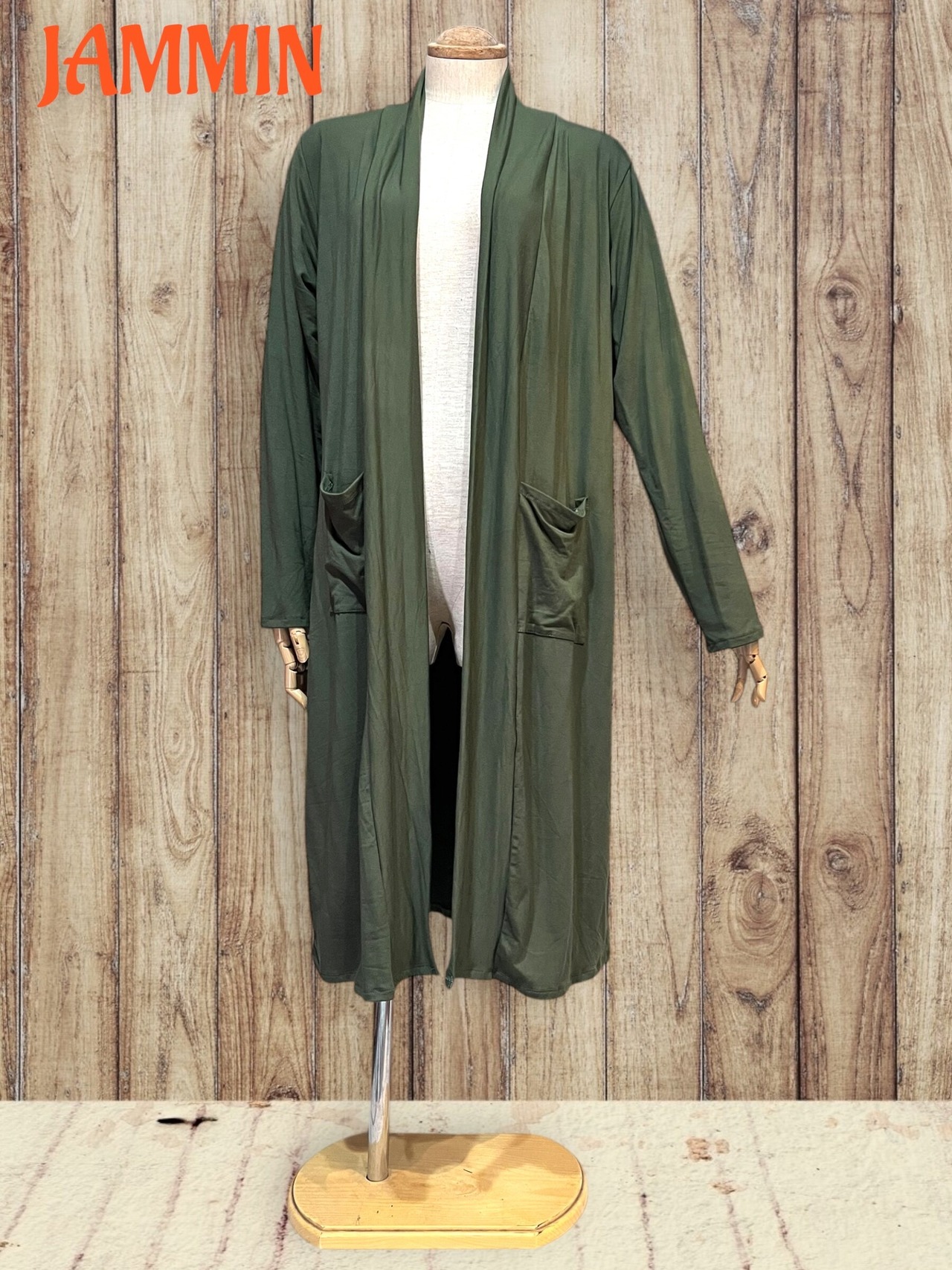 ストレッチロングカーディガン カーキ
