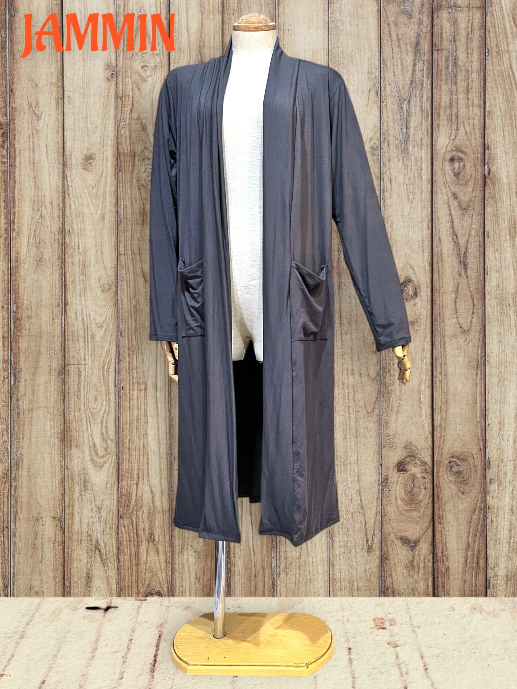 伸縮性に極めて優れたスパンデックス混のレーヨン素材で、着心地楽々のストレッチロングカーディガンです。