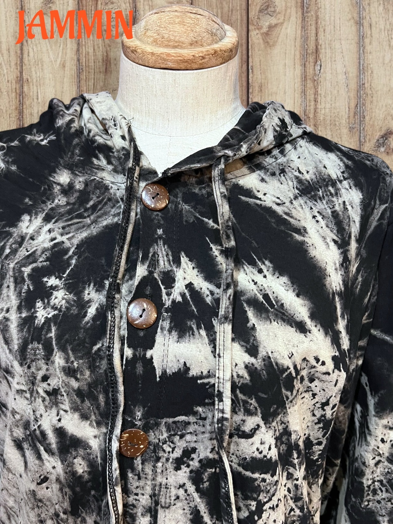 前開き部分にココナッツボタン付きで、左右にポケット付き。