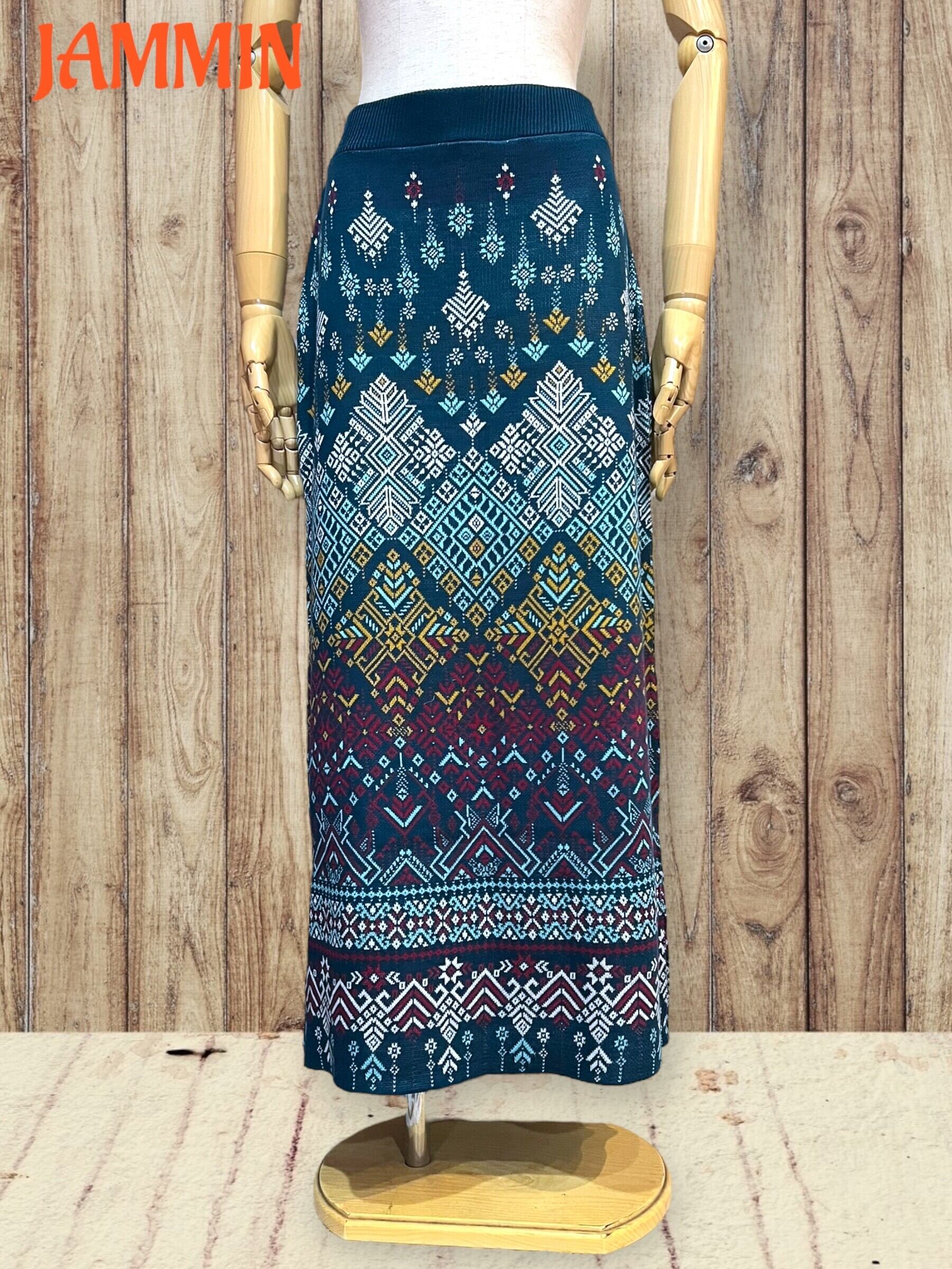 ニットスカート/ロングスカート/アジアンスカート/スカート/アジアン/エスニック/ヒッピー/サイケ/柄スカート/