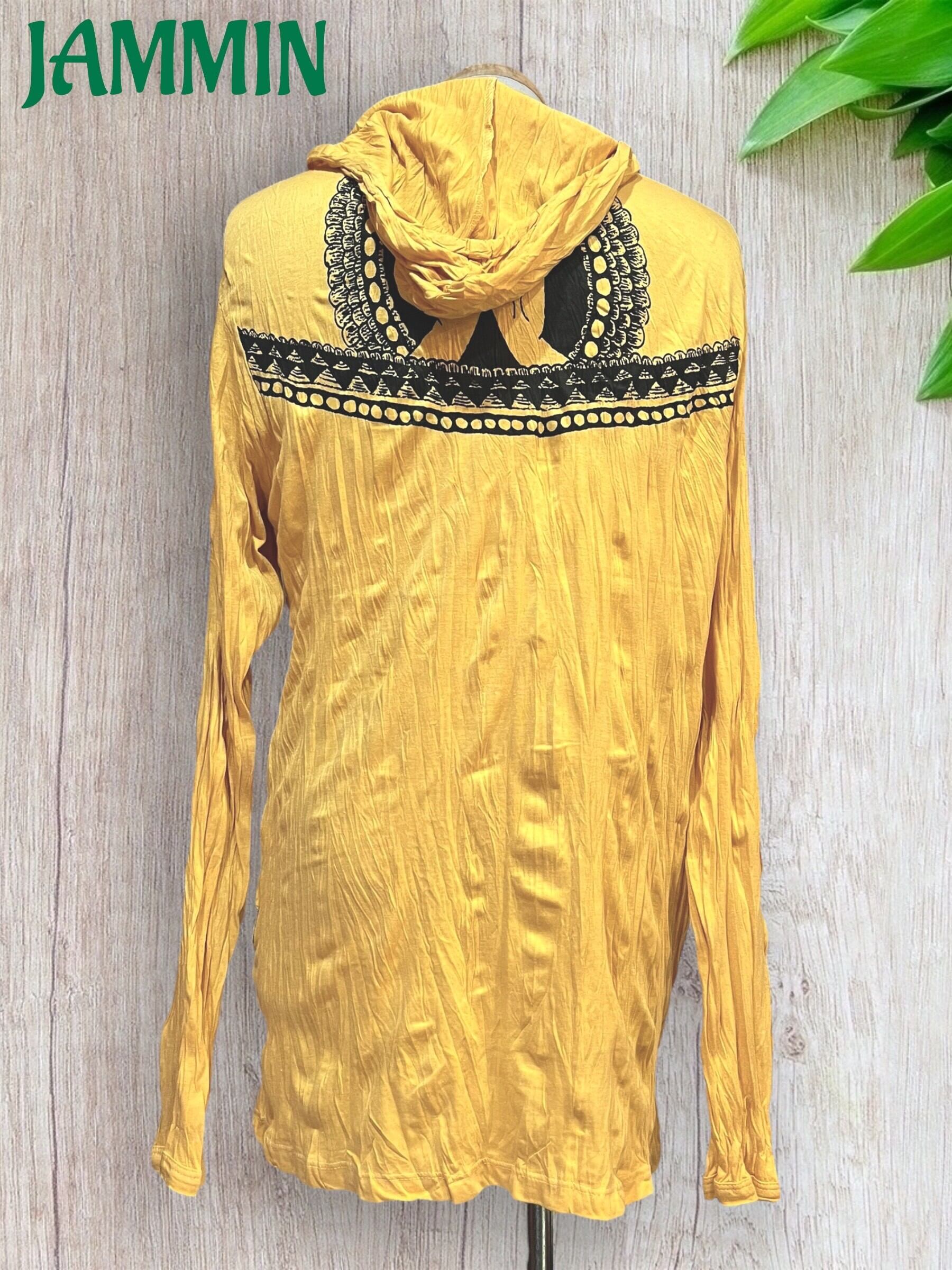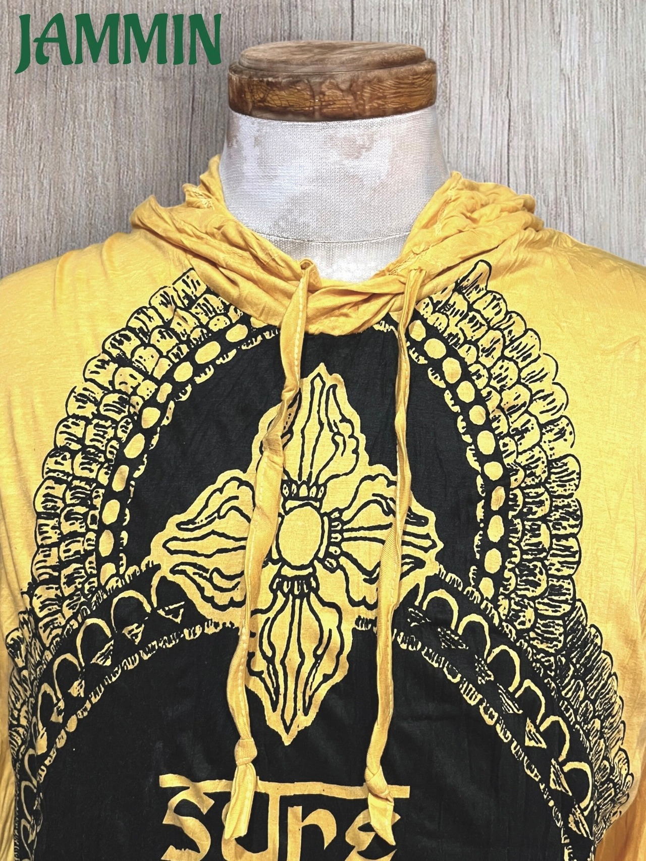 アジアン/エスニック/サイケ/ヒッピー/個性派/ロンT/長袖/Tシャツ/ロングスリーブTシャツ/フード付き/長袖/Lサイズ/