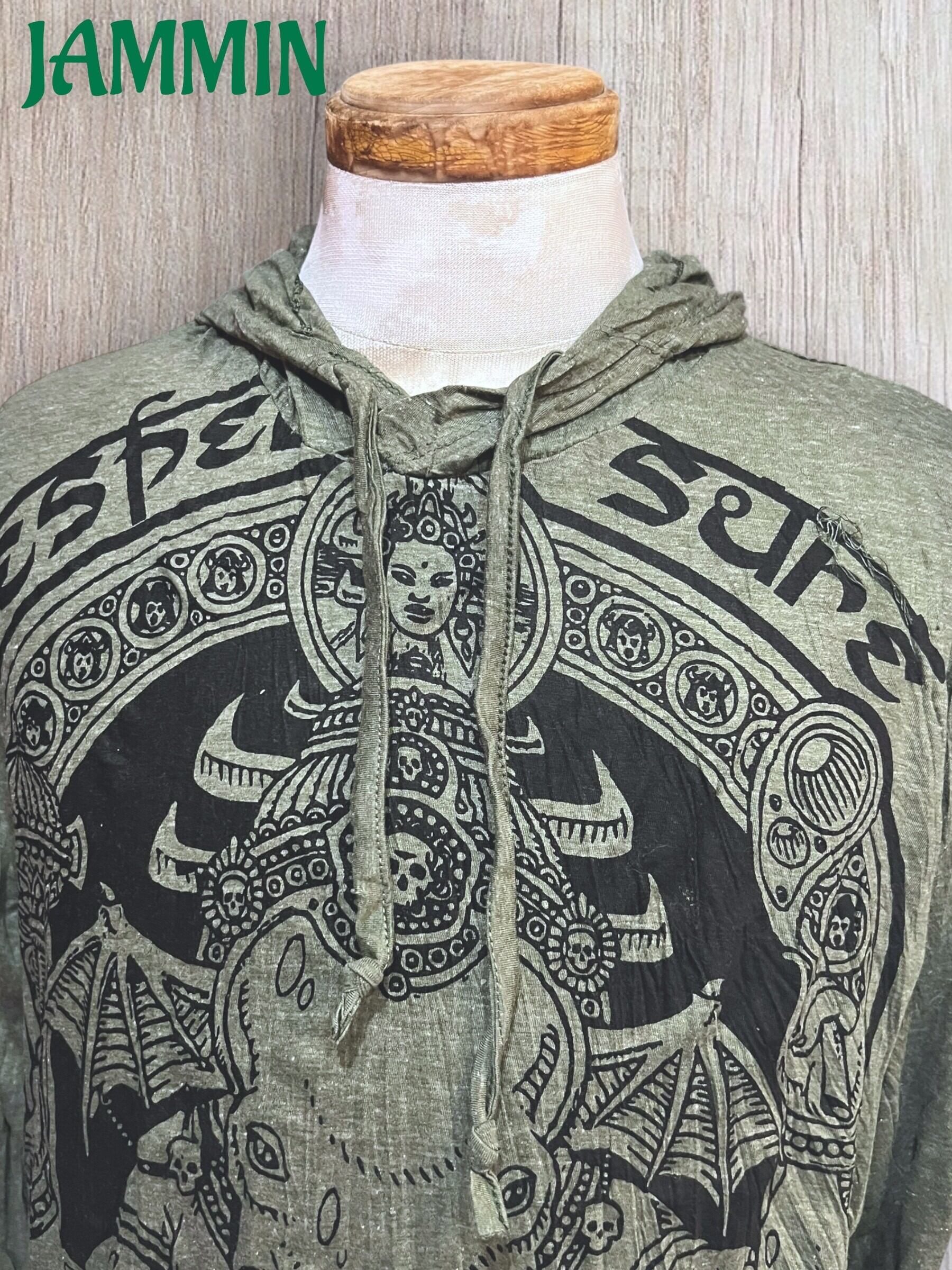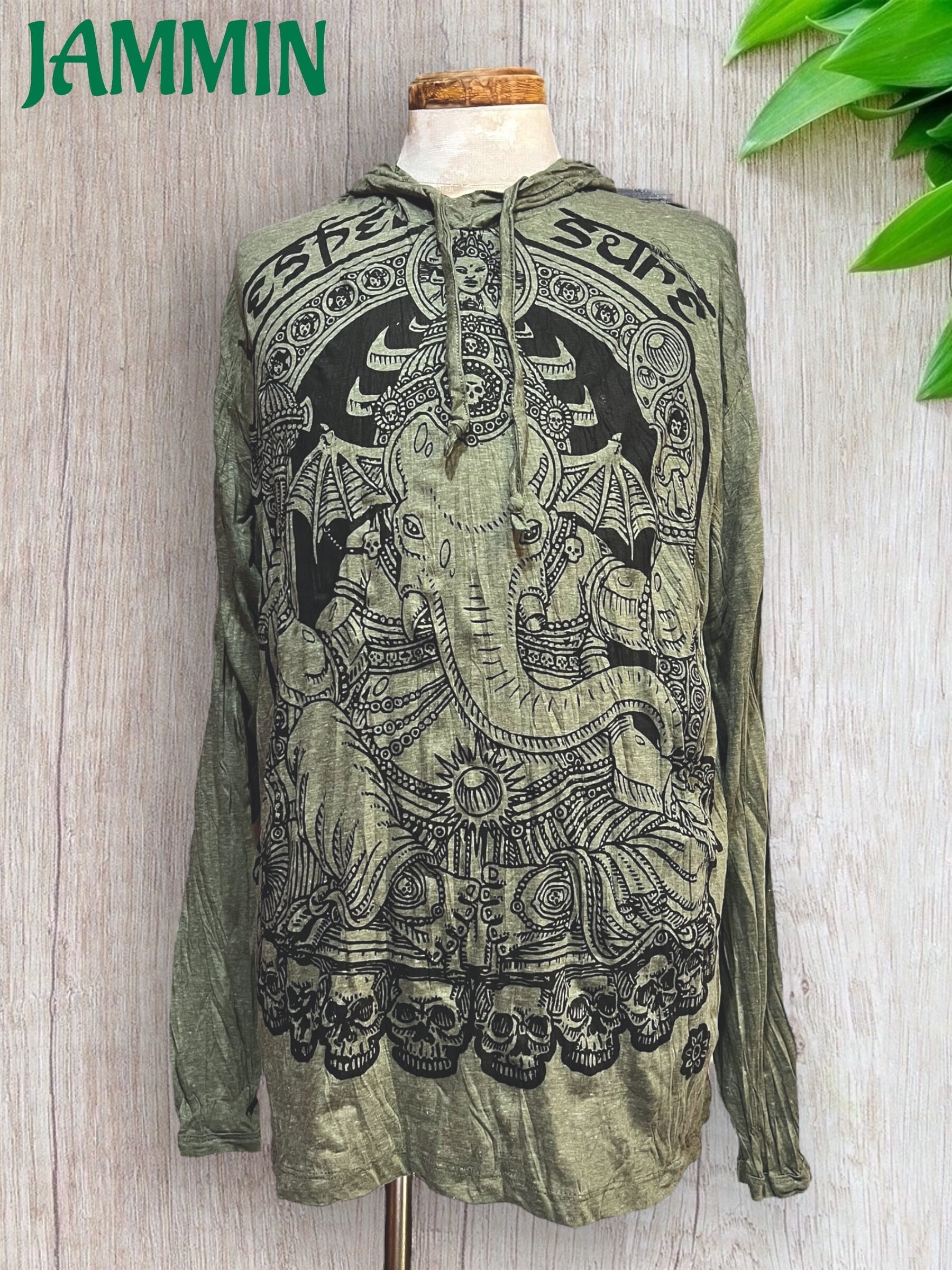 アジアン/エスニック/サイケ/ヒッピー/個性派/ロンT/長袖/Tシャツ/ロングスリーブTシャツ/フード付き/長袖/Lサイズ/