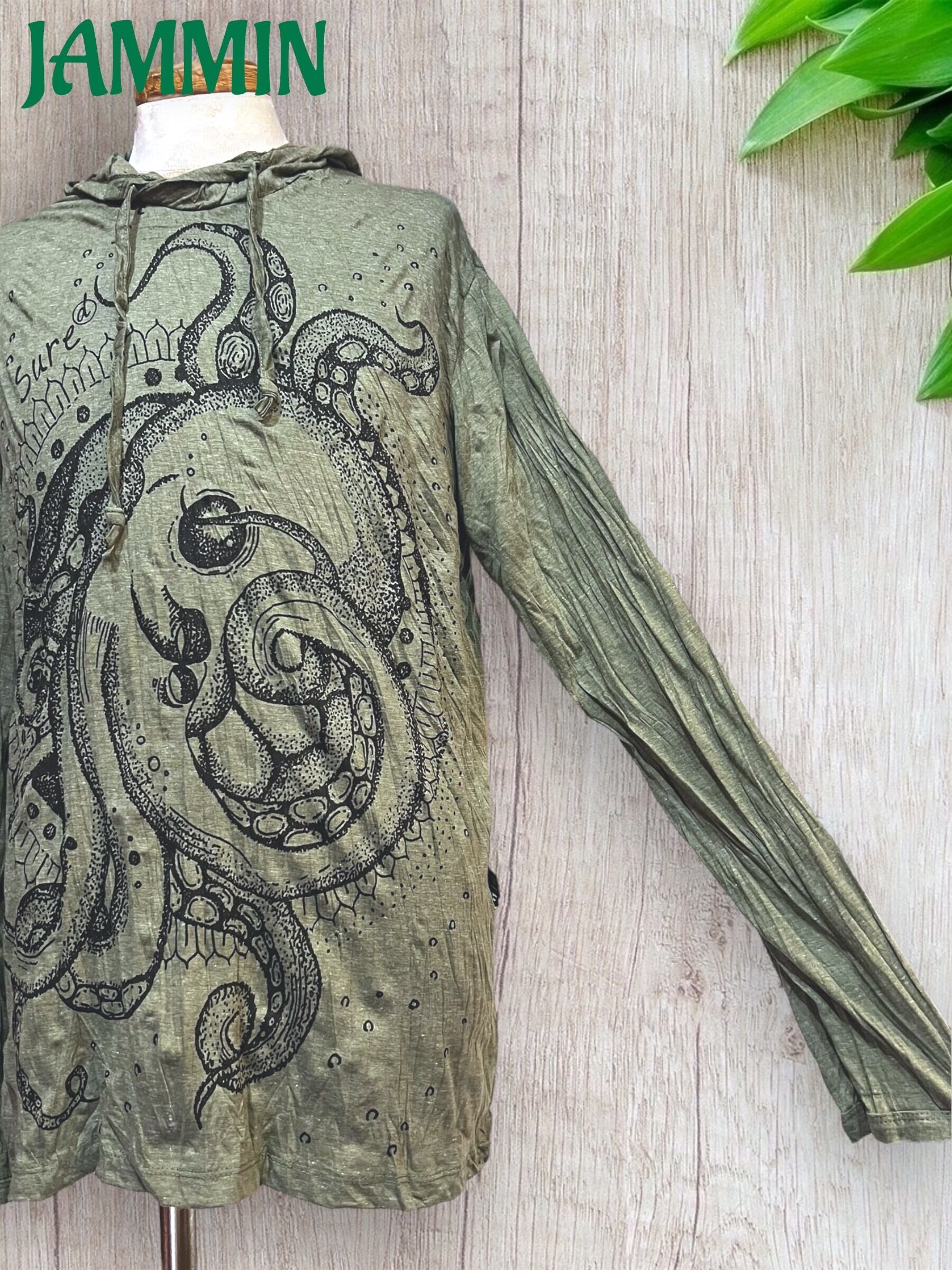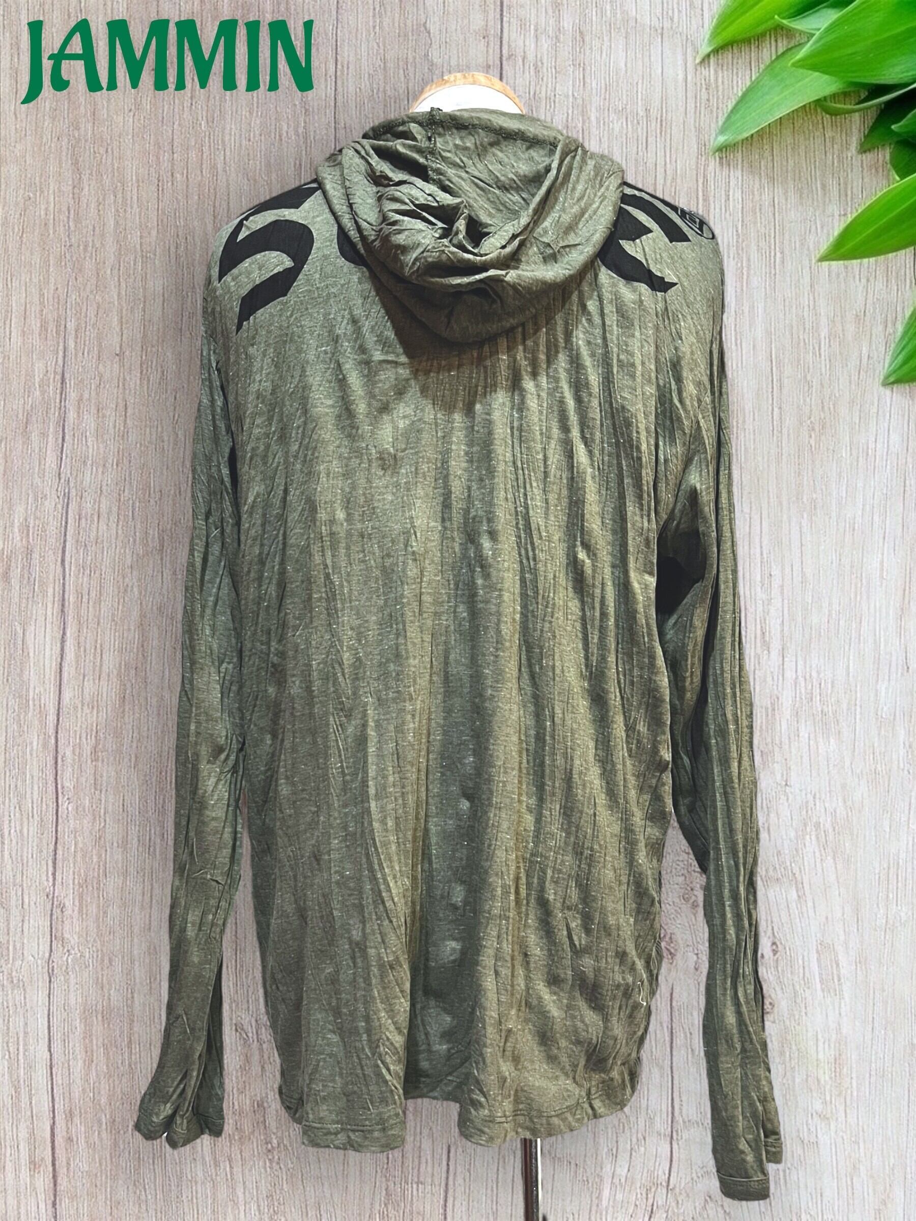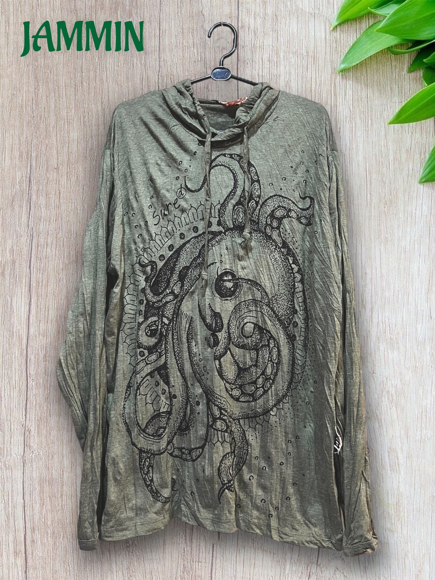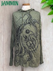 アジアン/エスニック/サイケ/ヒッピー/個性派/ロンT/長袖/Tシャツ/ロングスリーブTシャツ/フード付き/長袖/Lサイズ/