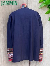 前立て部分とポケット、袖口にアジアンな織り生地付きの羽織りです。