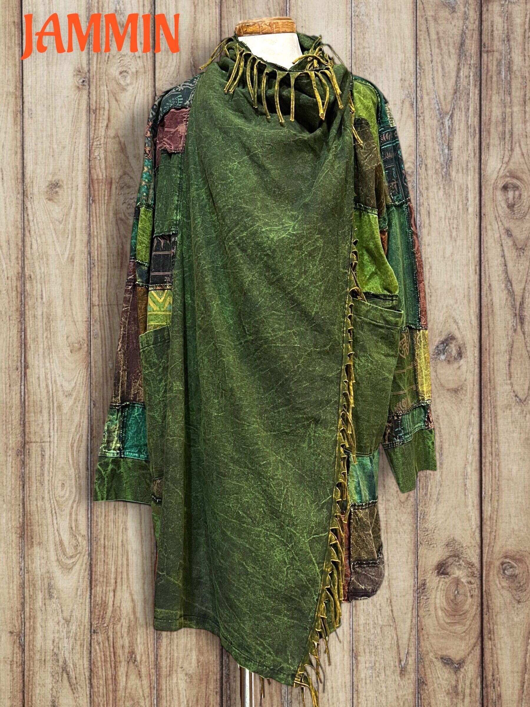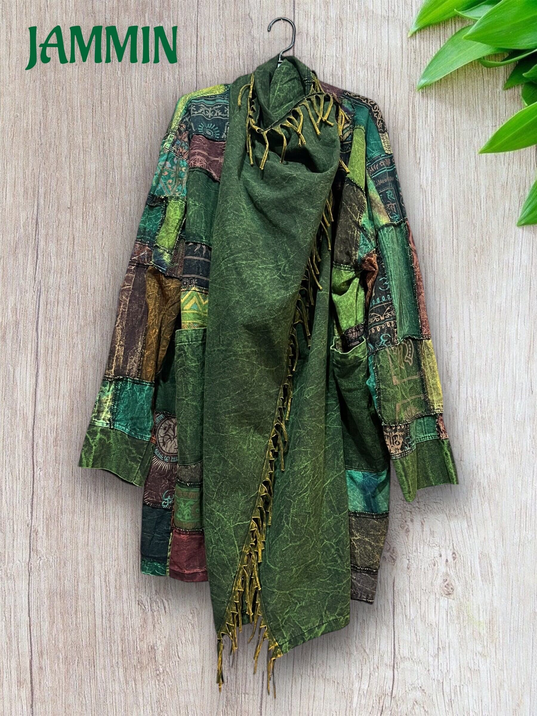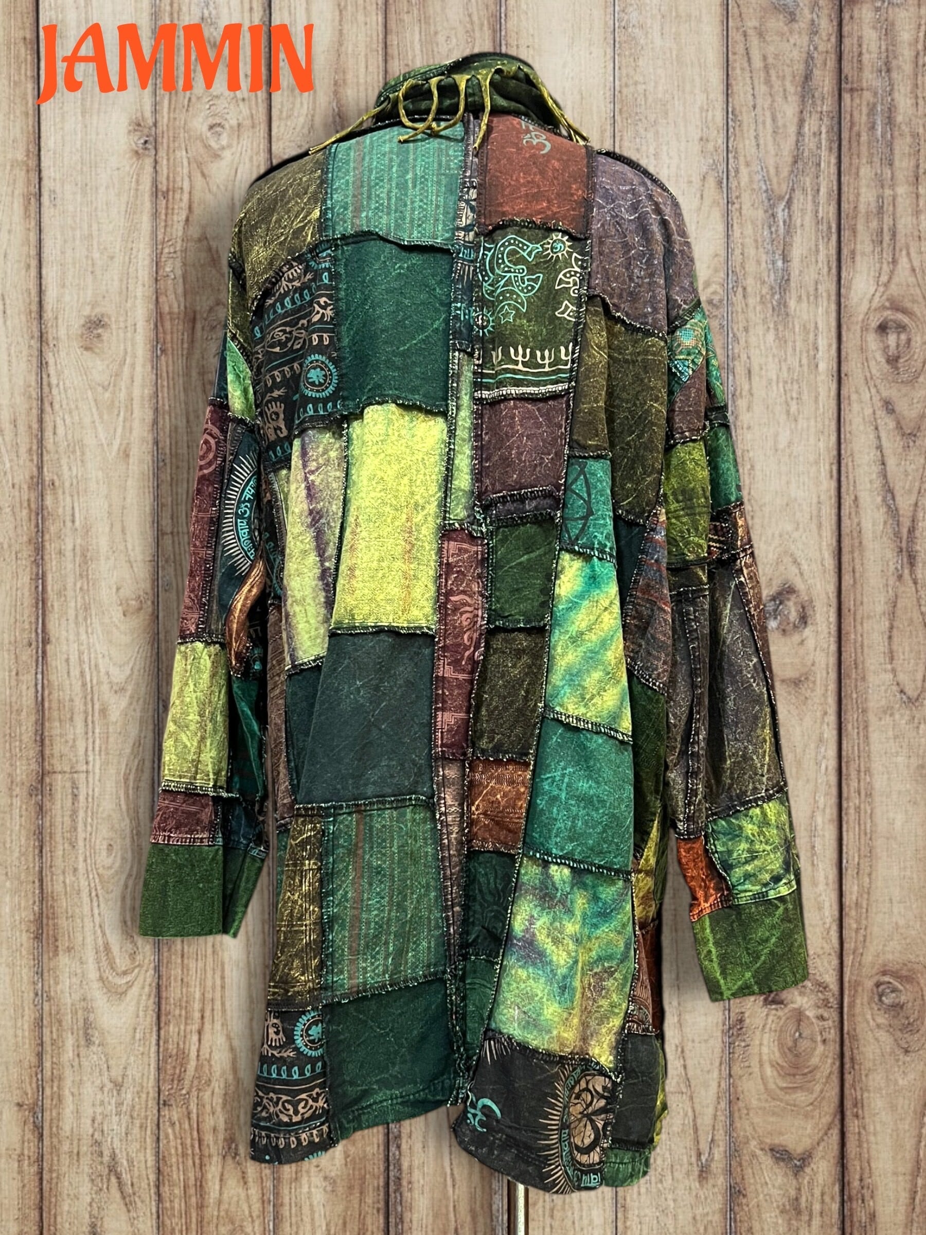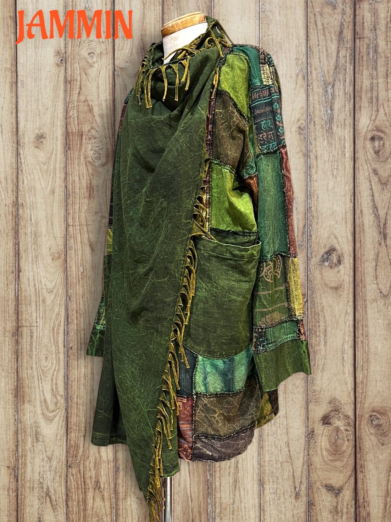 ゆったりざっくりしたデザインのパッチワーク旅人風ジャケットです。
