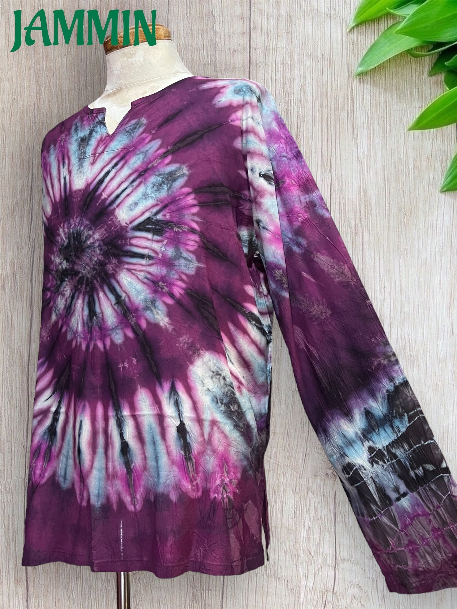 アジアン/エスニック/ヒッピー/サイケ/クルタ/男女兼用/長袖/大きいサイズ/ゆったり/タイダイ/フェス/トライバル/サイケデリック/個性派ファッション/アジアンファッション/メンズエスニック/ヒッピーファッション/フェスファッション/民族/