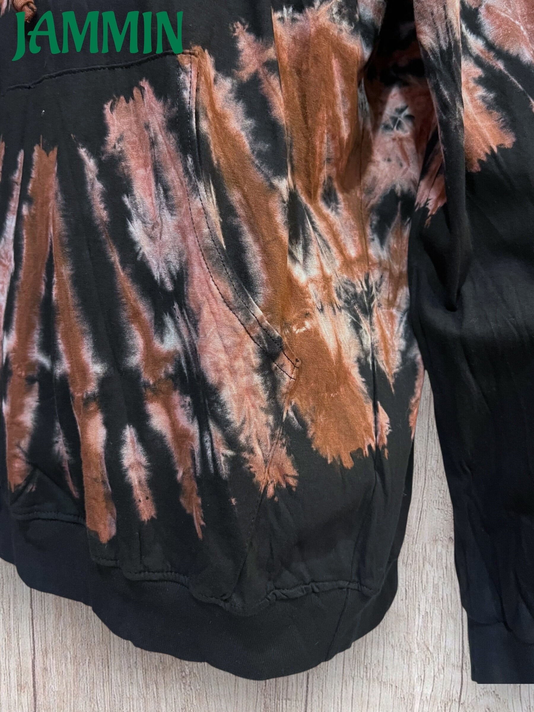 黒×ブラウンベースのタイダイパーカーです。