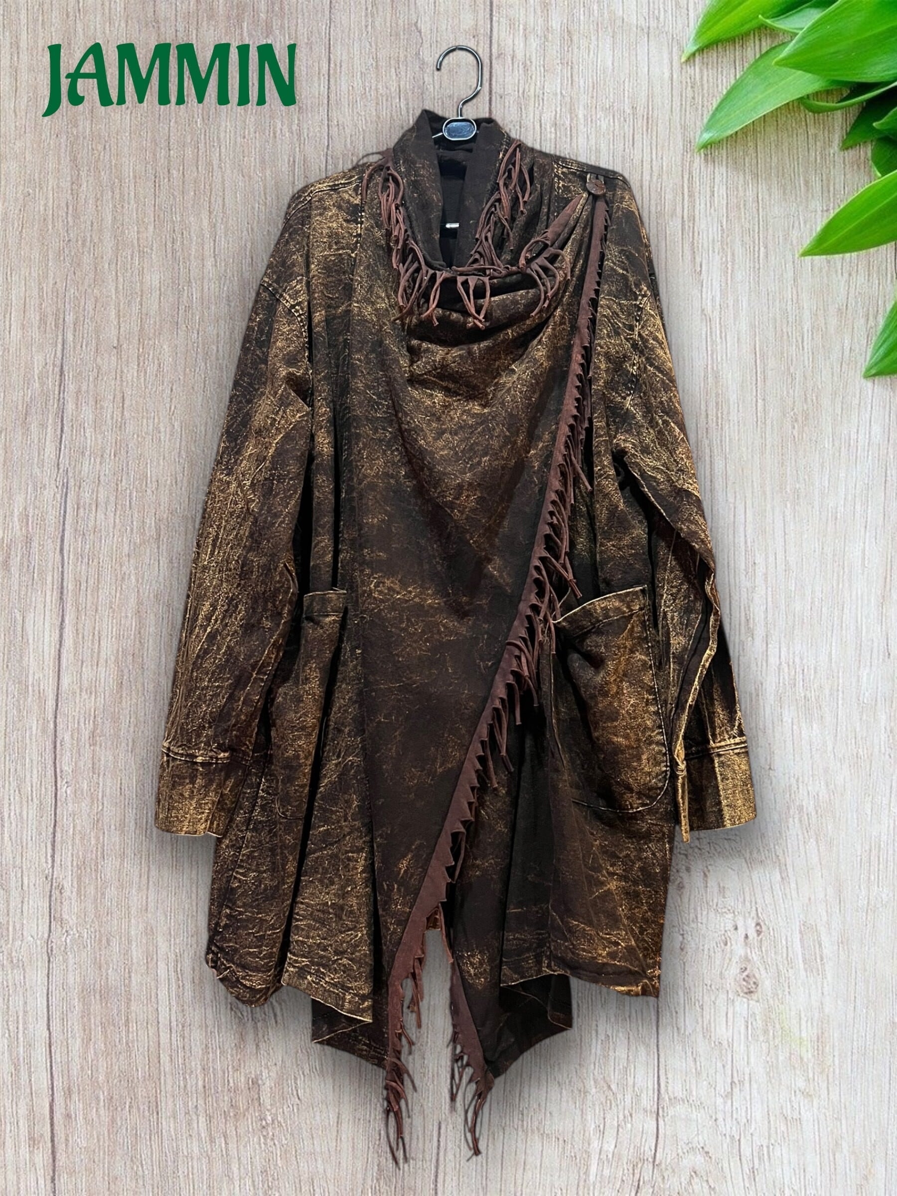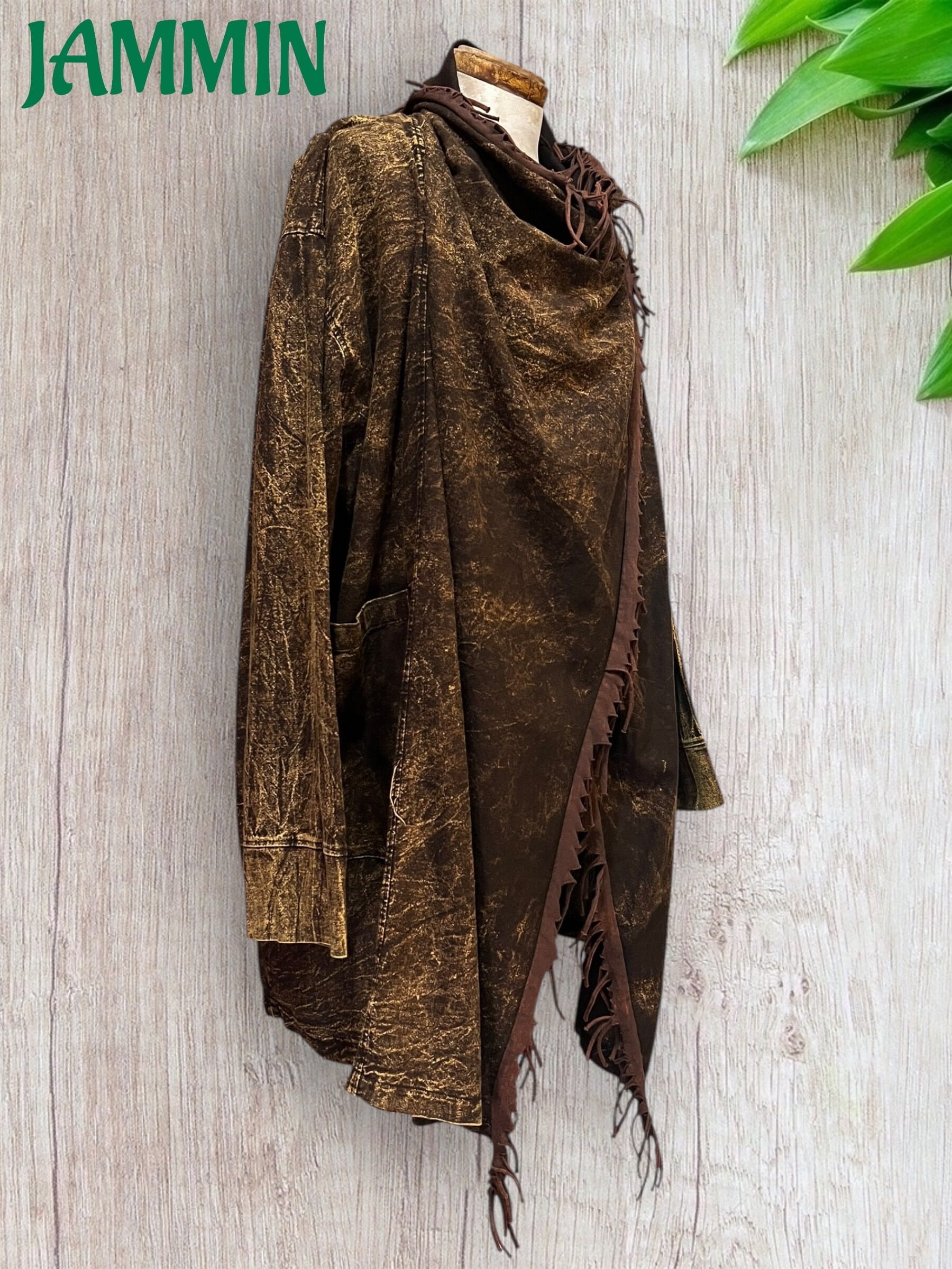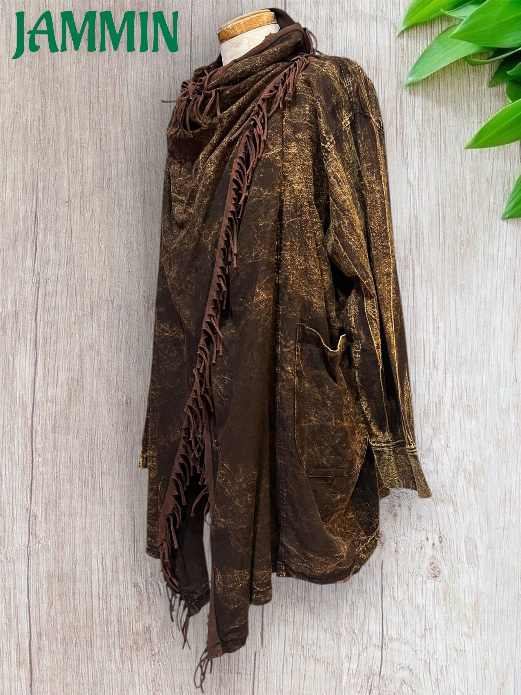 フリンジ付き旅人風ジャケット 茶色
