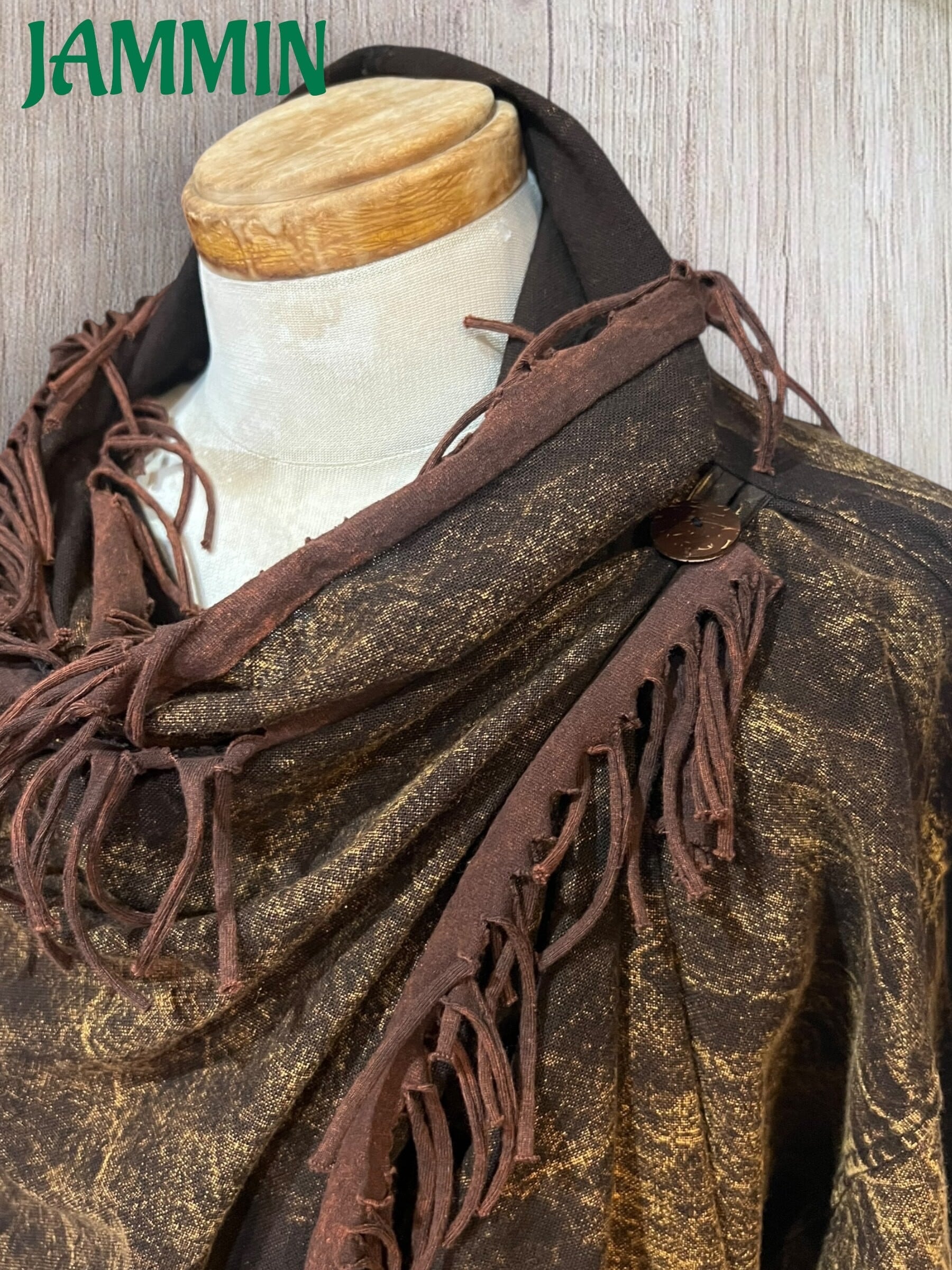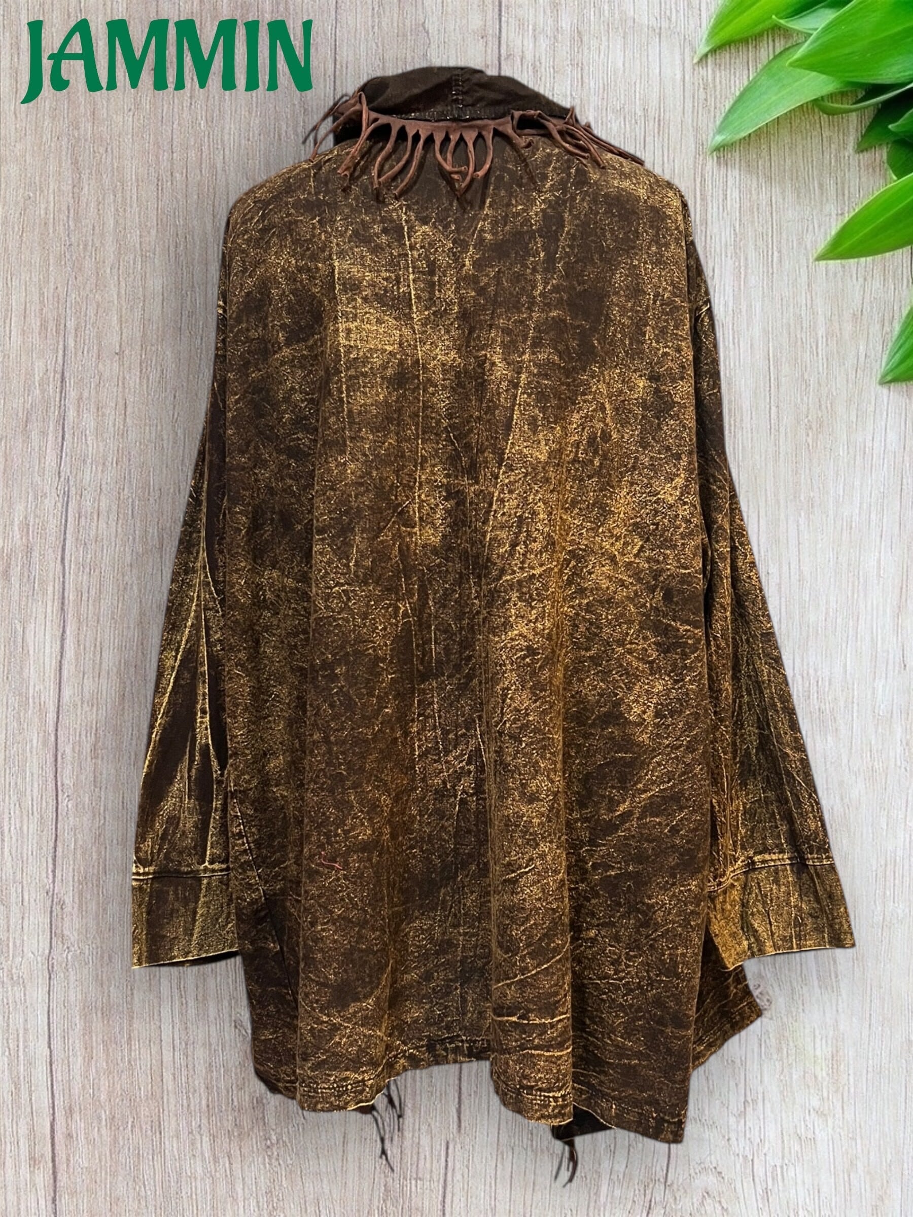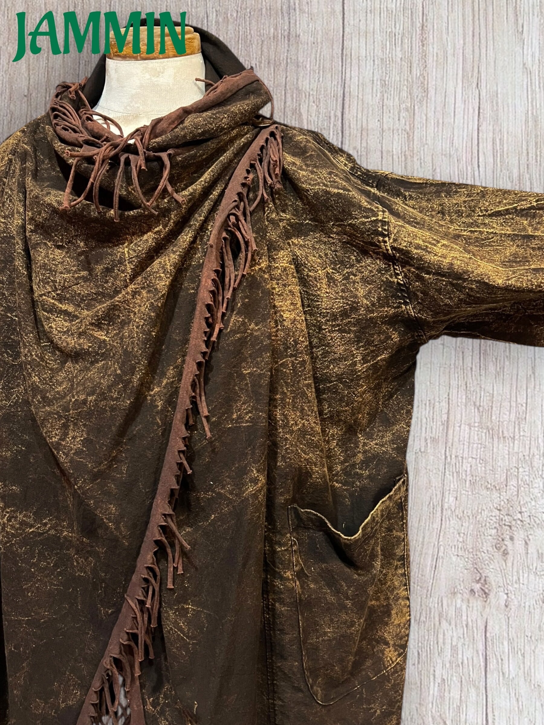 フリンジ付き旅人風ジャケット 茶色