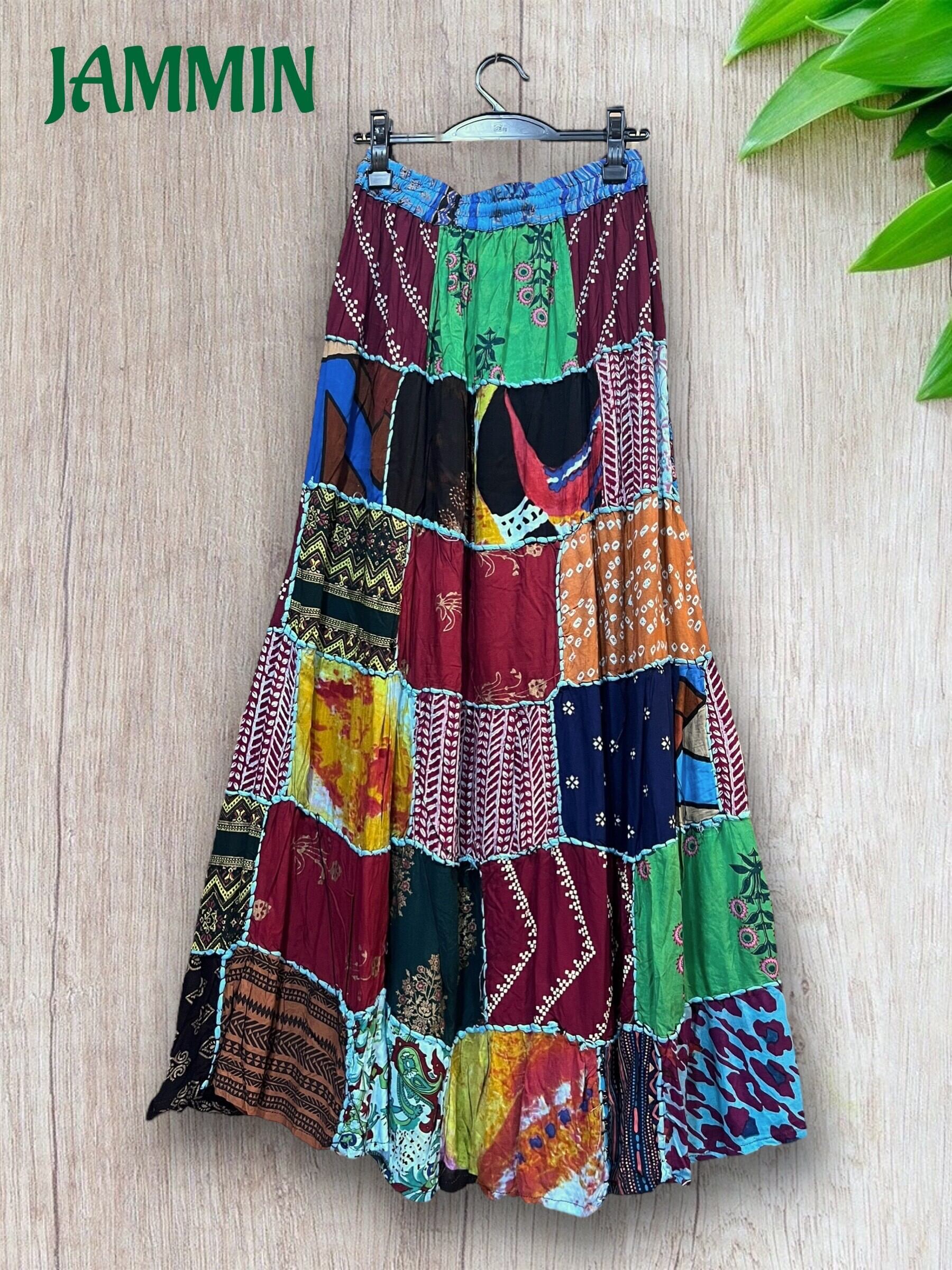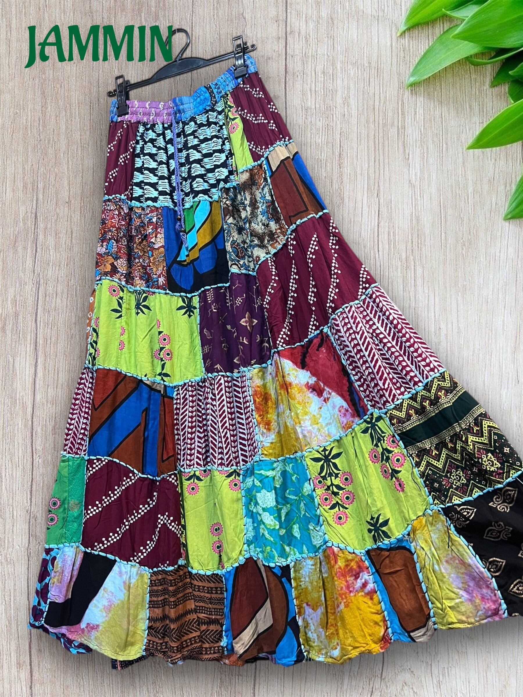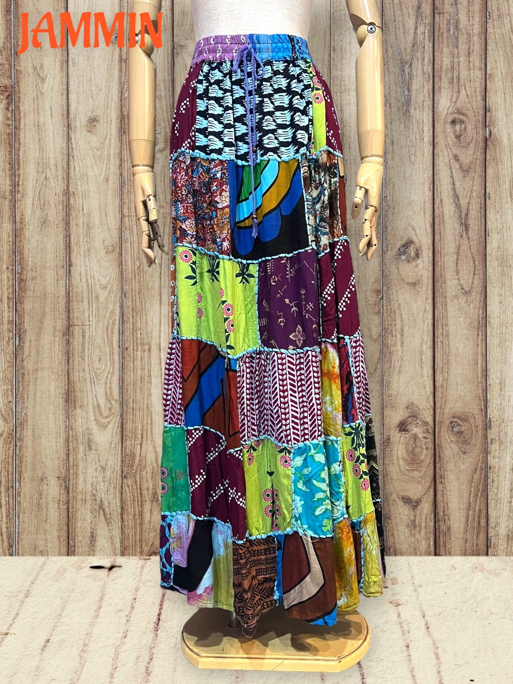 ロングスカート/フレアスカート/アジアンスカート/スカート/マキシ丈スカート/アジアン/エスニック/ヒッピー/サイケ/衣装/ゆったり/柄スカート/リゾート/フリーサイズ/大きいサイズ/パッチワークスカート