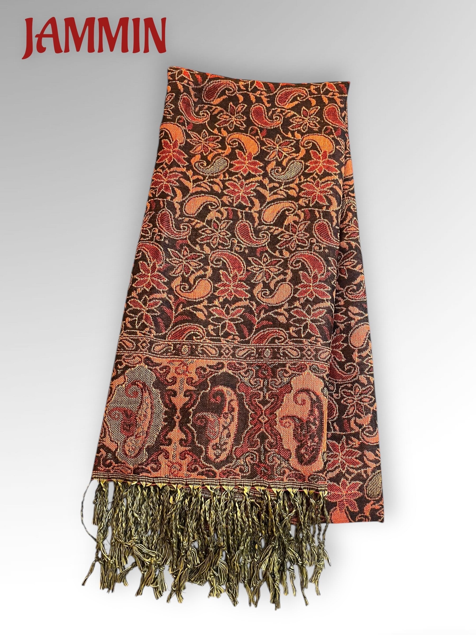 アジアンなペーズリー柄の織り柄ストールです。