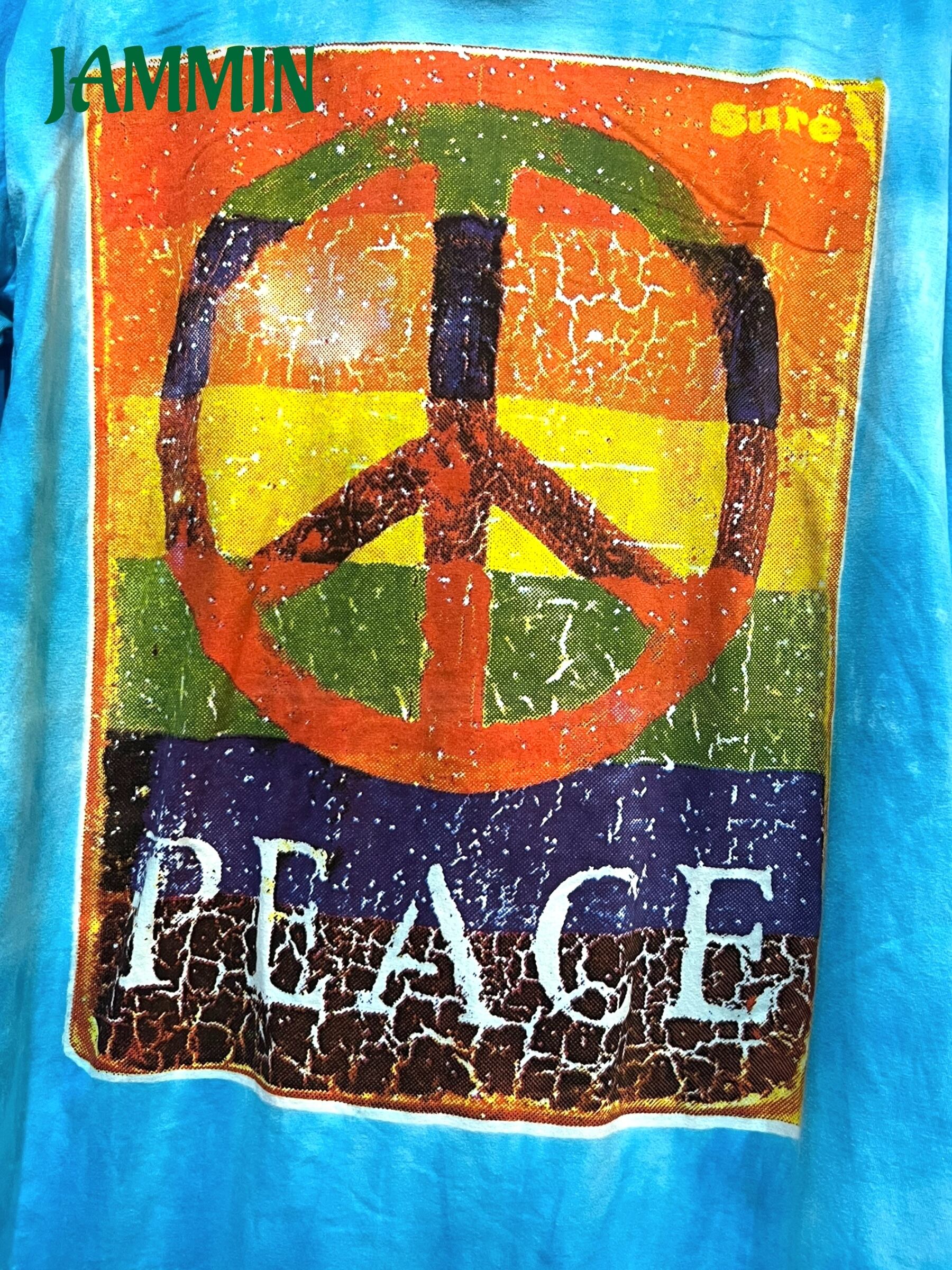 タイダイピースマークロンT アジアン ヒッピー 水色 サイケ 個性派