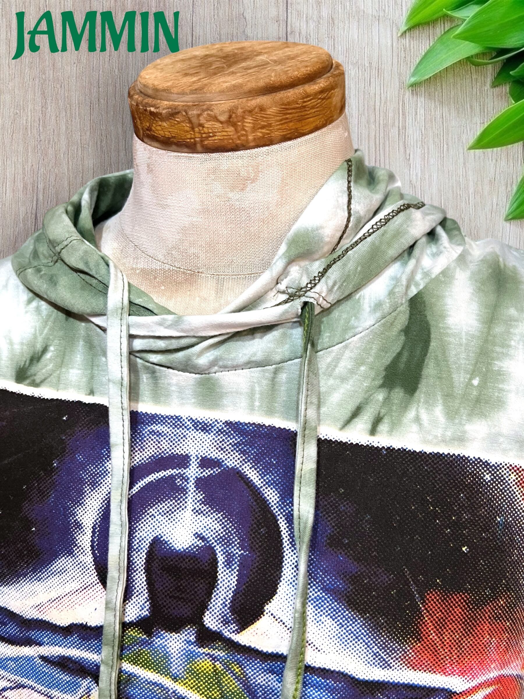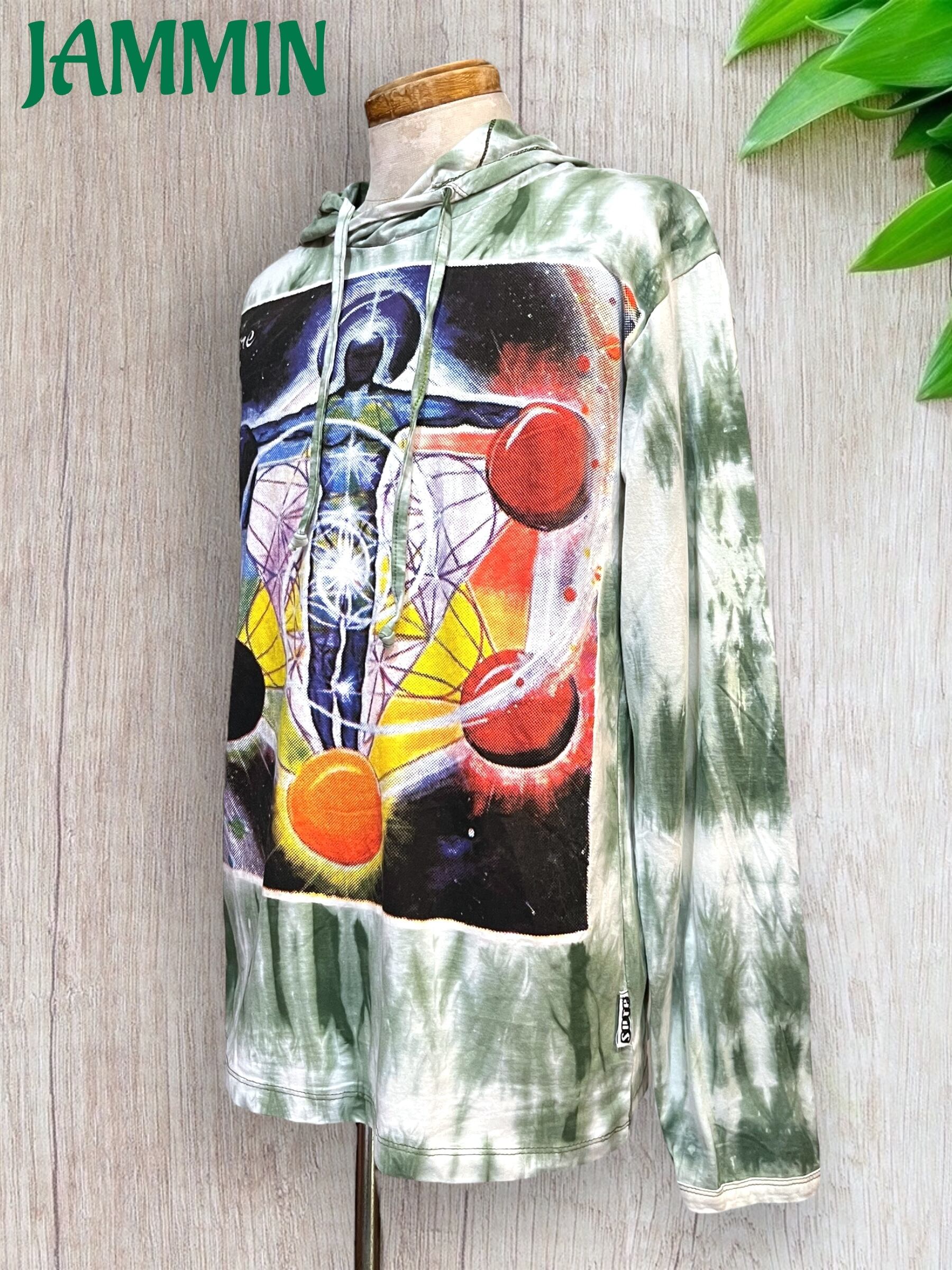 アジアン/エスニック/サイケ/ヒッピー/個性派/ロンT/長袖/Tシャツ/ロングスリーブTシャツ/フード付き/長袖/Mサイズ/フラワーオブライフ/神聖幾何学