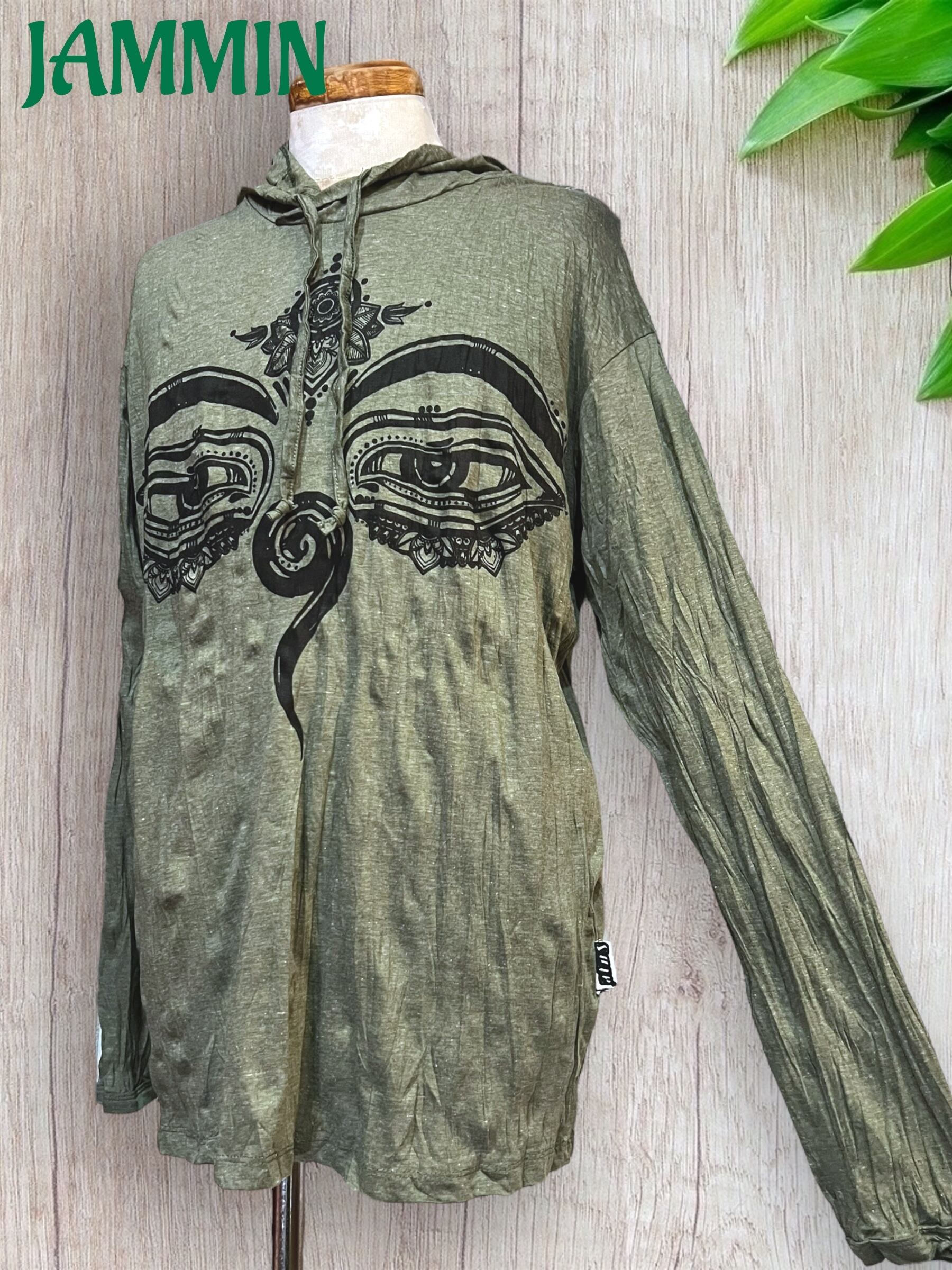 アジアン/エスニック/サイケ/ヒッピー/個性派/ロンT/長袖/Tシャツ/ロングスリーブTシャツ/フード付き/ブッダ/仏陀/仏陀眼/ブッダアイ/魔除け/
