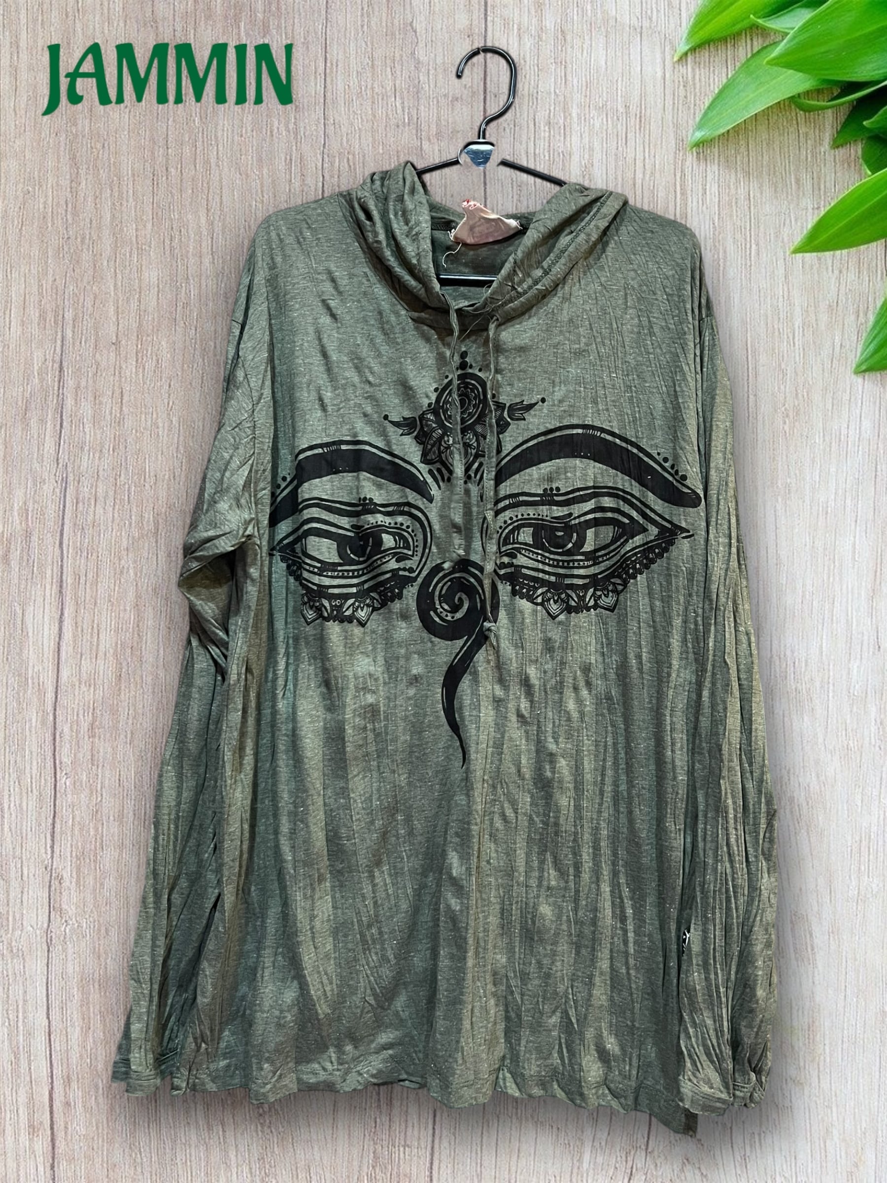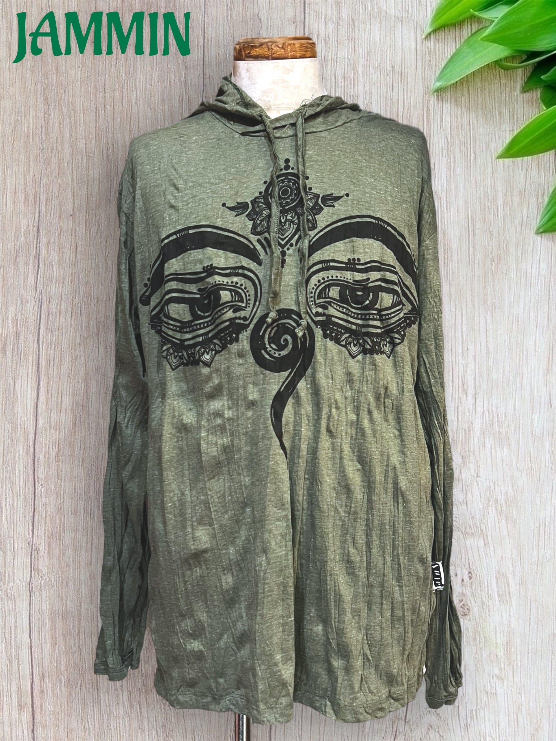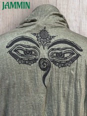 アジアンなブッダアイプリント入りフード付きロンTです。