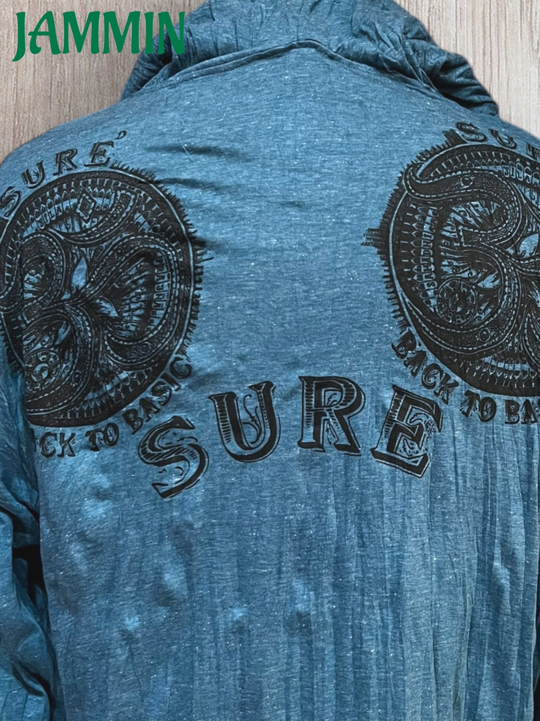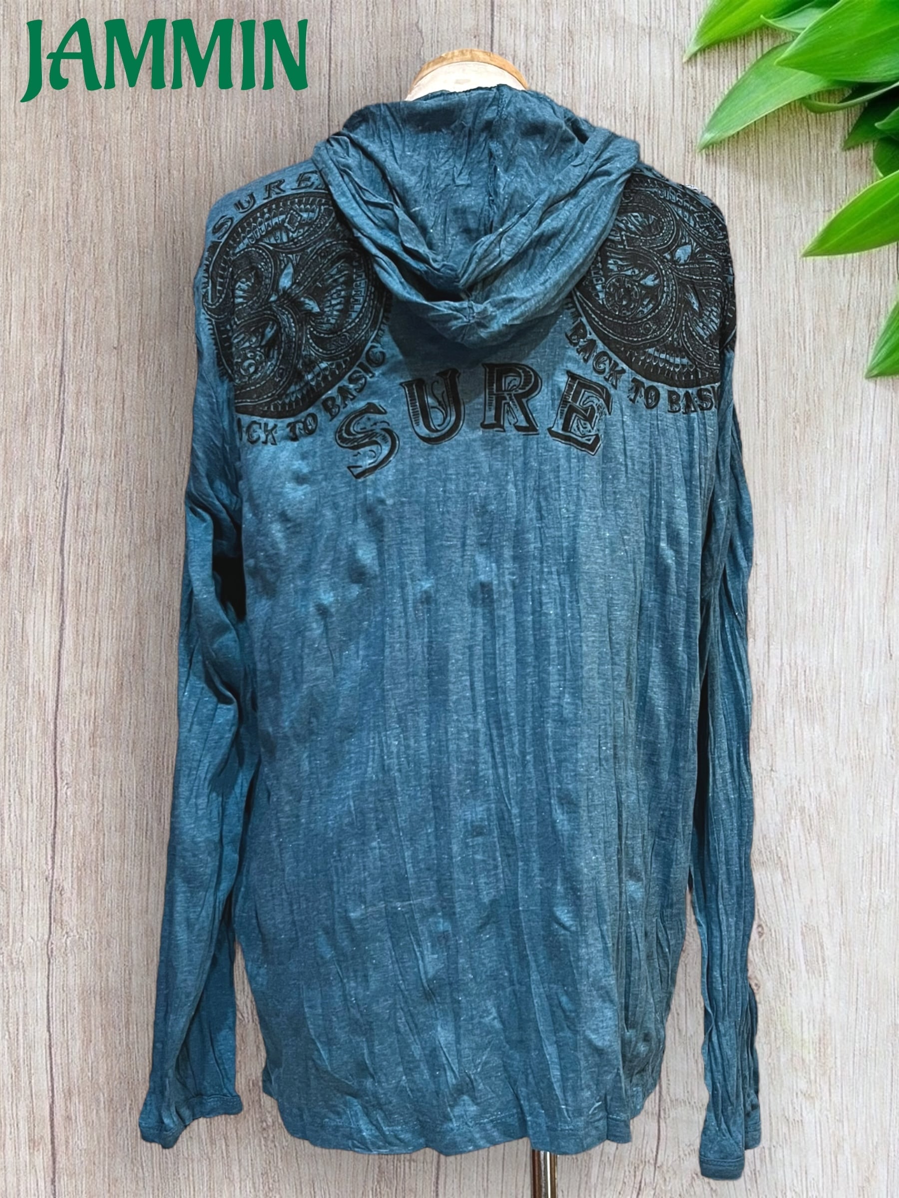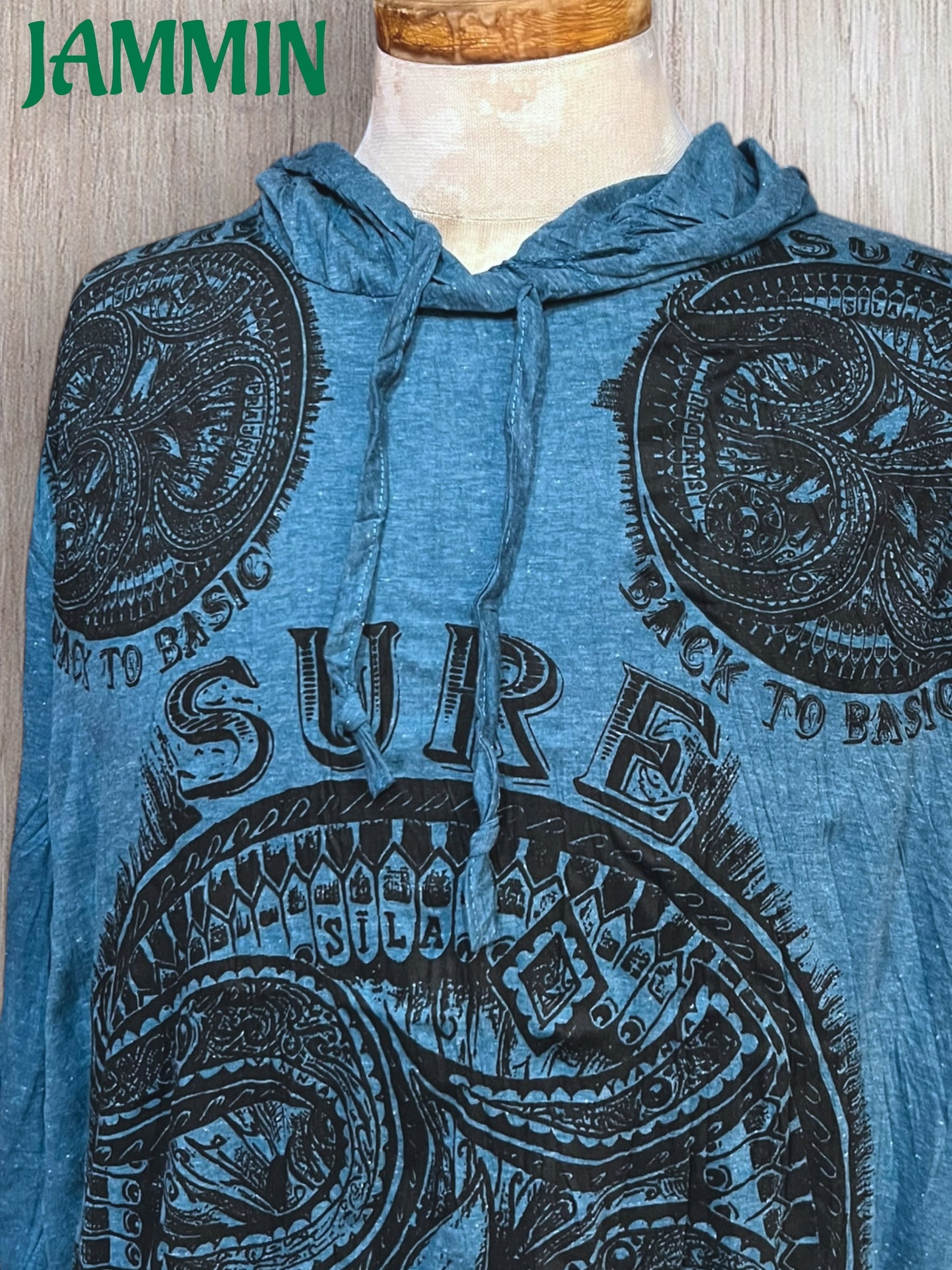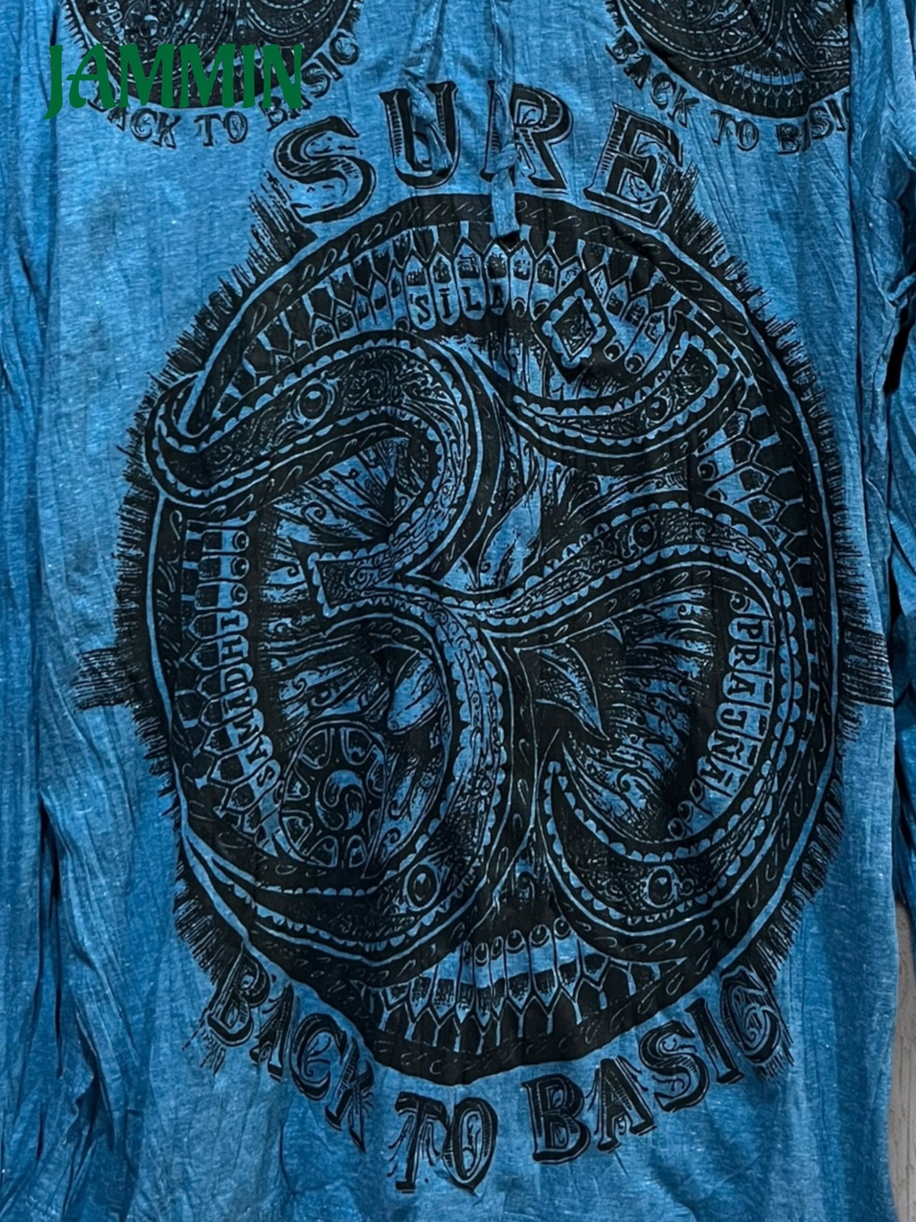 アジアン/エスニック/サイケ/ヒッピー/個性派/ロンT/長袖/Tシャツ/ロングスリーブTシャツ/フード付き/長袖/Lサイズ/オーム/オム/OM/魔除け/お守り/宇宙/ヨガ/