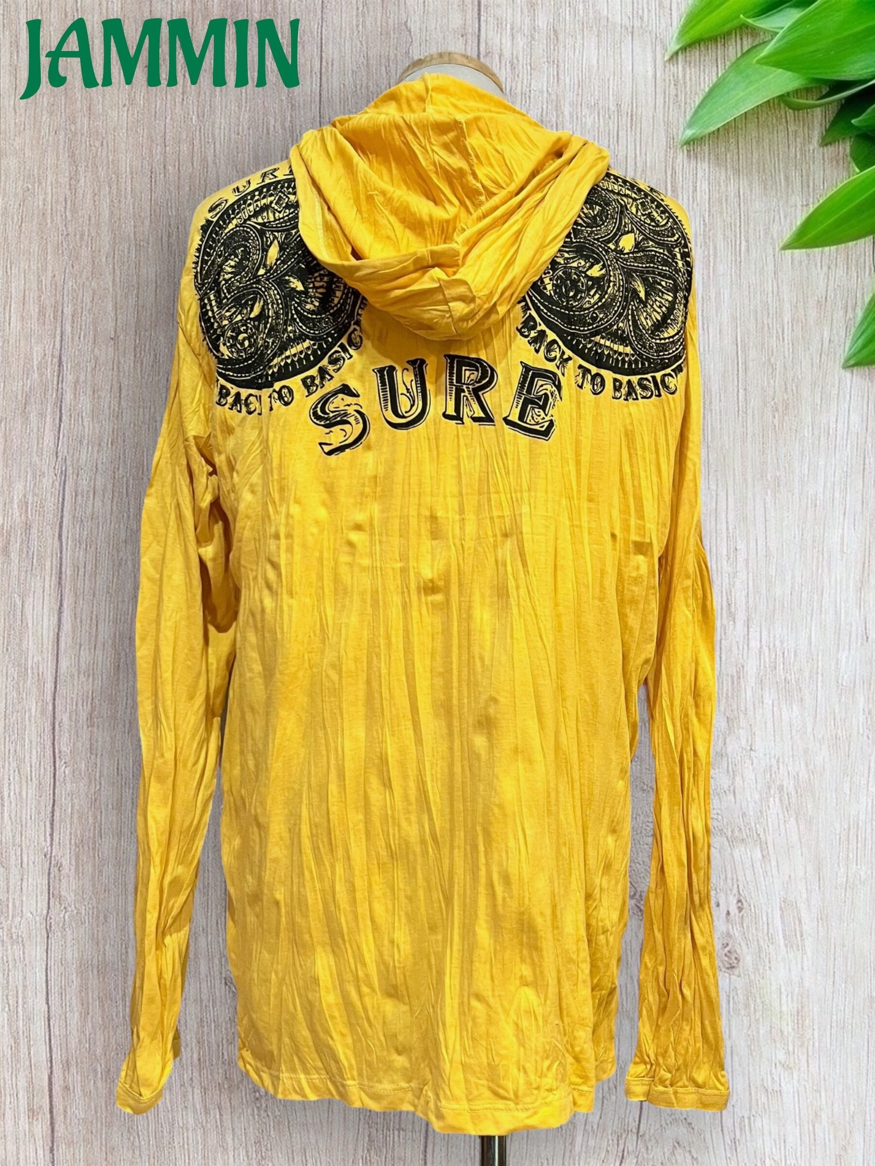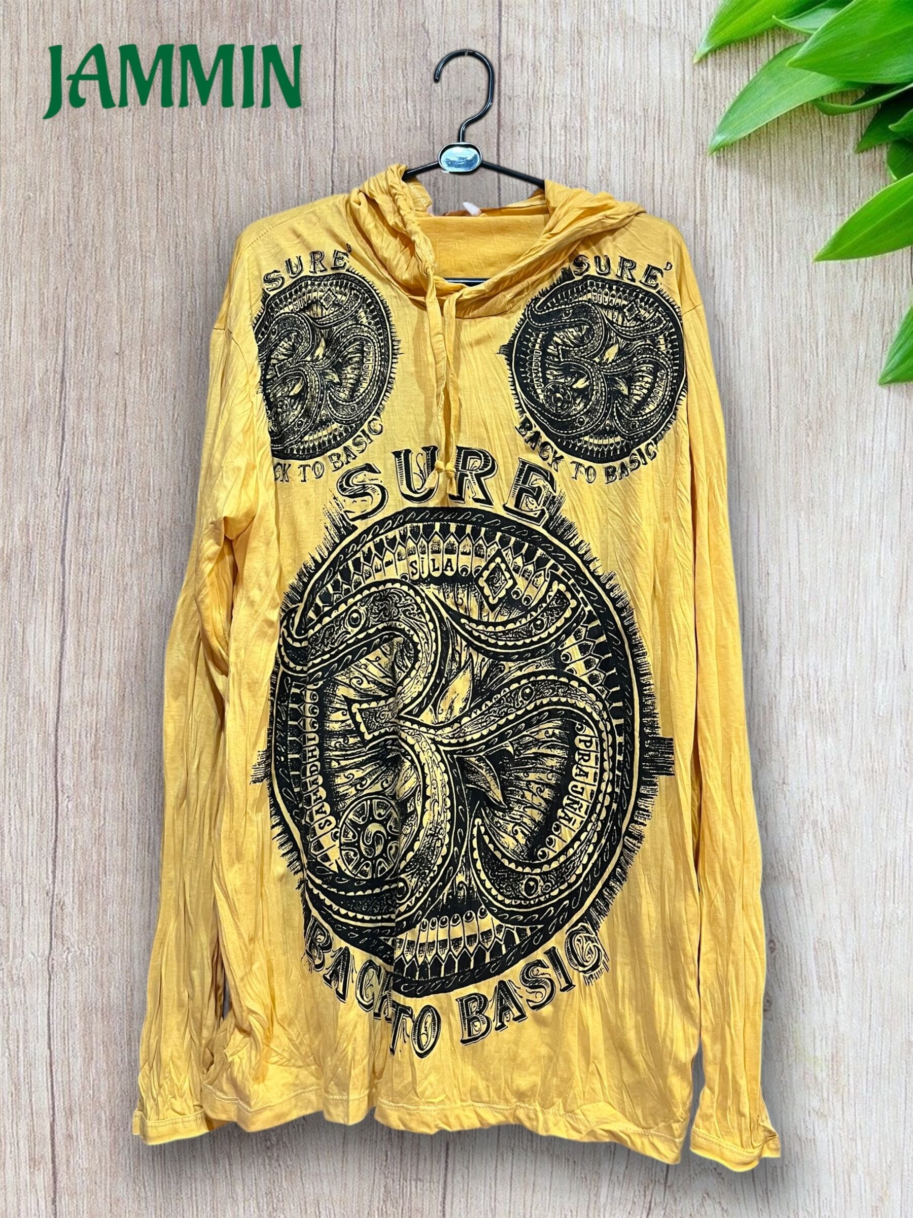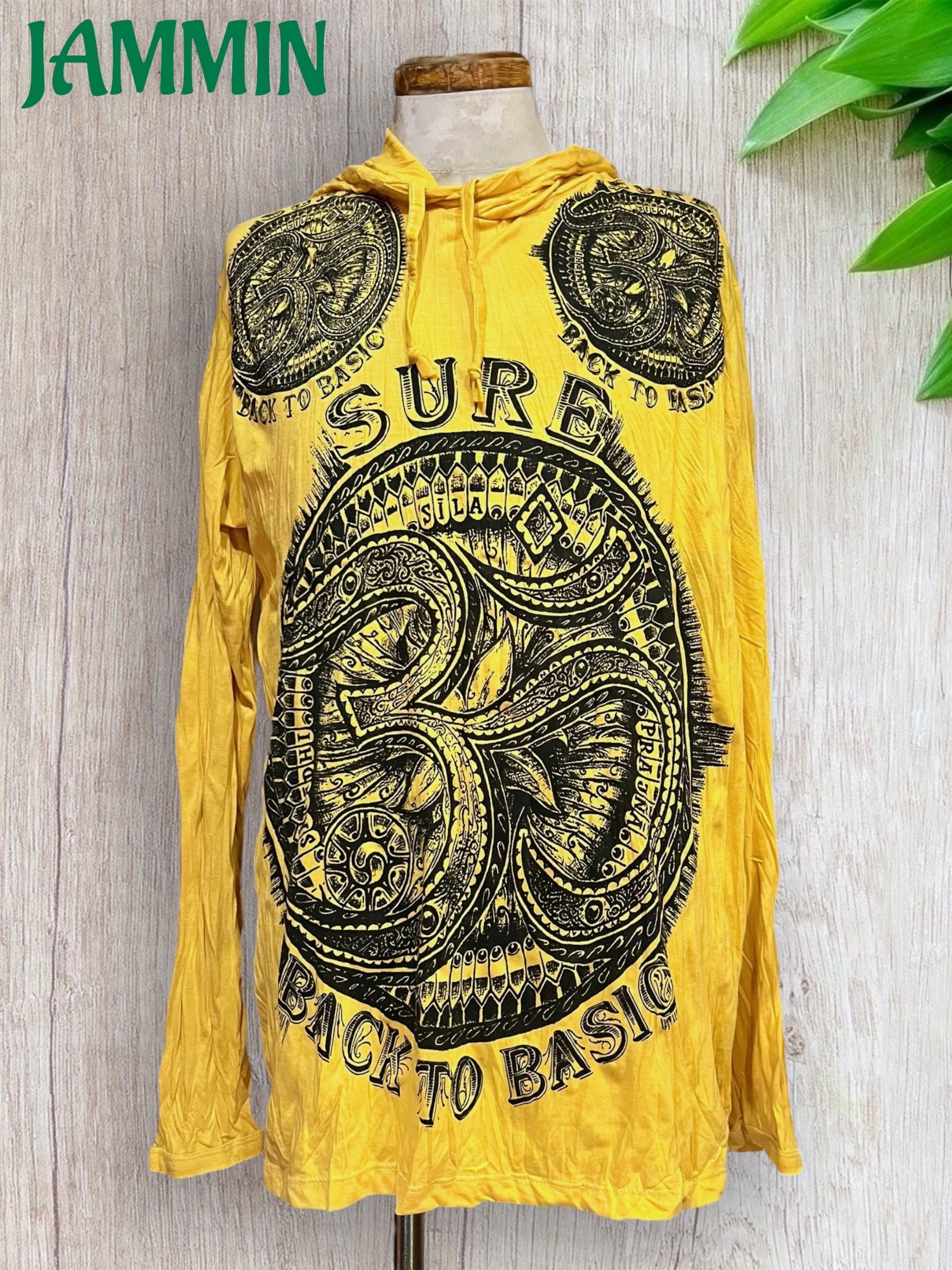 アジアン/エスニック/サイケ/ヒッピー/個性派/ロンT/長袖/Tシャツ/ロングスリーブTシャツ/フード付き/長袖/Lサイズ/オーム/オム/OM/魔除け/お守り/宇宙/ヨガ/