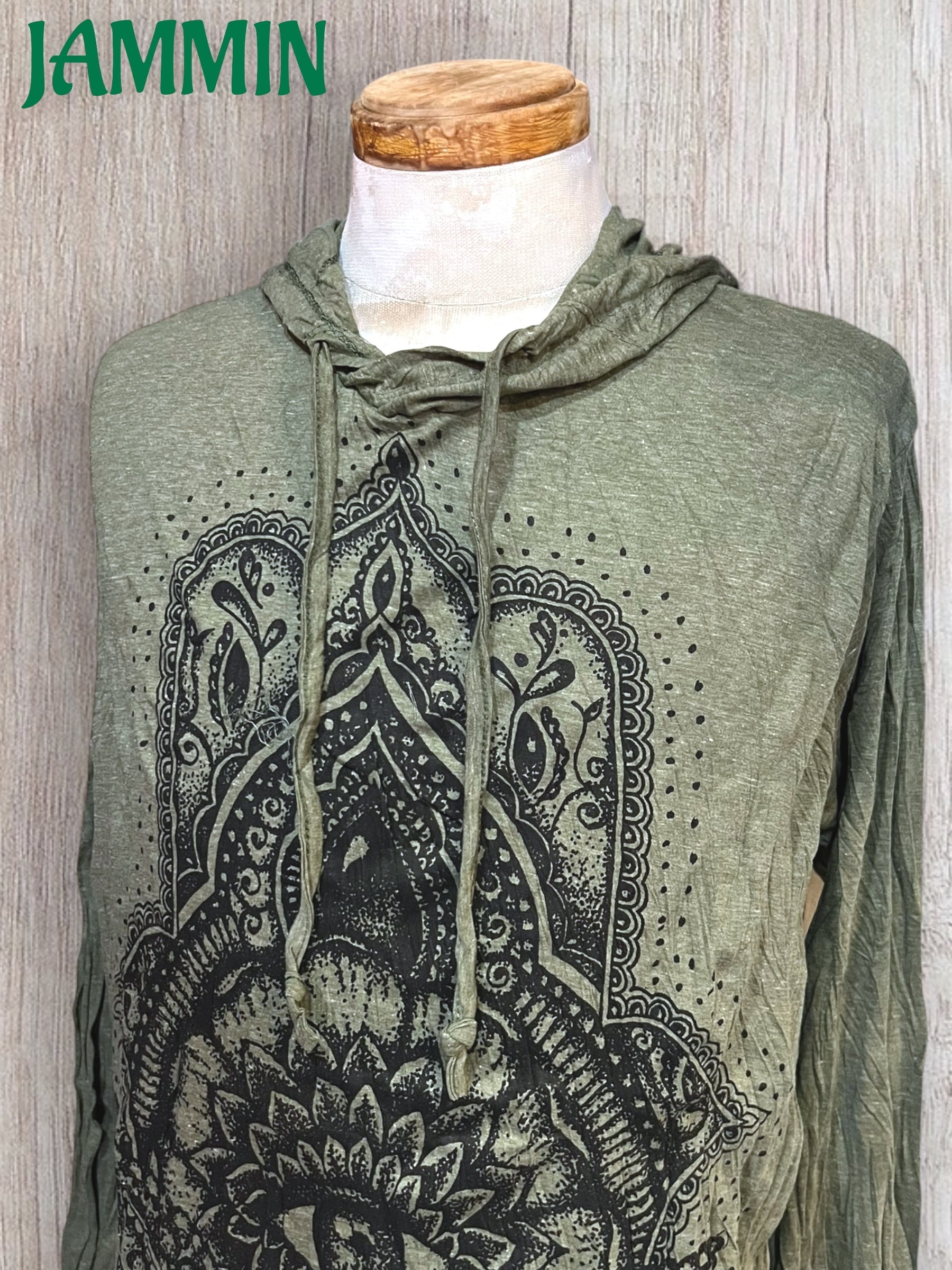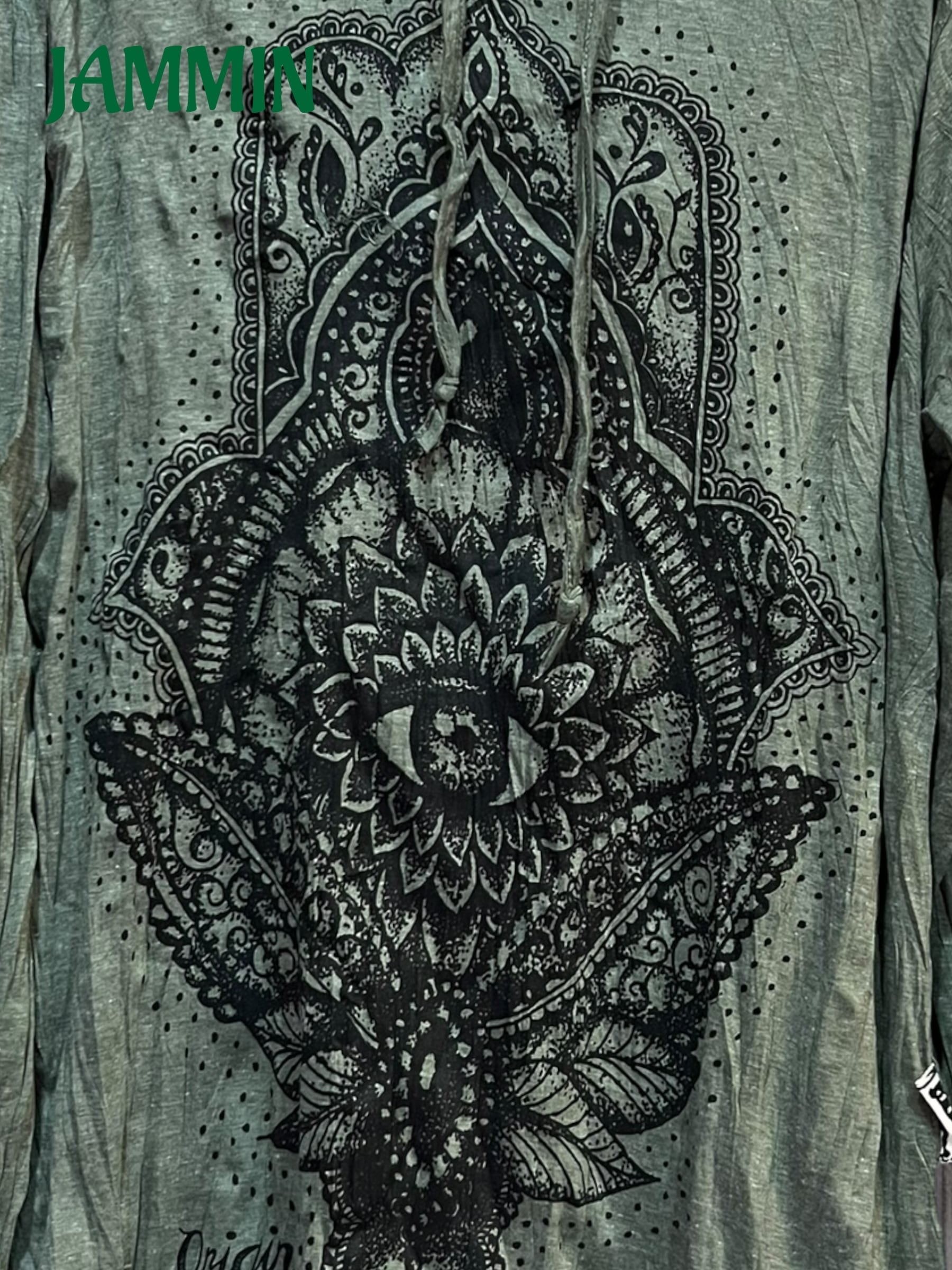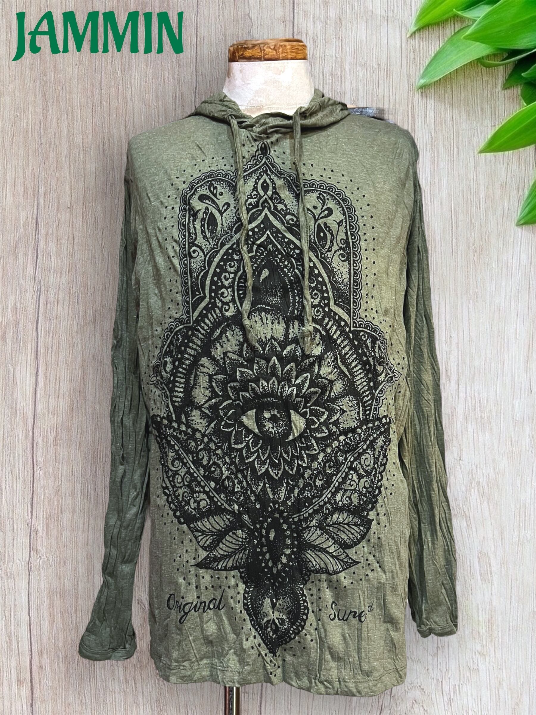 アジアン/エスニック/サイケ/ヒッピー/個性派/ロンT/長袖/Tシャツ/ロングスリーブTシャツ/フード付き/長袖/Lサイズ/魔除け/ファティマ/ファティマの手/ファティマの目/ハムサ