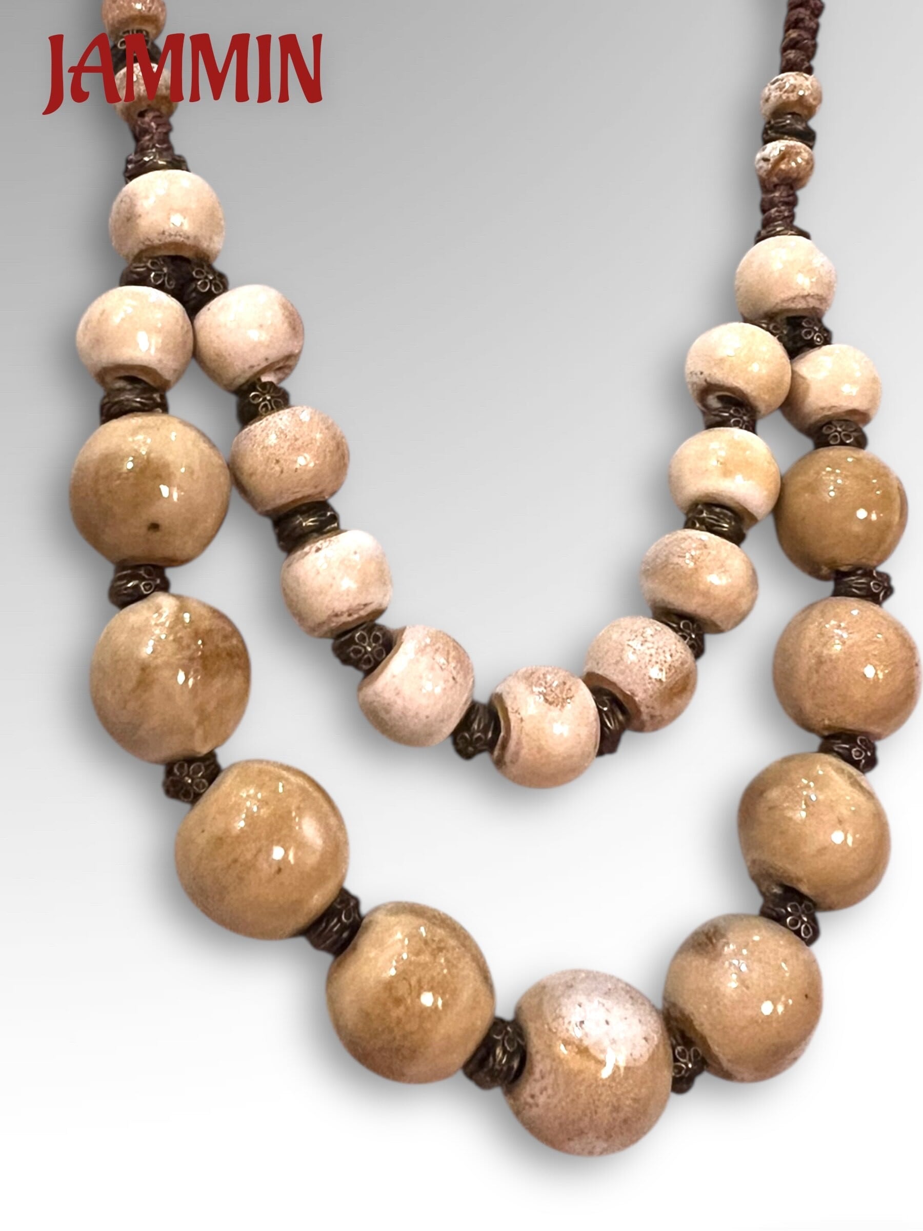 陶器ビーズを使ったアジアンなネックレスです。