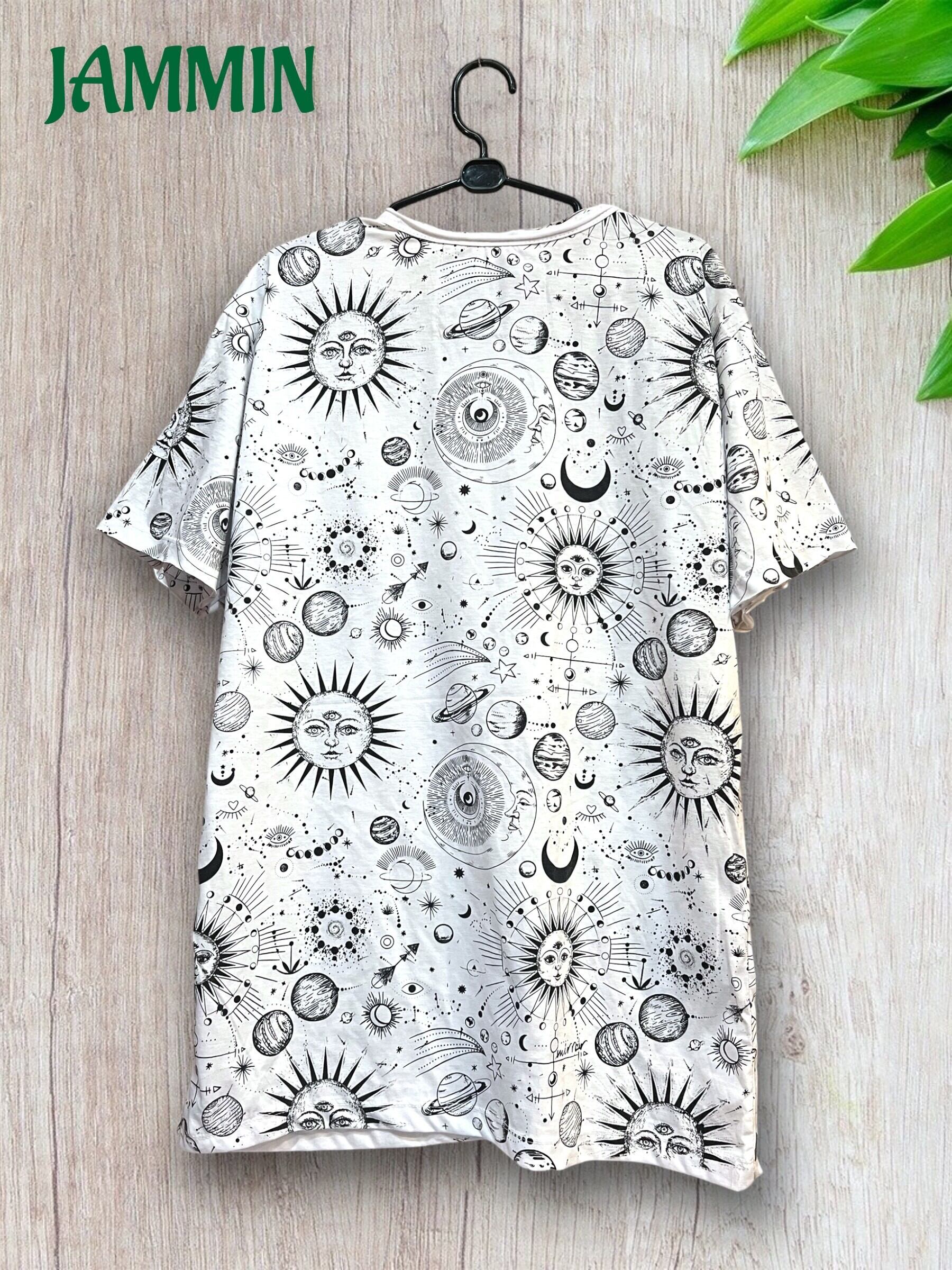 太陽や月、色々な惑星の柄Tシャツです。