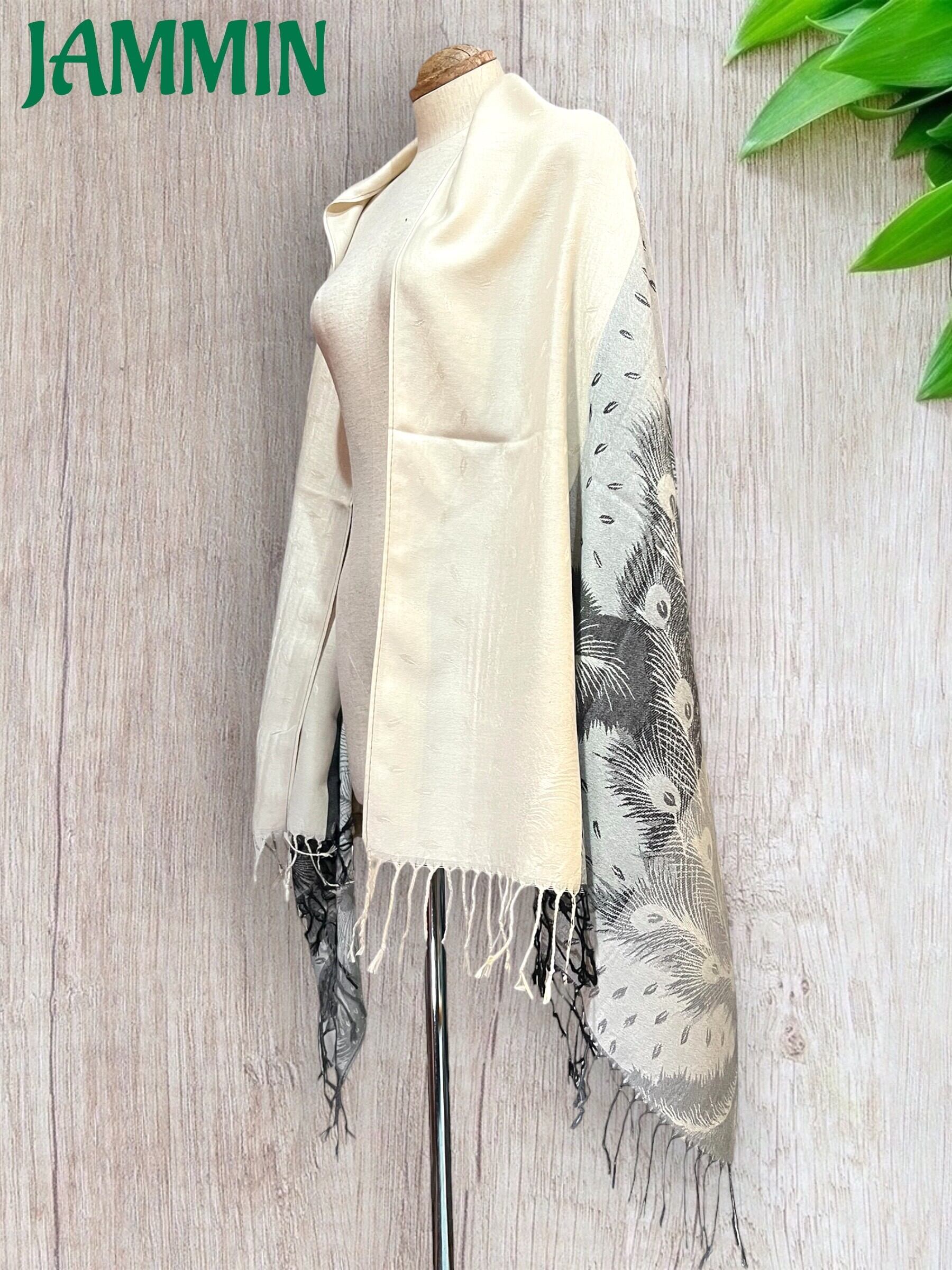 アジアンな孔雀羽根柄の織り柄ストールです。