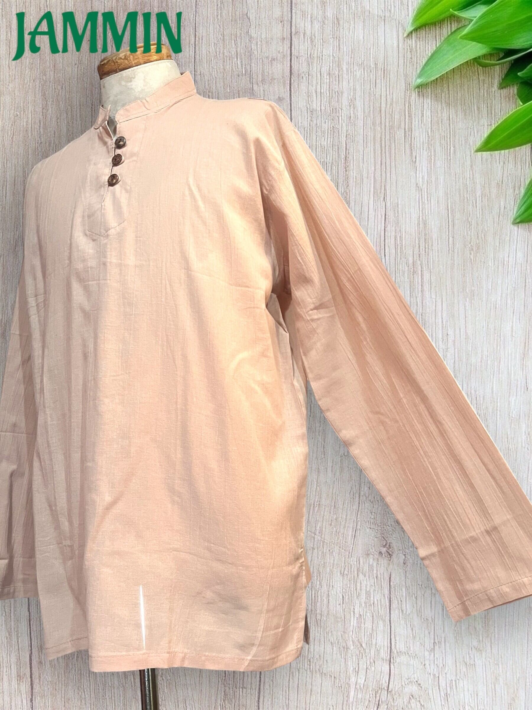 前首元にココナッツボタン付きの長袖クルタです。