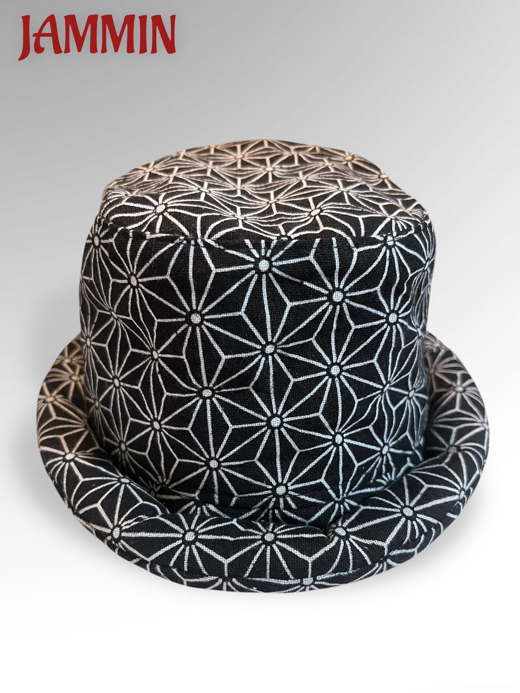 麻柄ハット 黒 麻柄