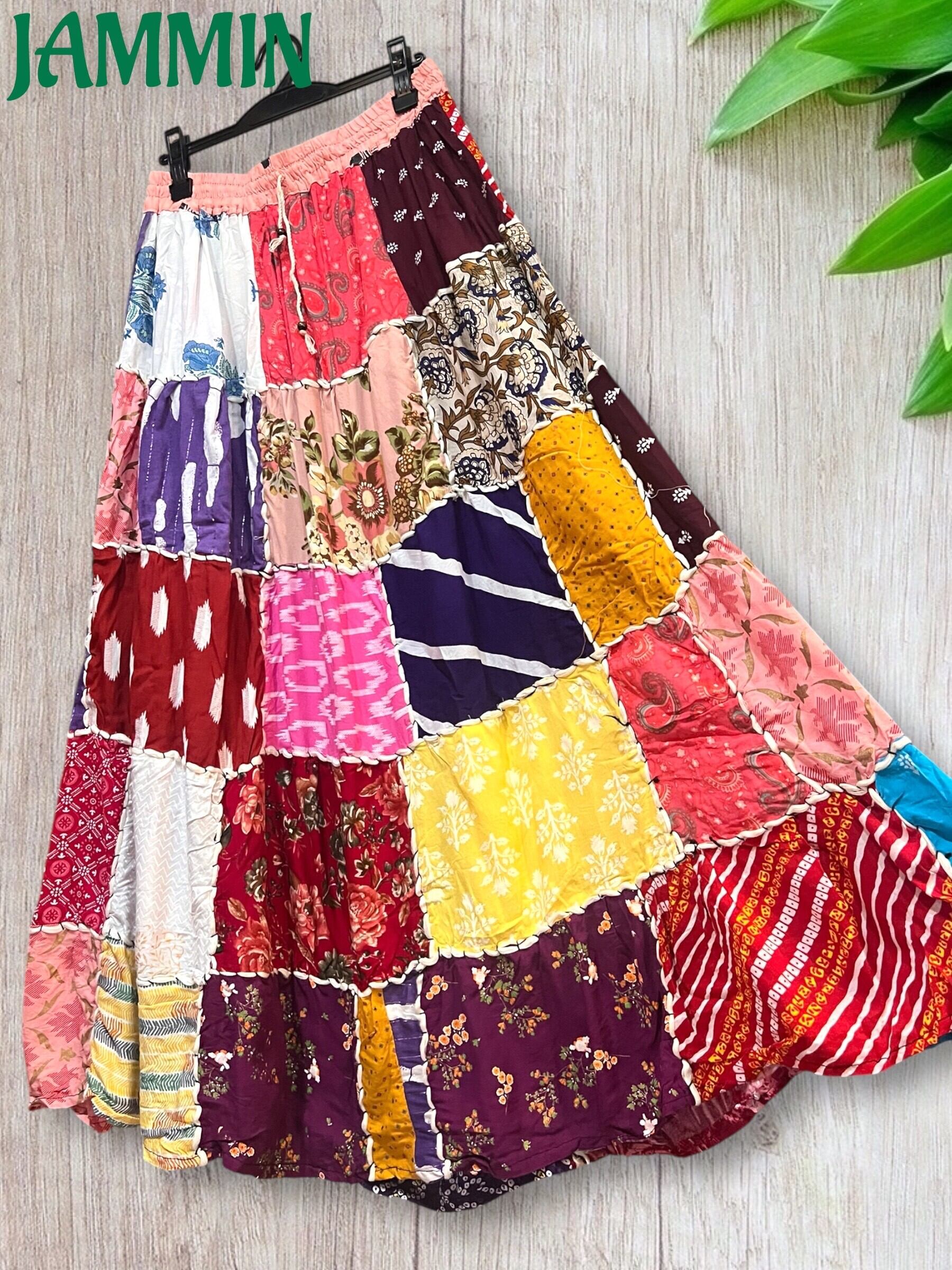 ロングスカート/フレアスカート/アジアンスカート/スカート/マキシ丈スカート/アジアン/エスニック/ヒッピー/サイケ/衣装/ゆったり/柄スカート/リゾート/フリーサイズ/大きいサイズ/パッチワークスカート